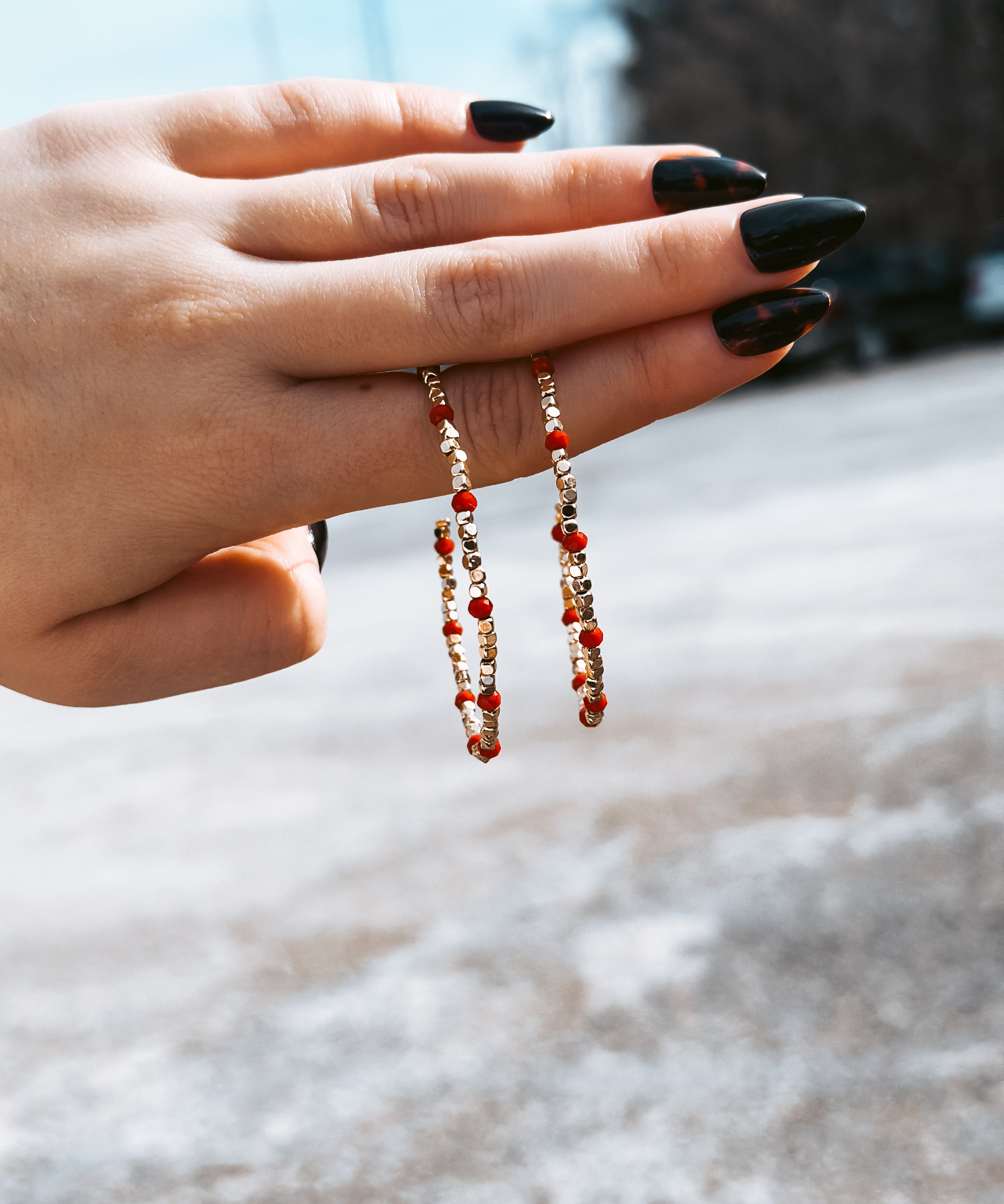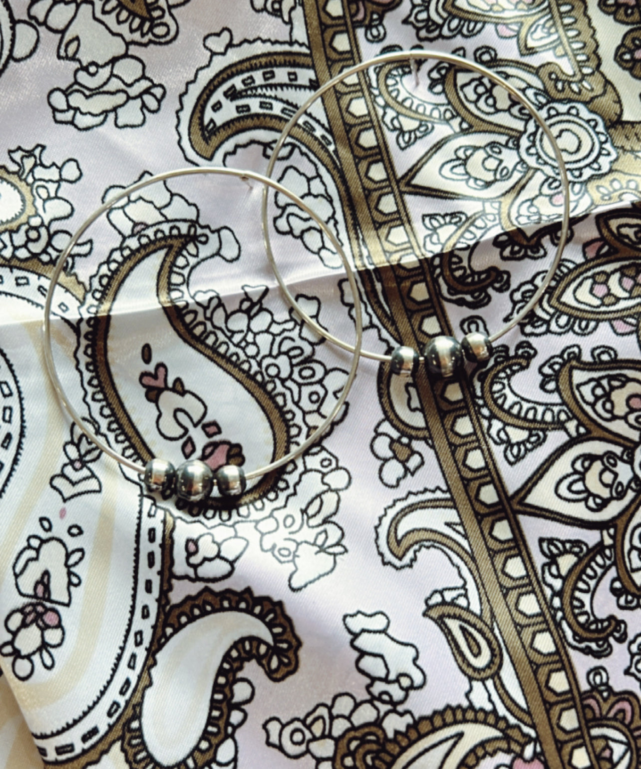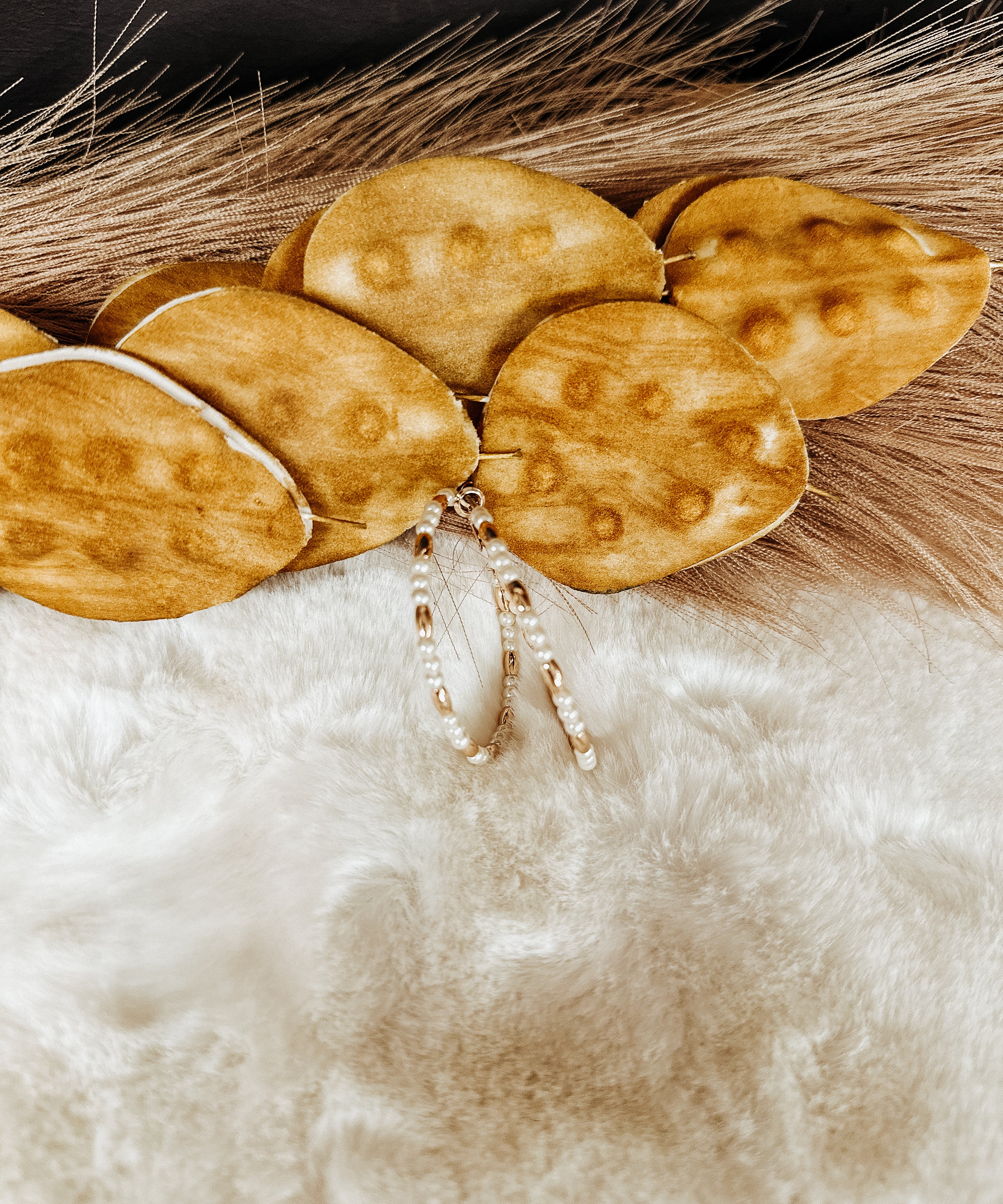 WHITE MINI BEAD HOOP EARRING WITH METAL INSET