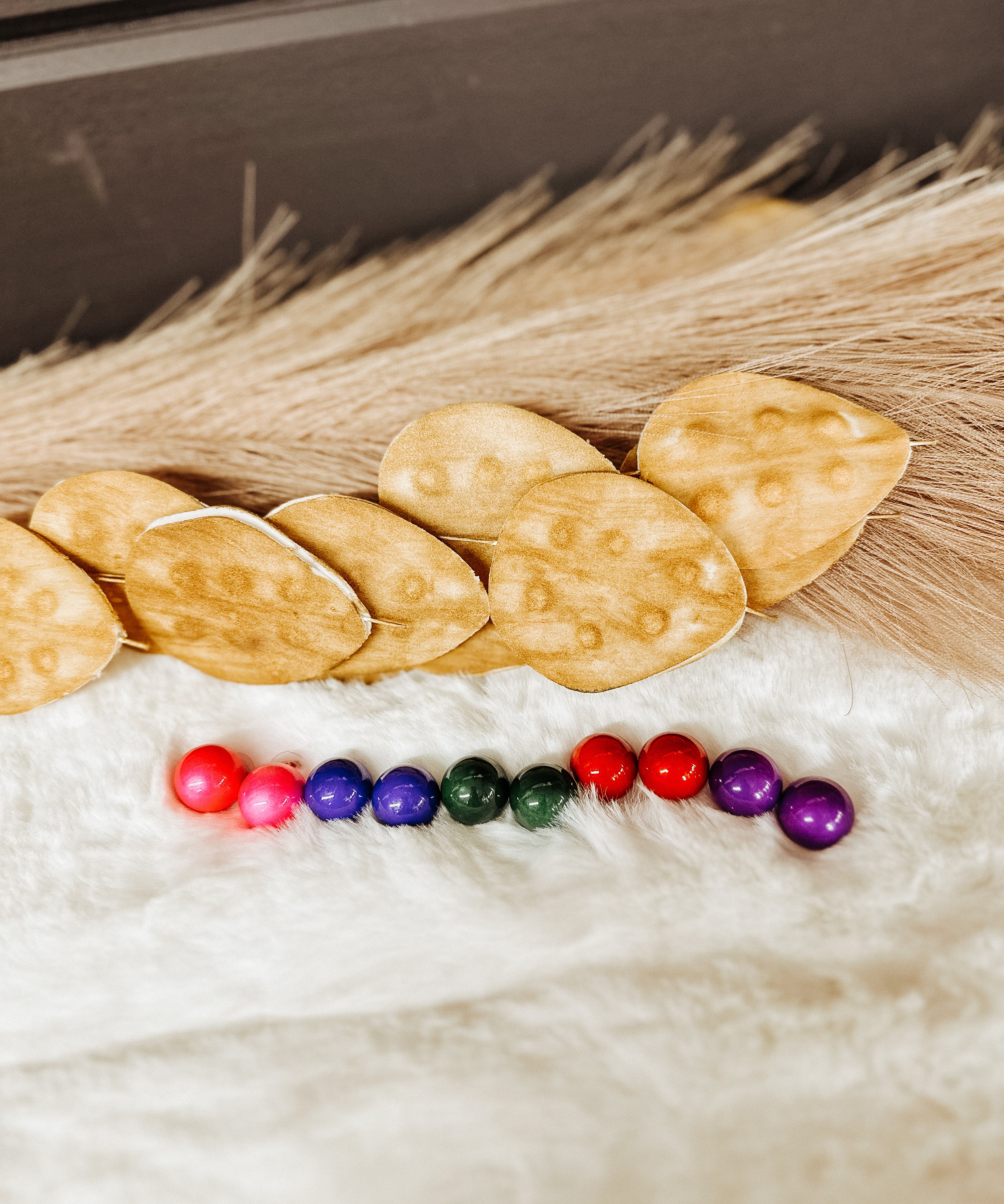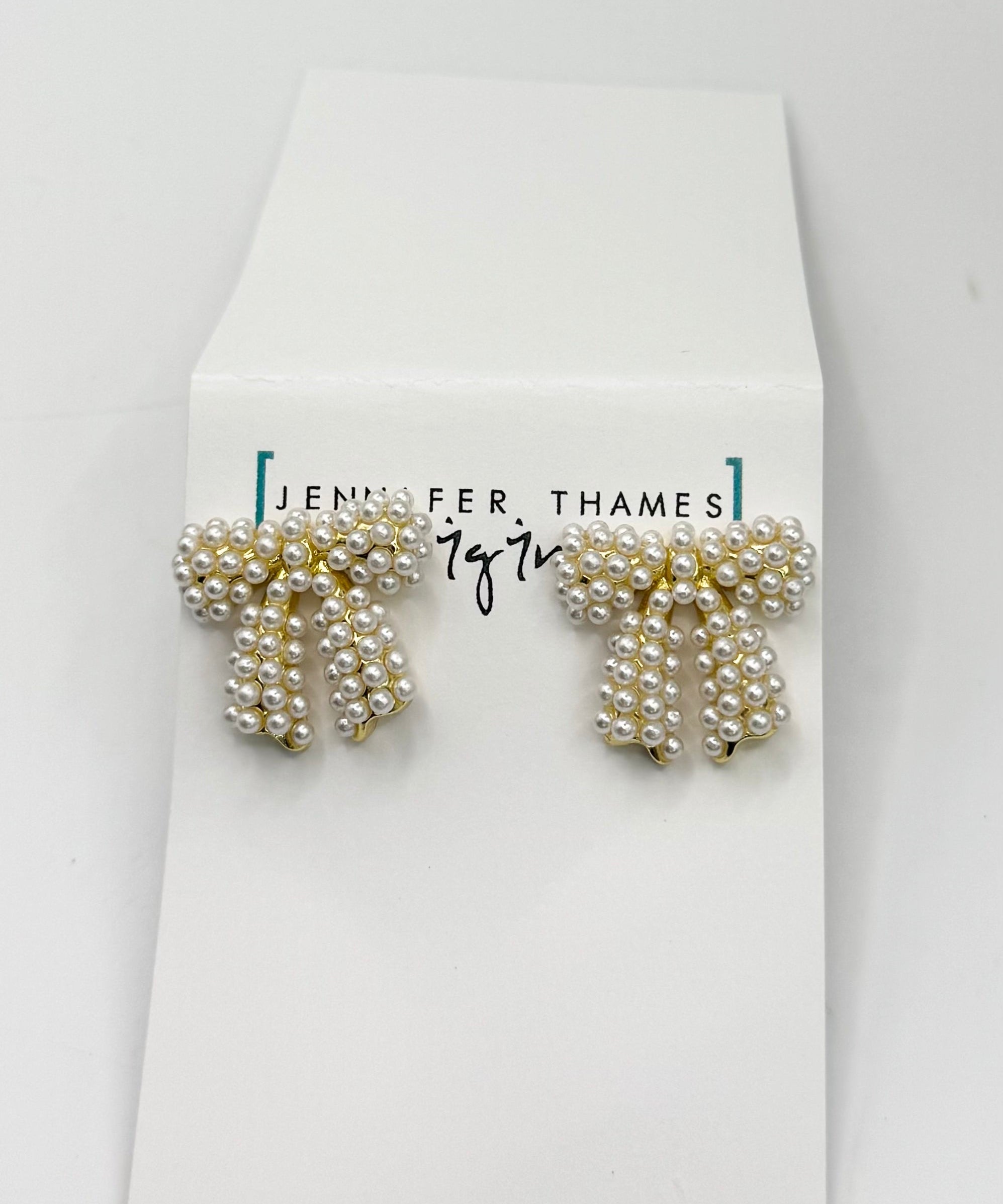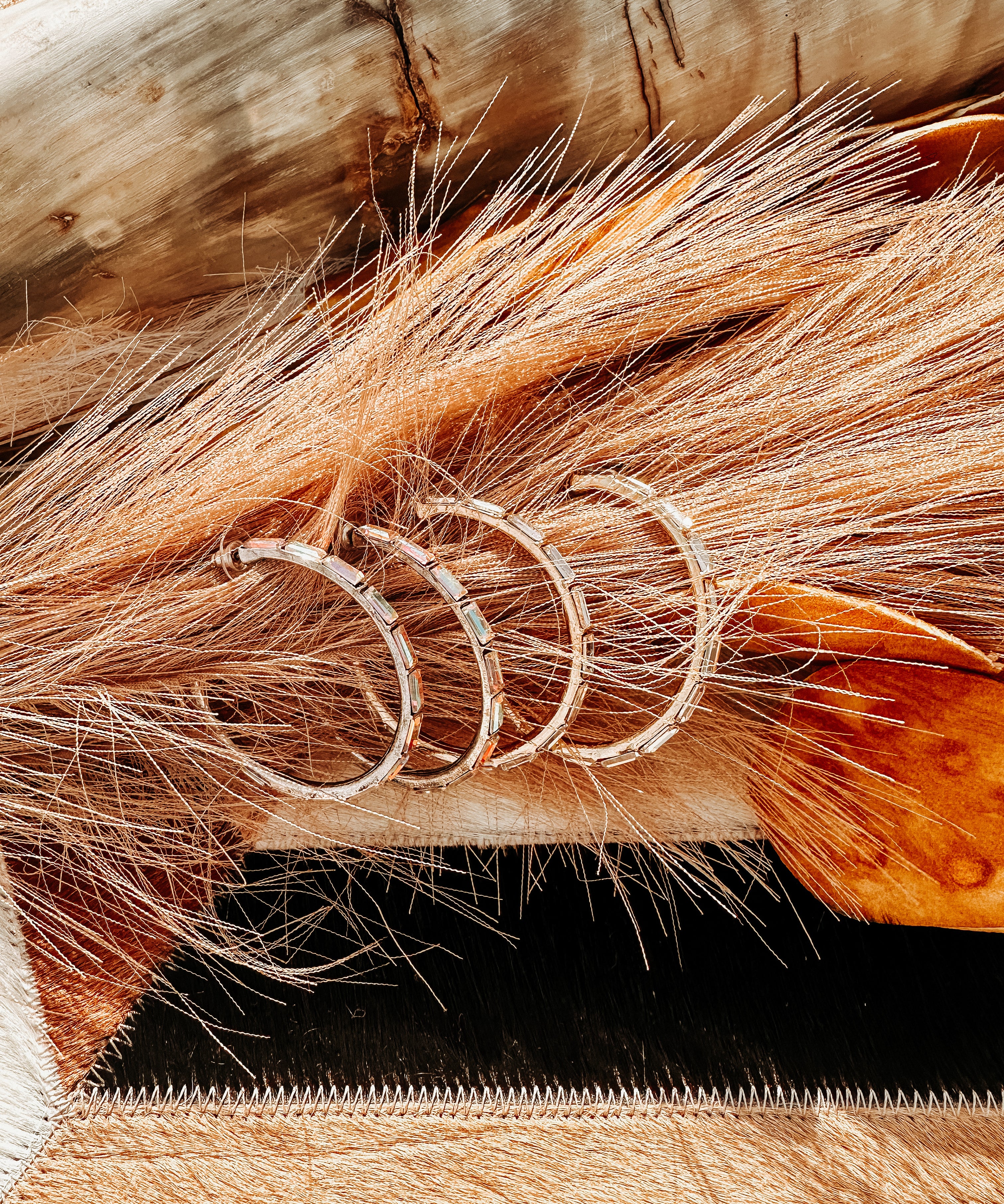 WHITE MINI BEAD HOOP EARRING WITH METAL INSET