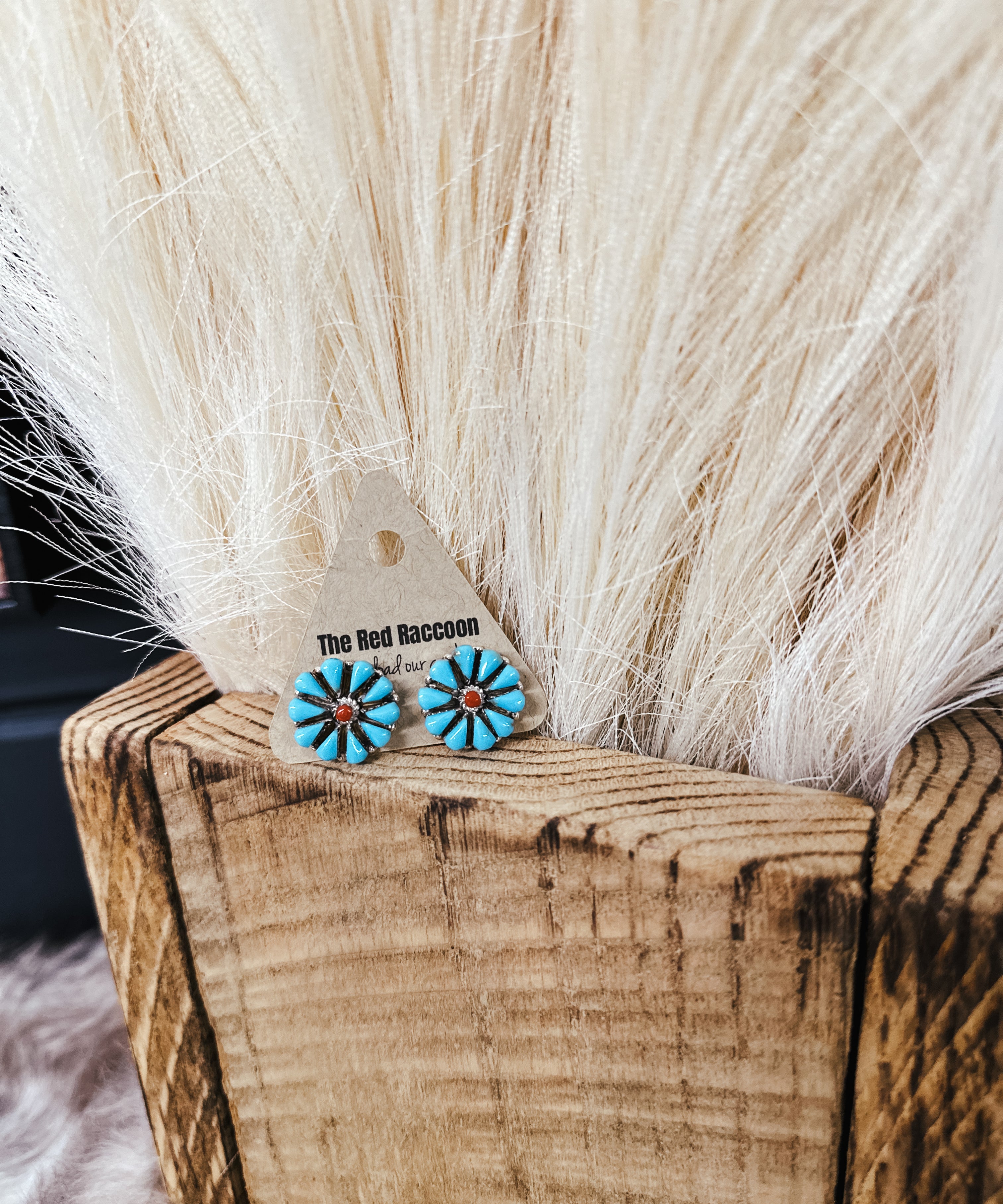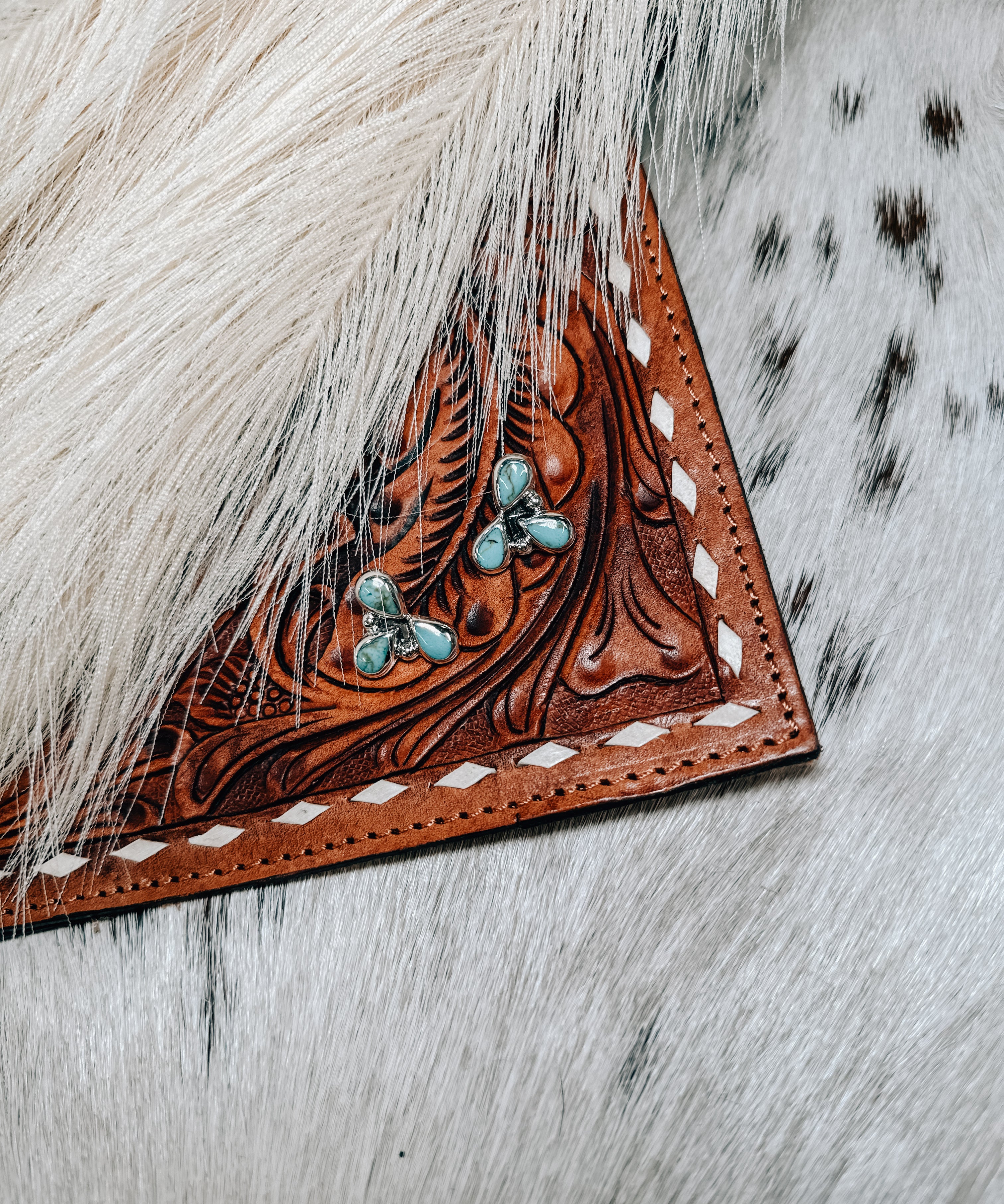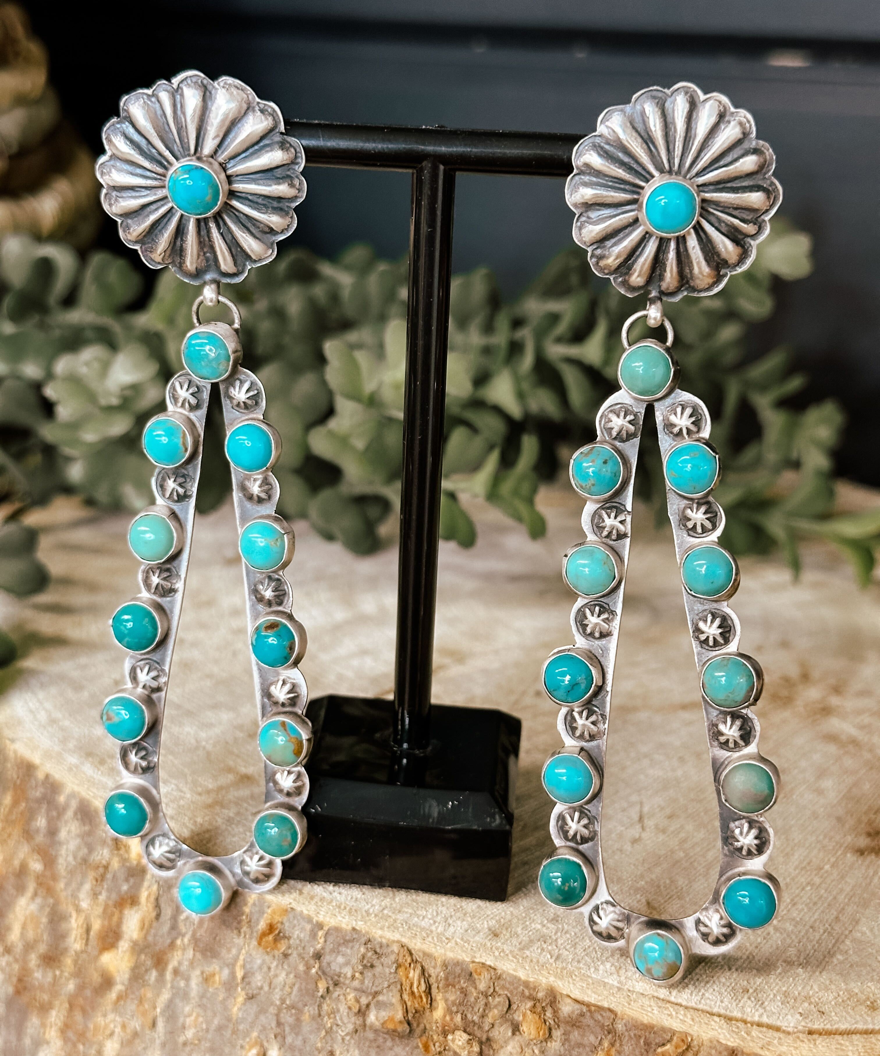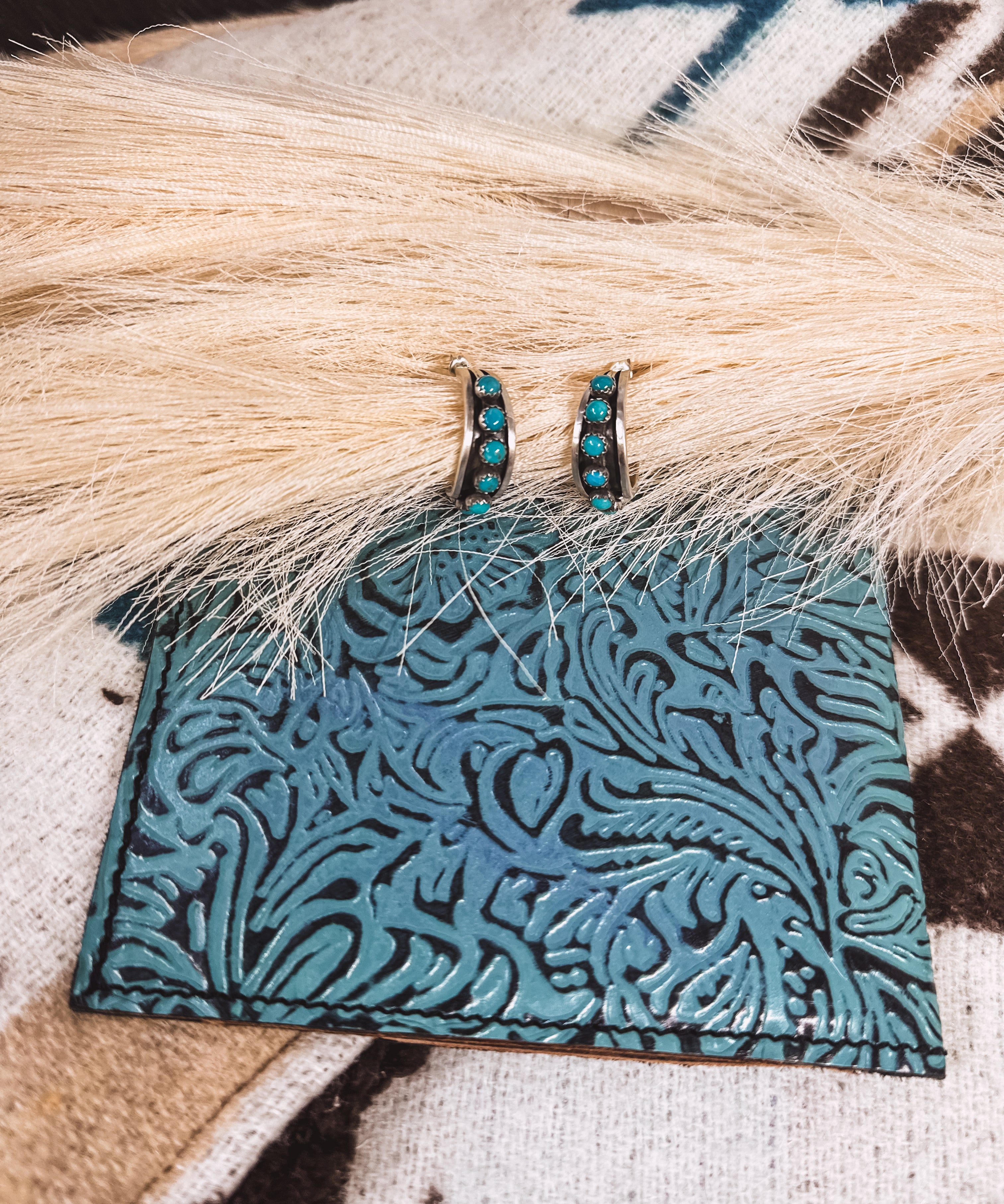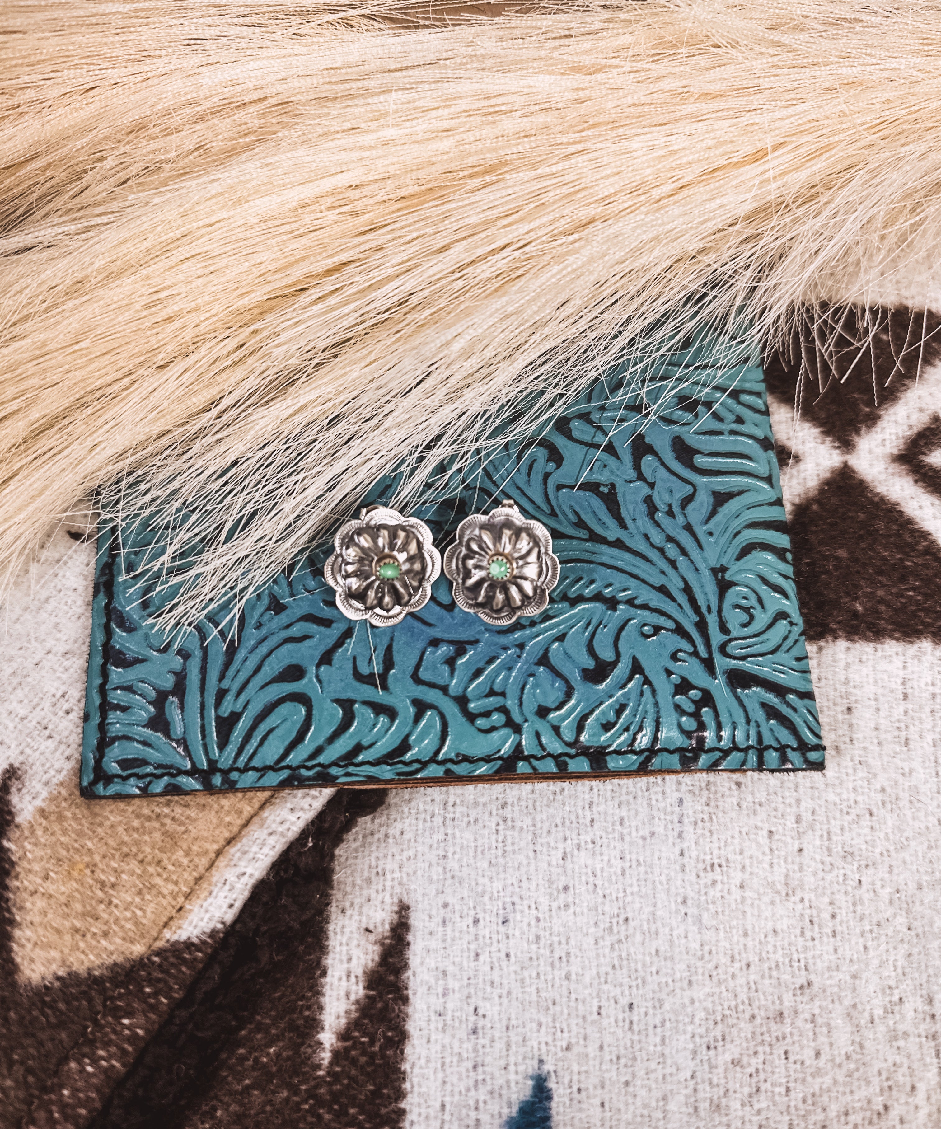Retro Concho Stud + Turq Stone Earring