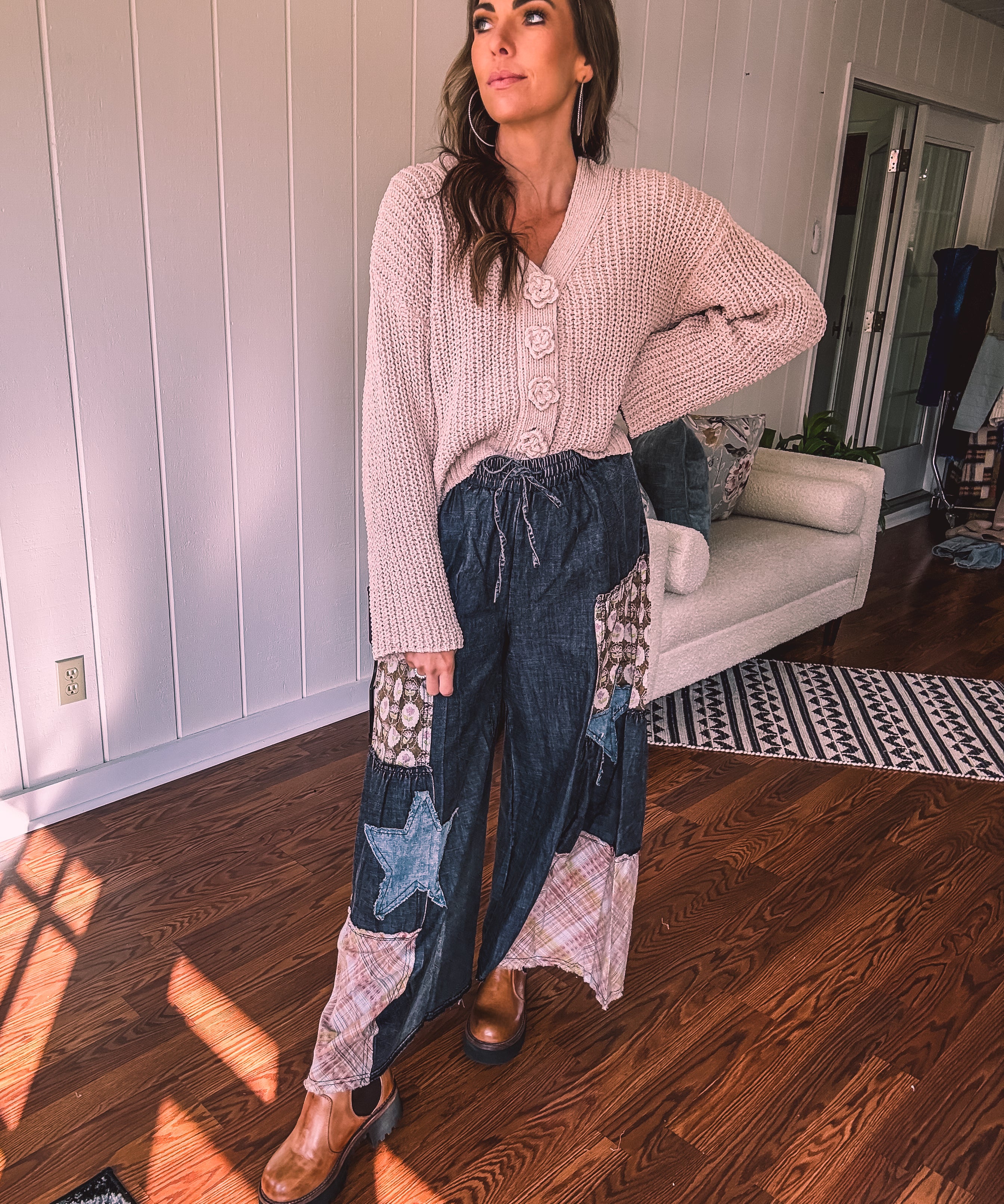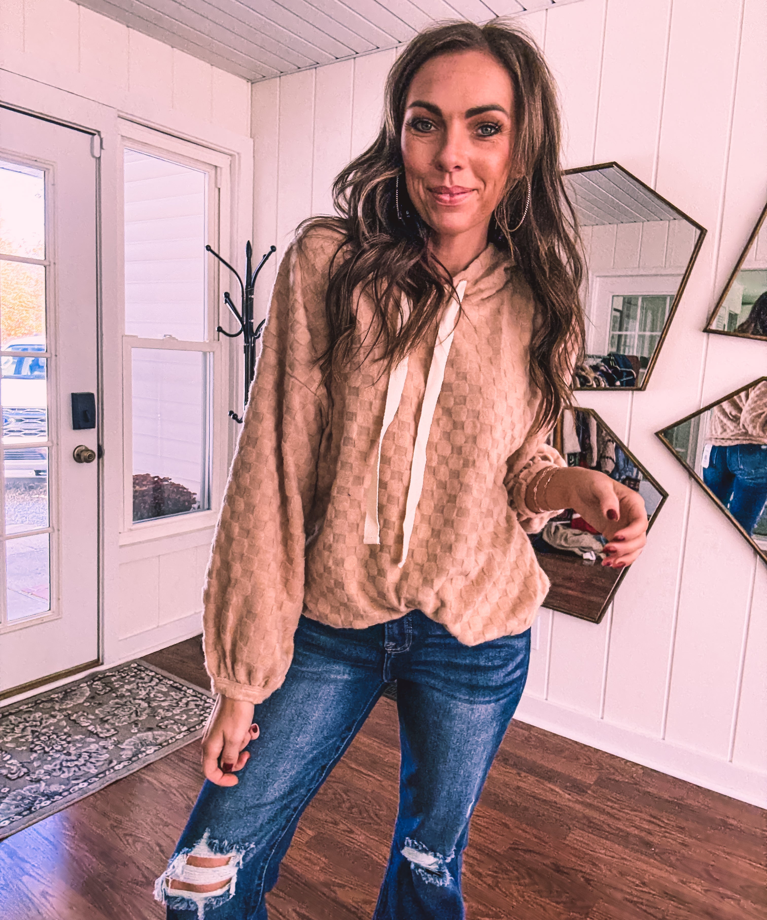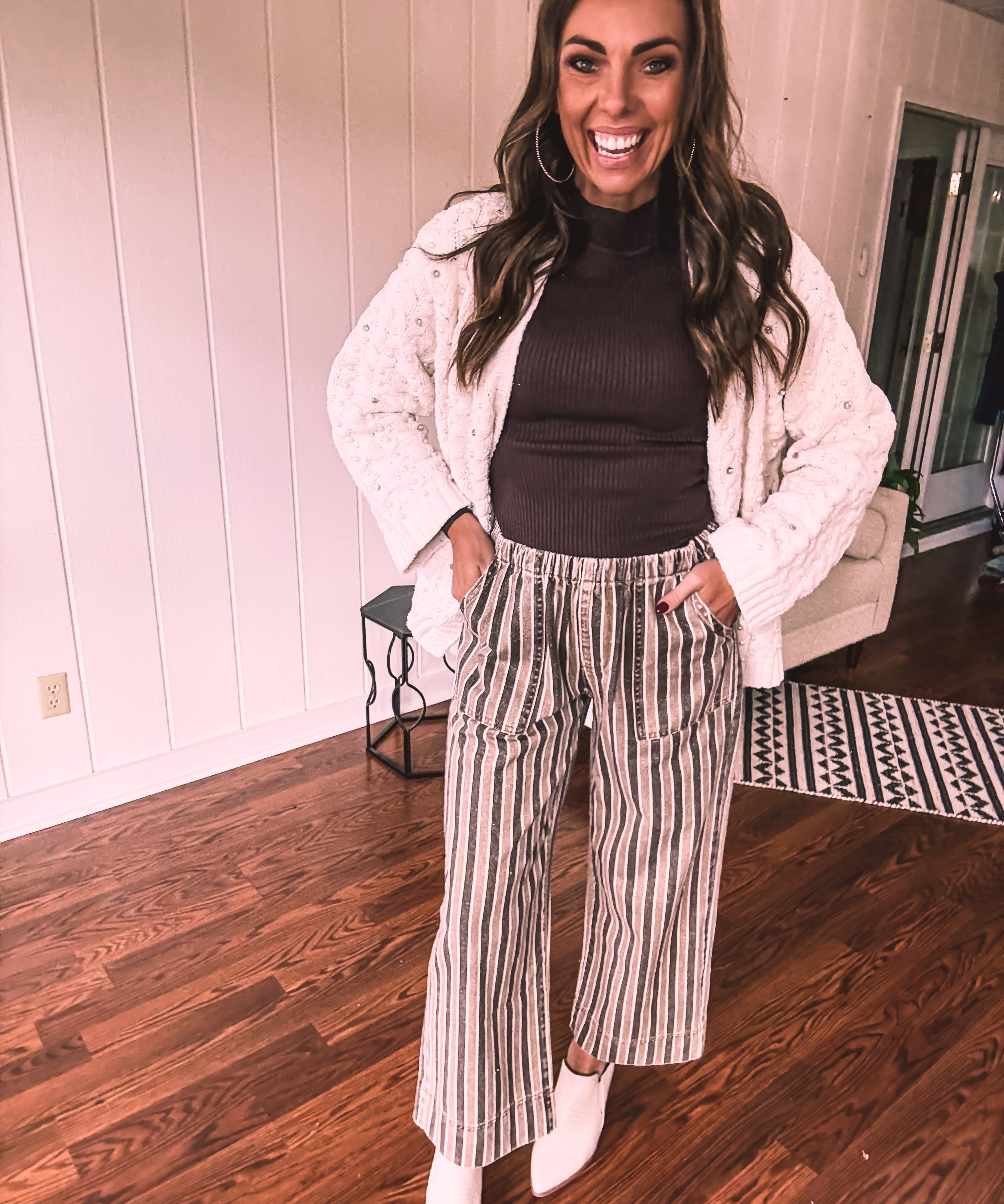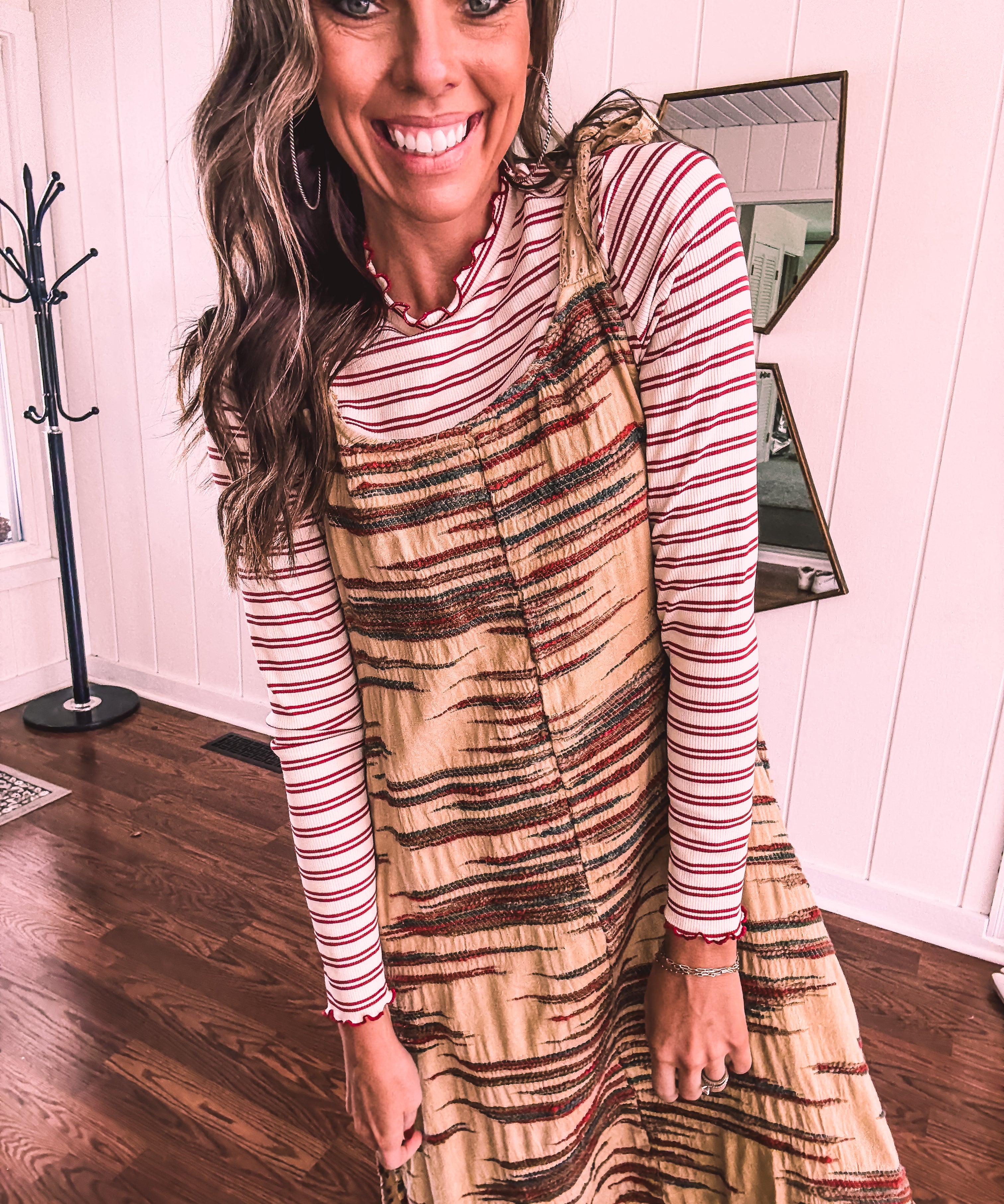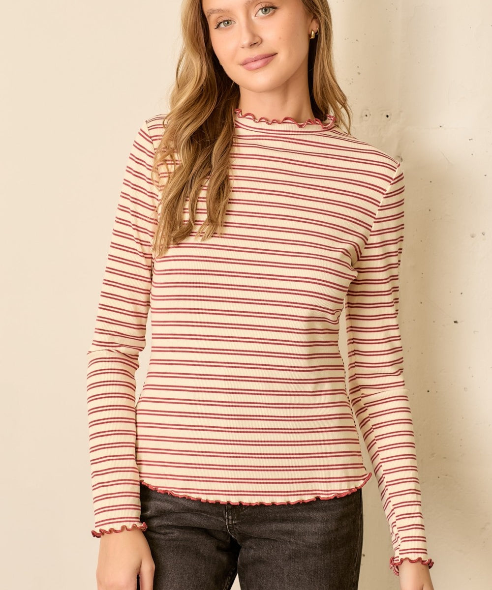 Mini Stripe Flutter Hem Mock Neck Long Sleeve