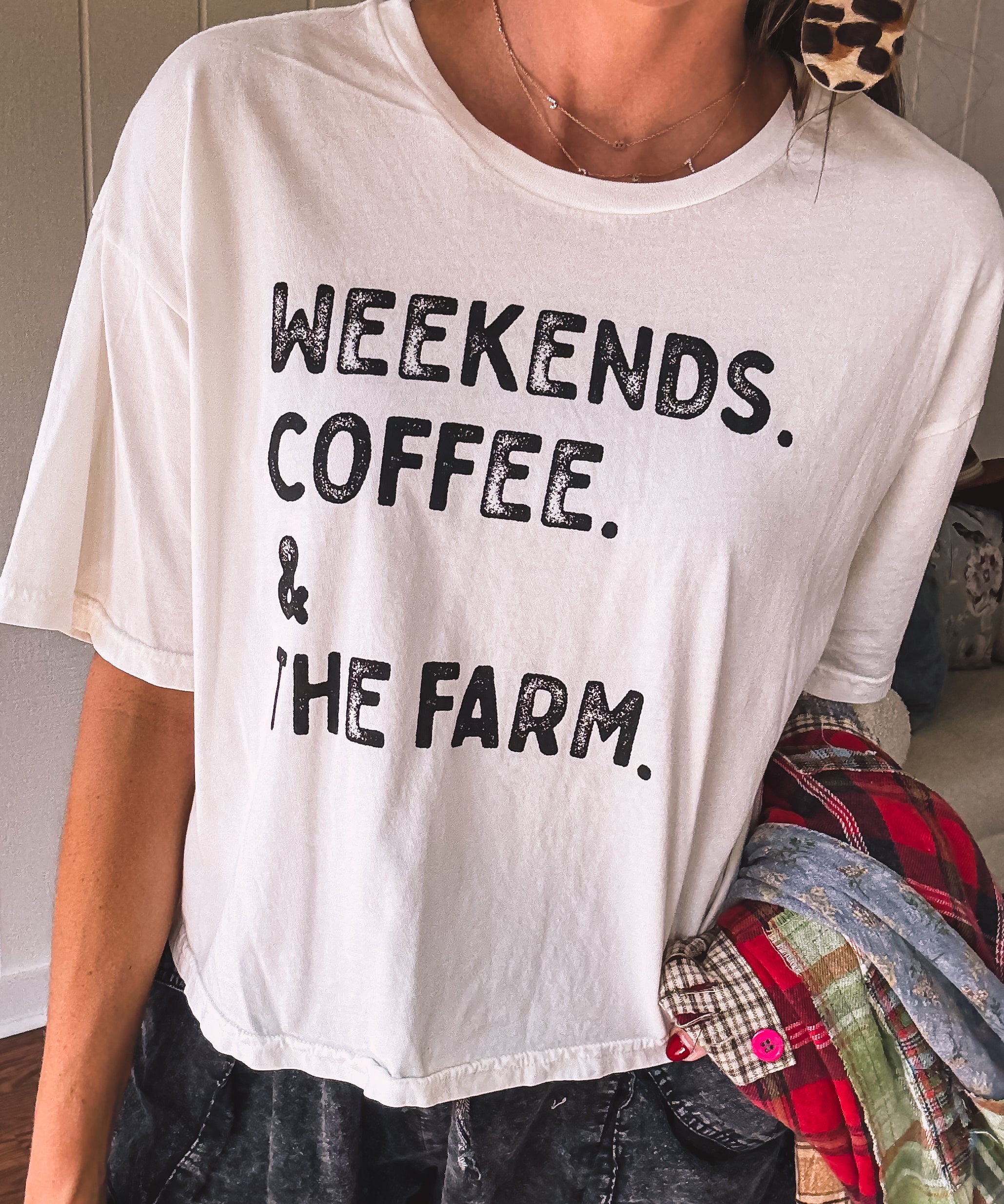Weekends + Coffee + The Farm | Mom Crop Tee