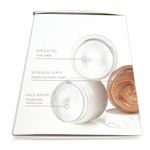 • Begin with our Green Tea Milk Wash, a gentle and pH-balanced cleanser packed with powerful antioxidants like green tea extract and coconut milk.