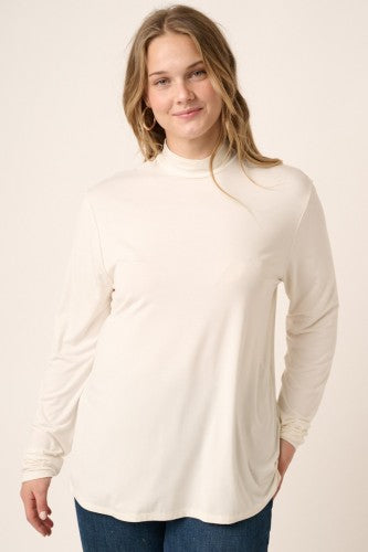 Indulge in the luxurious feel of buttery soft fabric and a comfortable fit. This top is the perfect length to leave untucked for a casual look with a shacket or fall vest, but can also be tucked in with a stylish scarf for a unique and sleek appearance! Trust us, this top is a must-have for all your layering needs - you'll want one in every color!