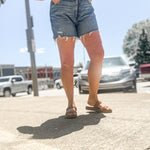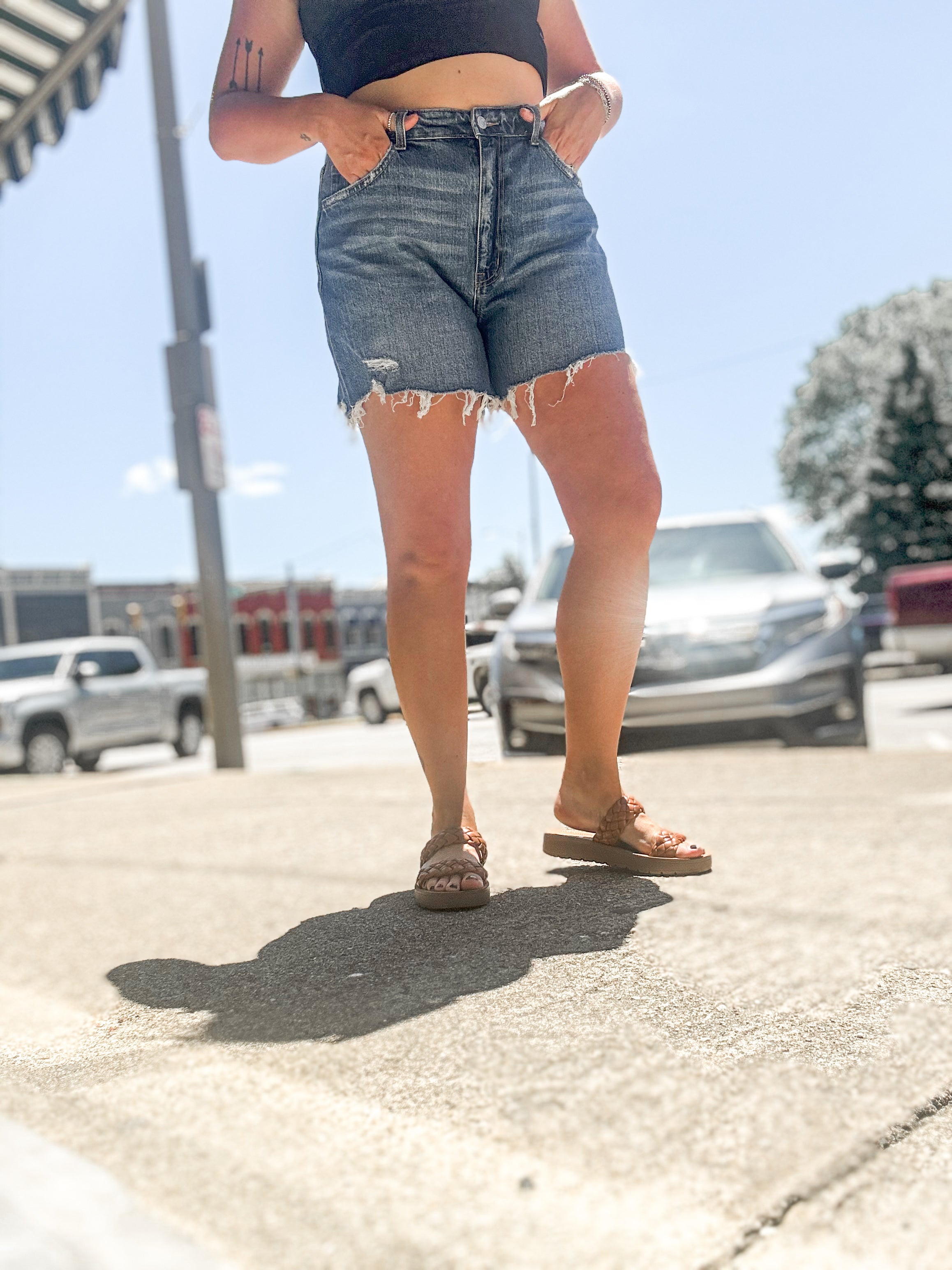 These Vervet High Rise Distressed Hem Shorts are generously cut with no stretch which means they are designed for comfort and style! These are giving a true denim "Levi's" vibe with the color and wash they offer. Long enough to be mom-approved, but edgy enough to show your unique style!