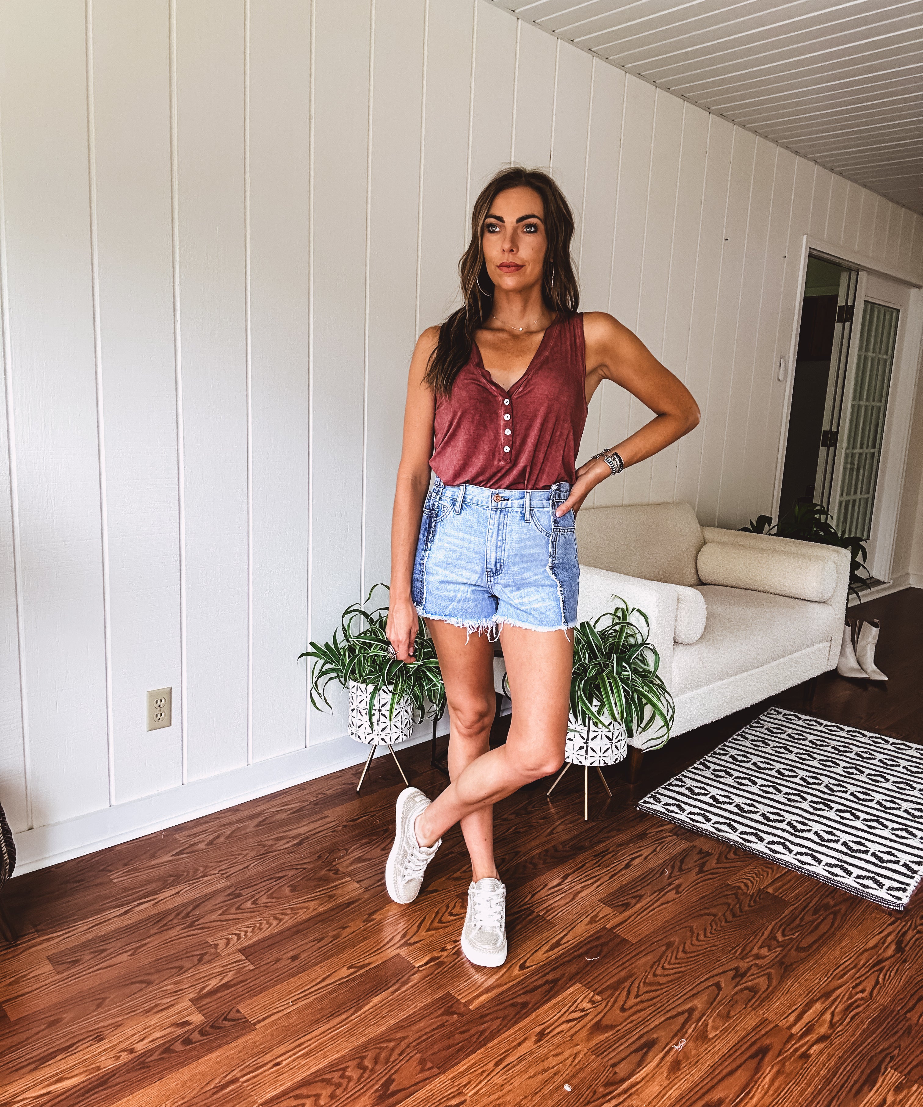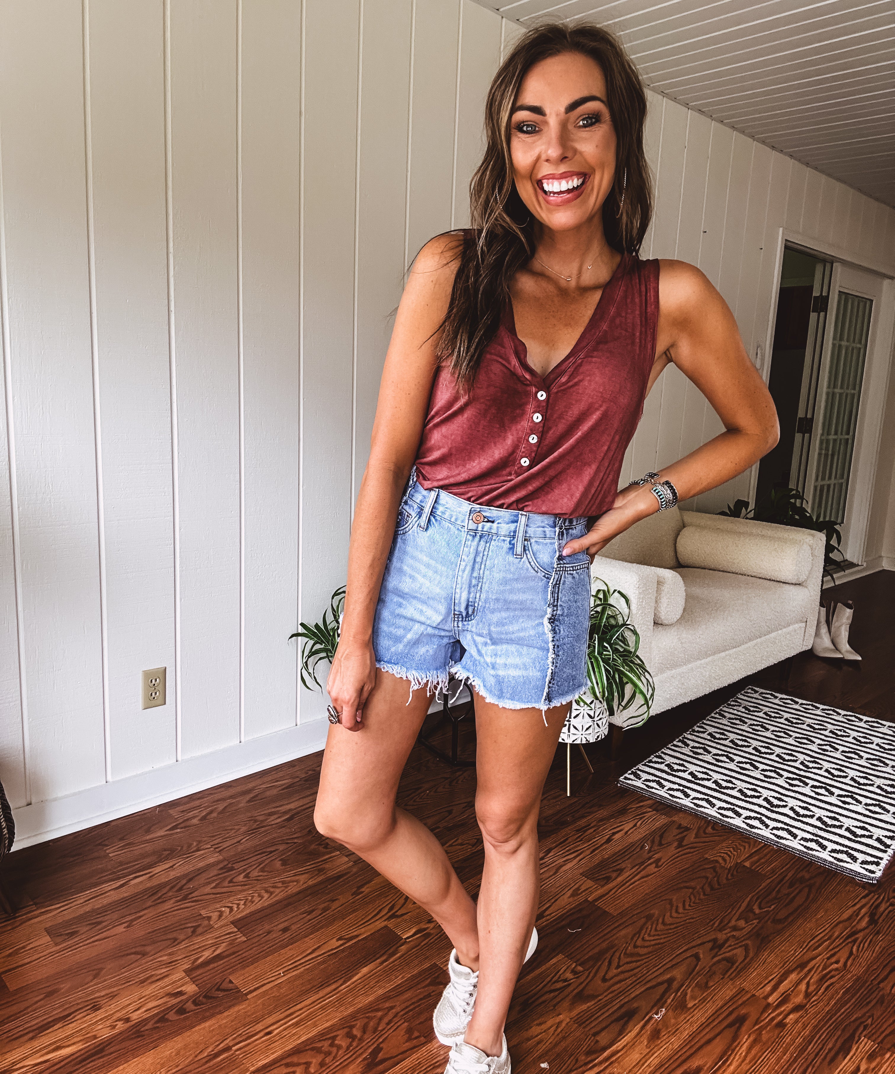 High Rise Distressed Hem Shorts