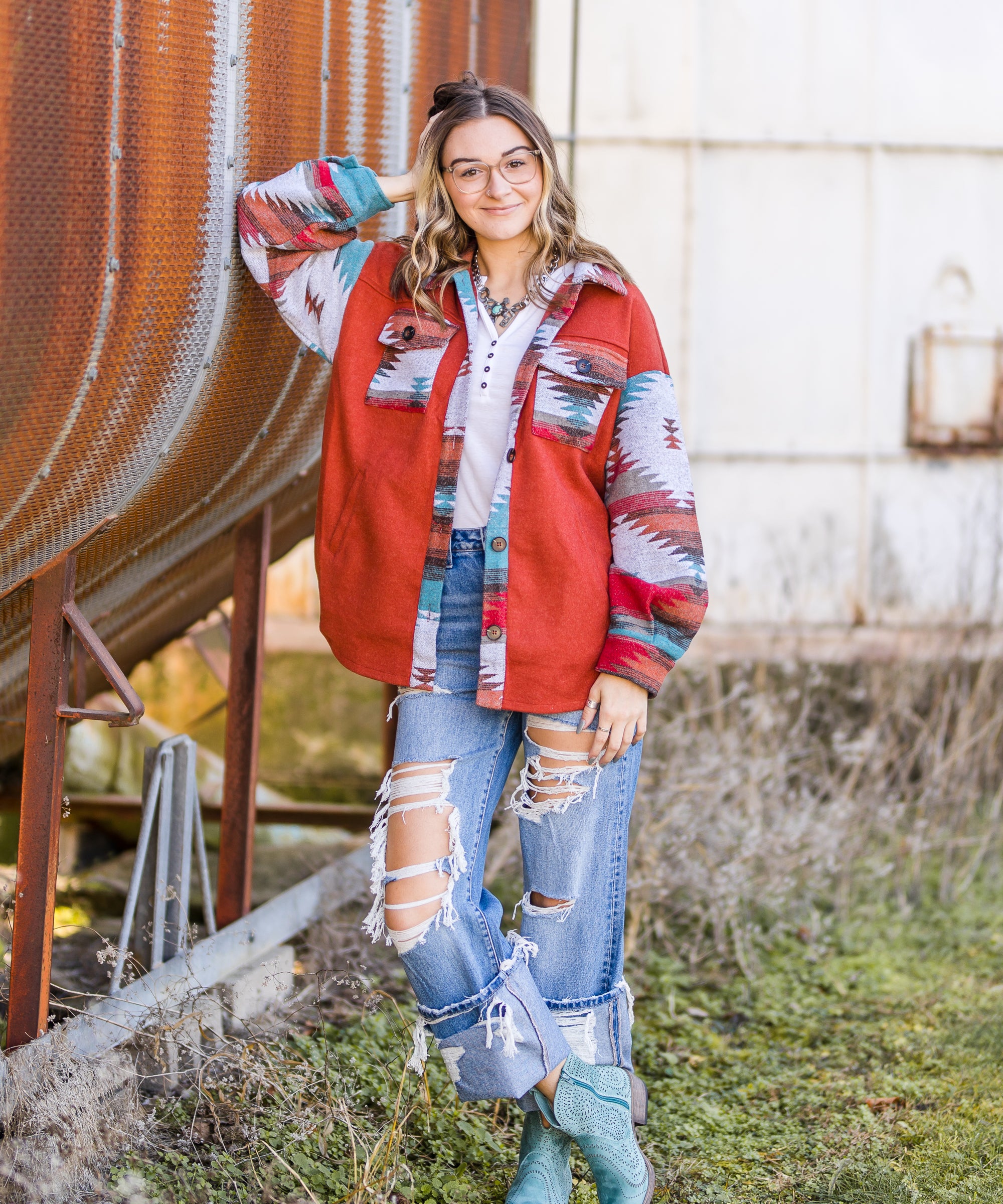 Stretch Boyfriend Colorblock with Rolled Cuff
