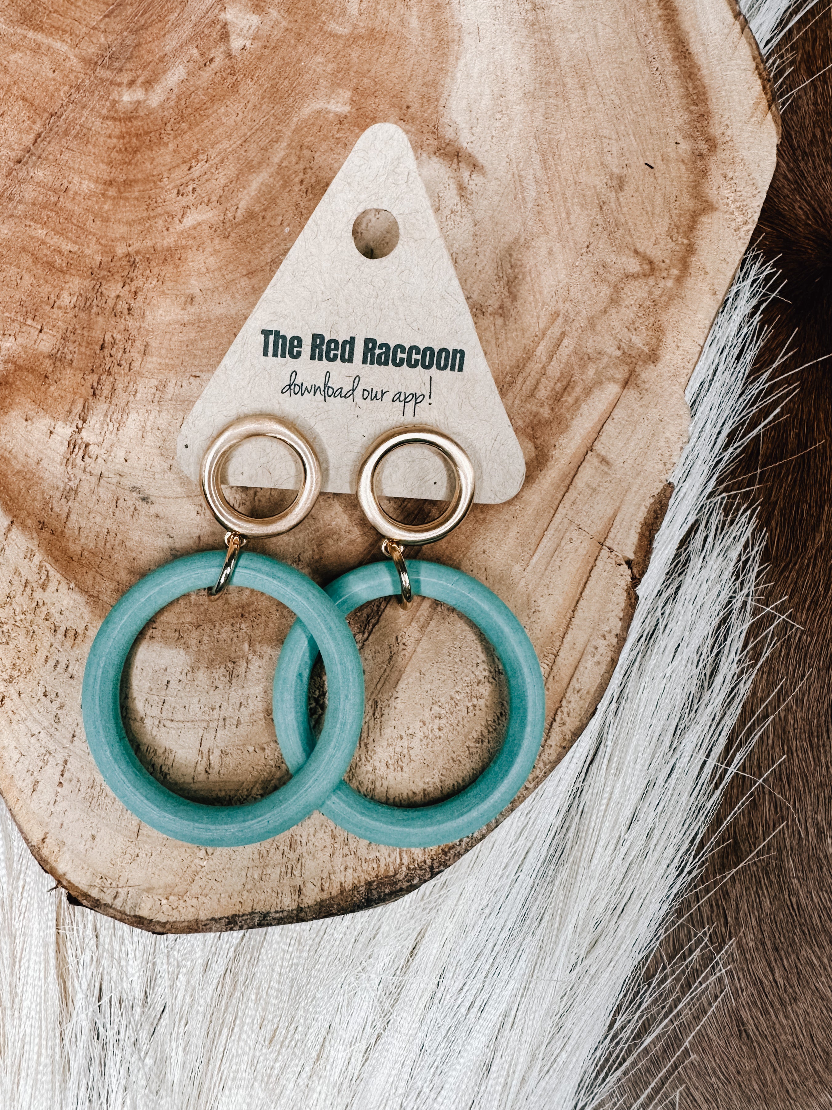 Add a splash of charm and whimsy to your look with these Gold + Mint Wood Open Circle Earrings. Crafted from lightweight wood, they feature a bold, teal open circle that dances with every move, hanging from a smaller muted gold circle for a touch of shine. The post back design makes them easy to wear all day, whether you're headed to brunch or a night out. Perfect for those who love playful accessories that stand out without weighing you down, these earrings bring fresh color and fun to any outfit.