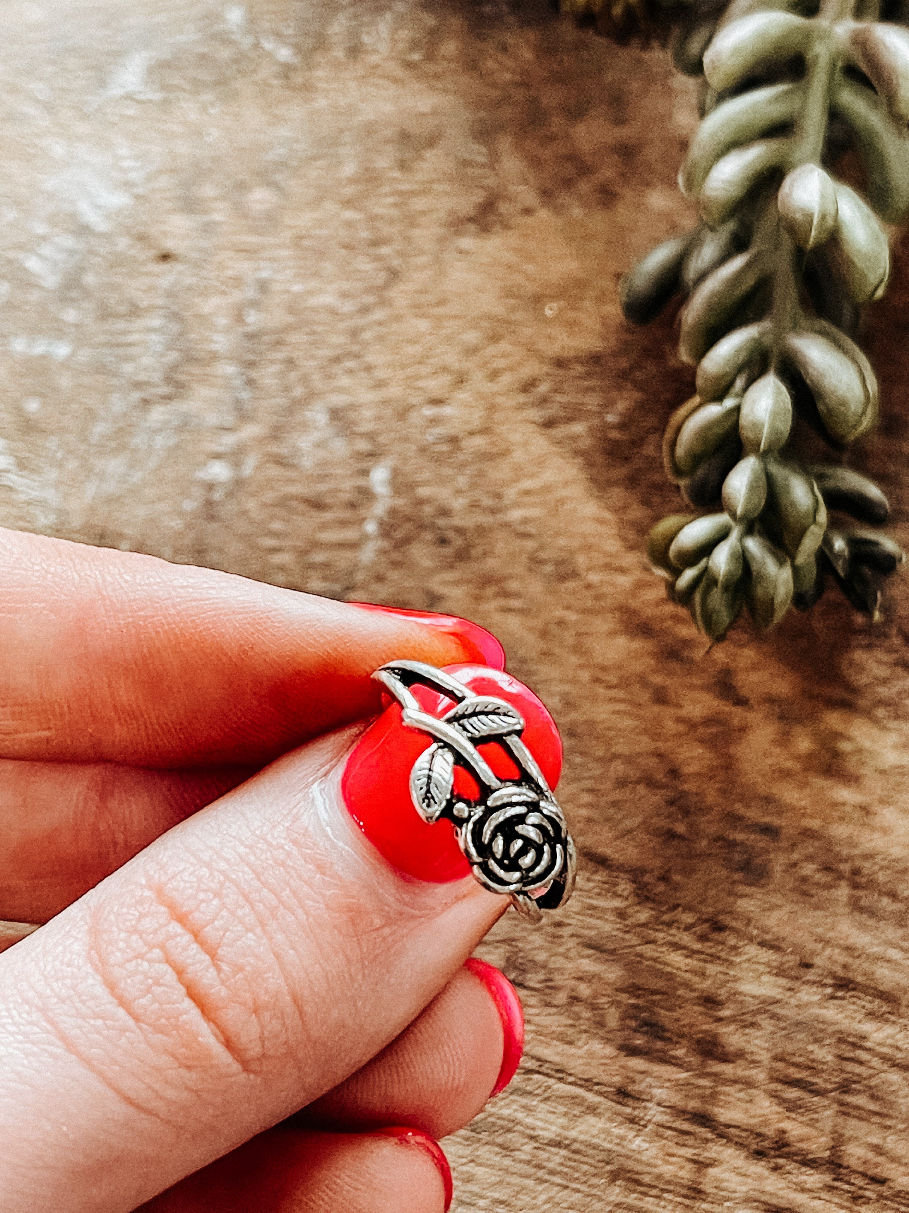 Add a hint of charm and whimsy to your style with this dainty Rose Ring. Crafted in faux silver, its delicate rose design captures the essence of romance and elegance, making it a perfect choice for those who adore subtle silver flair. Whether worn alone or stacked with your favorite rings, this playful piece adds a gentle bloom of beauty to any outfit. Ideal for gifting or keeping, it’s a sweet reminder to embrace the little moments of love and joy every day.