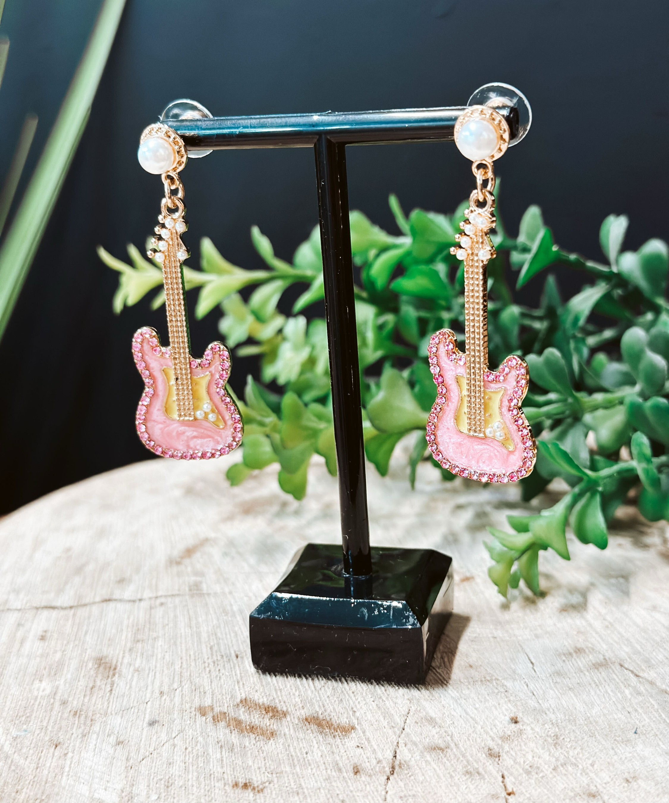 Pink Guitars Post Earring