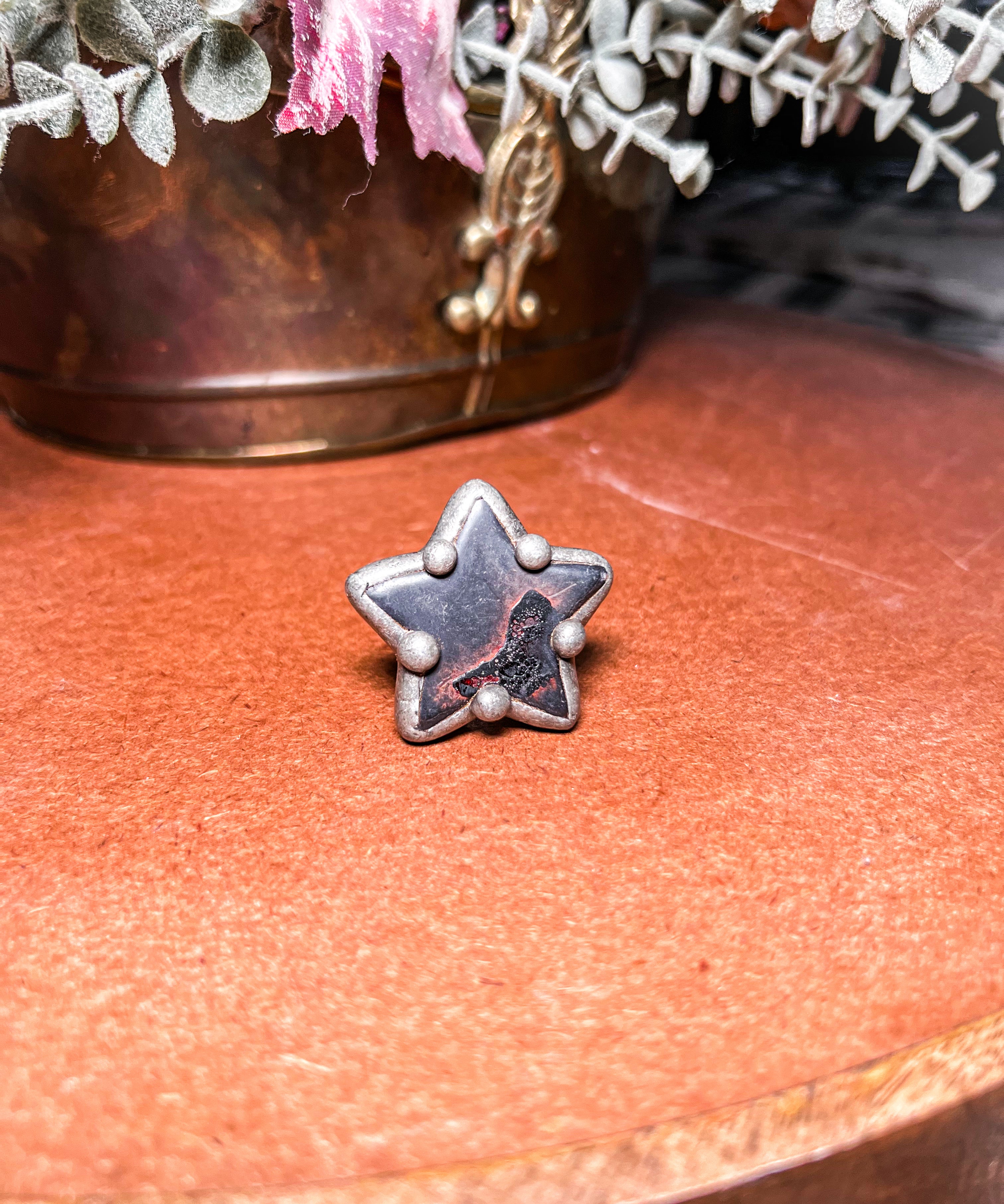 Black Soldered Star Adjustable Ring