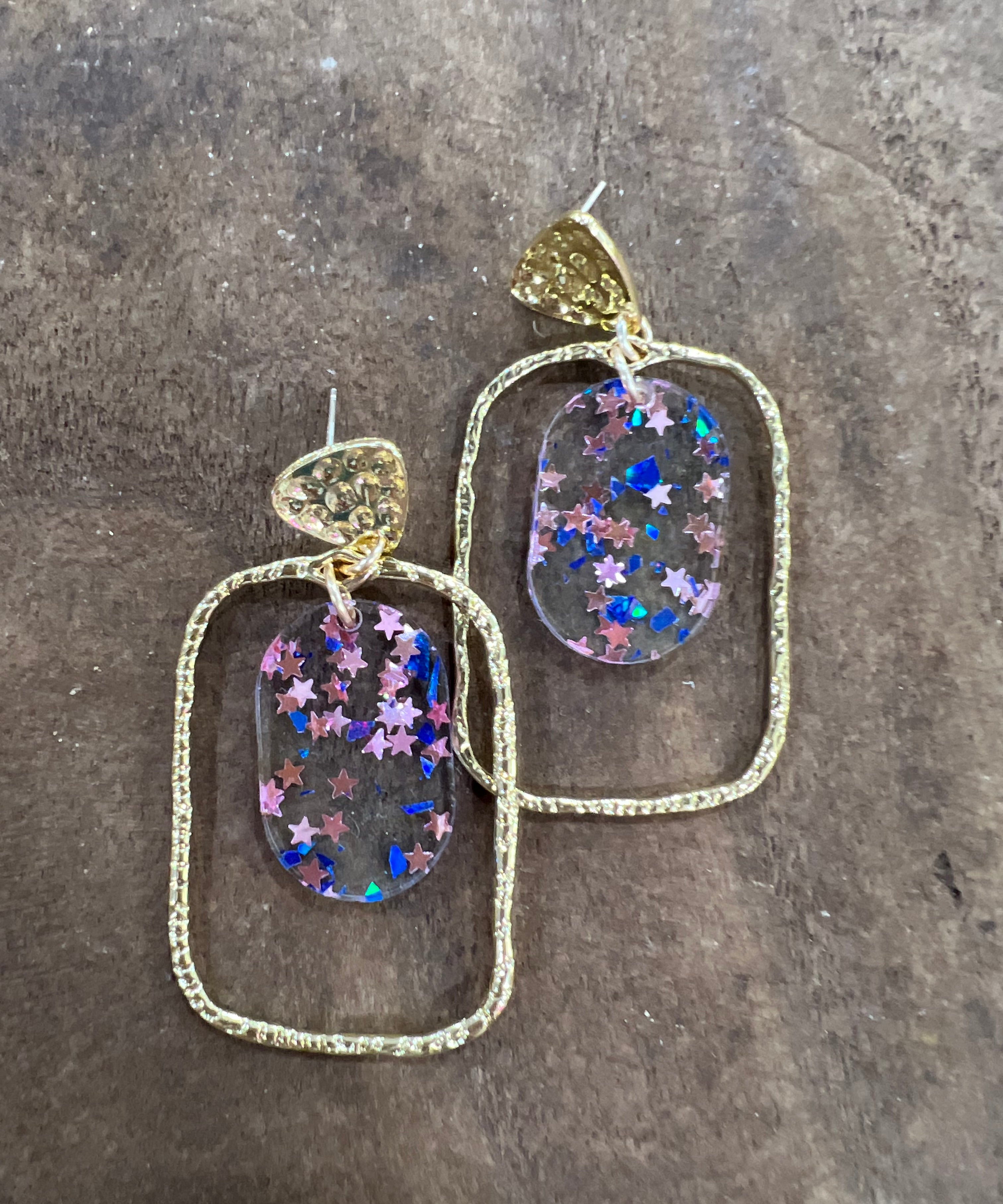 Pink + Blue Confetti Oval Hoops
