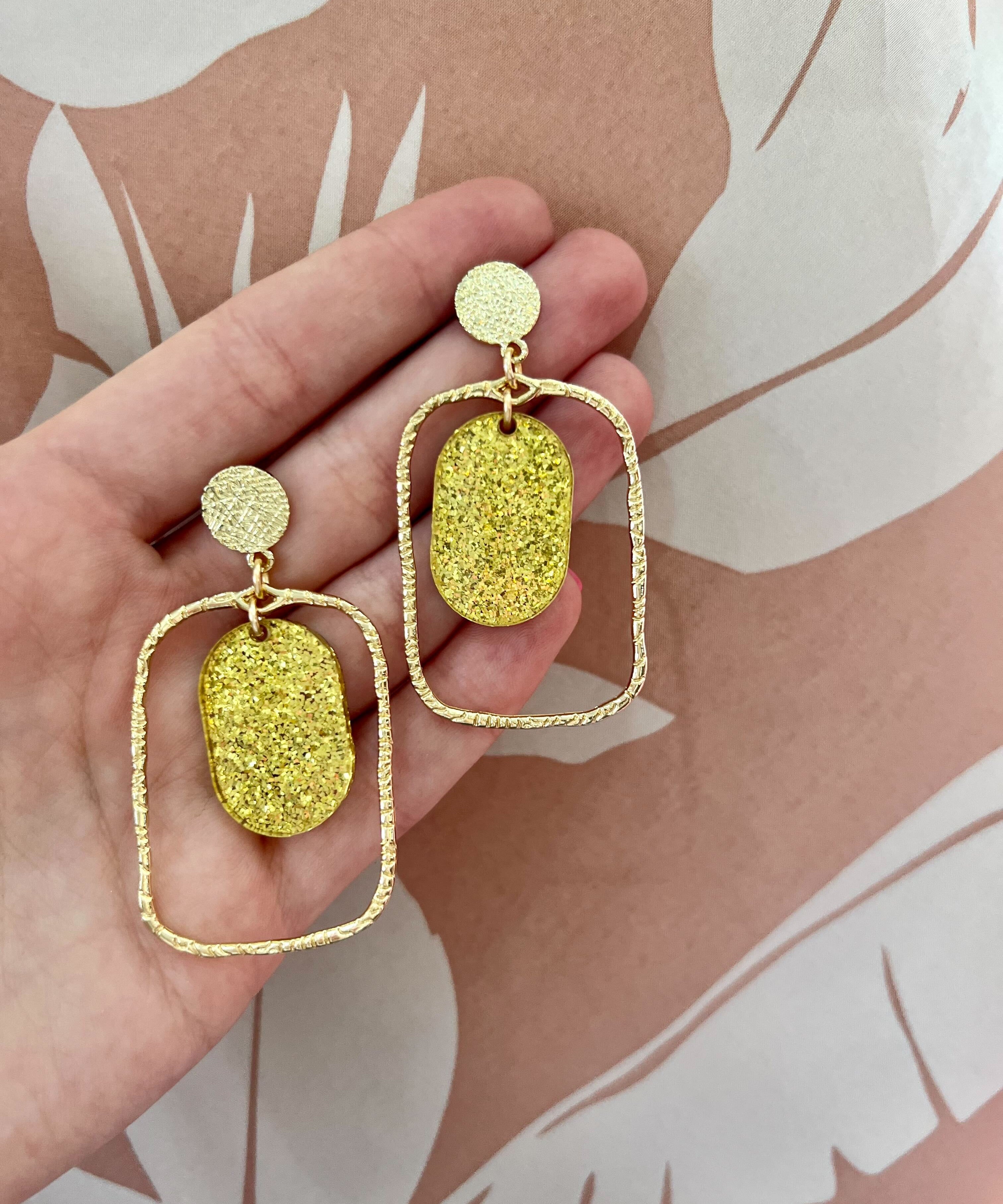 Sequin Gold Glitter Oval Hoops