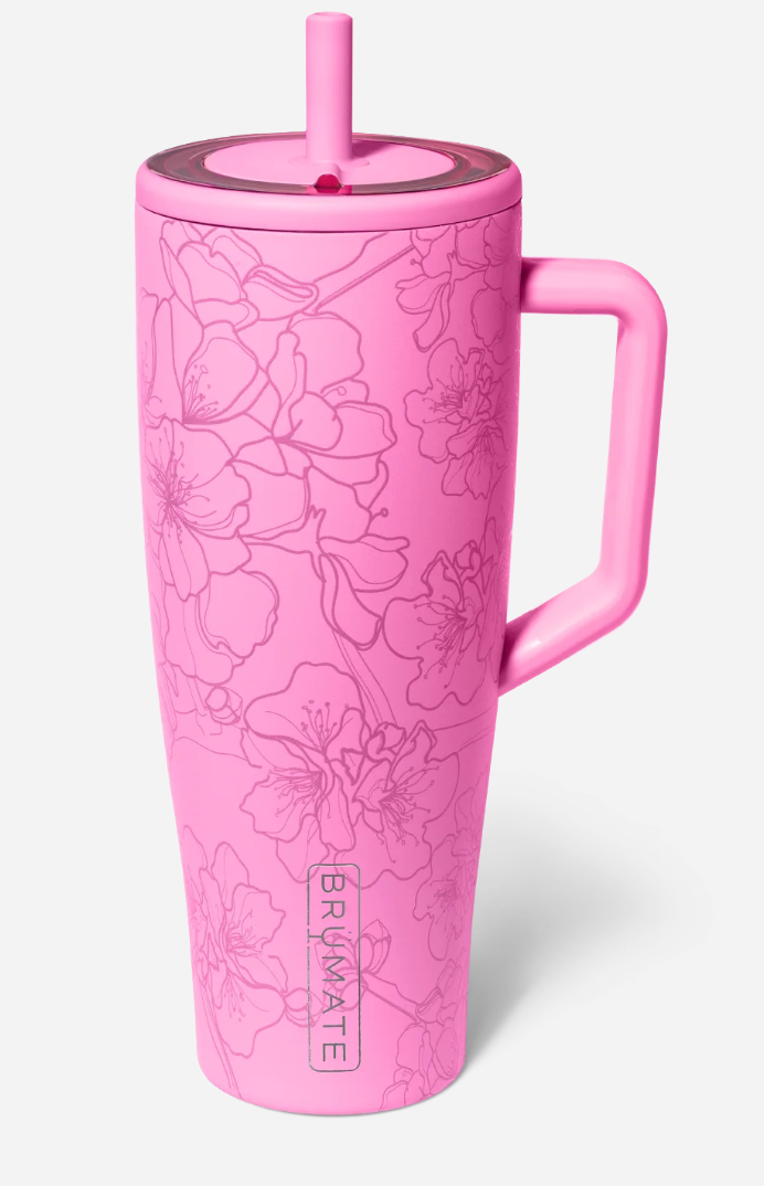 The Brumate Era 40oz tumbler comes with a completely leakproof lid and a ColdKey™ metal straw that helps cut down on plastic waste. Thanks to BevGuard™ technology, your ice stays frozen for over 24 hours. Designed to fit perfectly in your cup holder, it keeps your 40oz drink spill-free and ready for any adventure. Sip your favorite cold or fizzy drinks with style and confidence! Choose from fun colors like Onyx Leopard, Dark Aura, Lilac Dust, Mocha, Rose Taupe, Sage, Mist, Prickly Pear, Dune, Guava, Cherry Blossom, and Citrus Daisy.