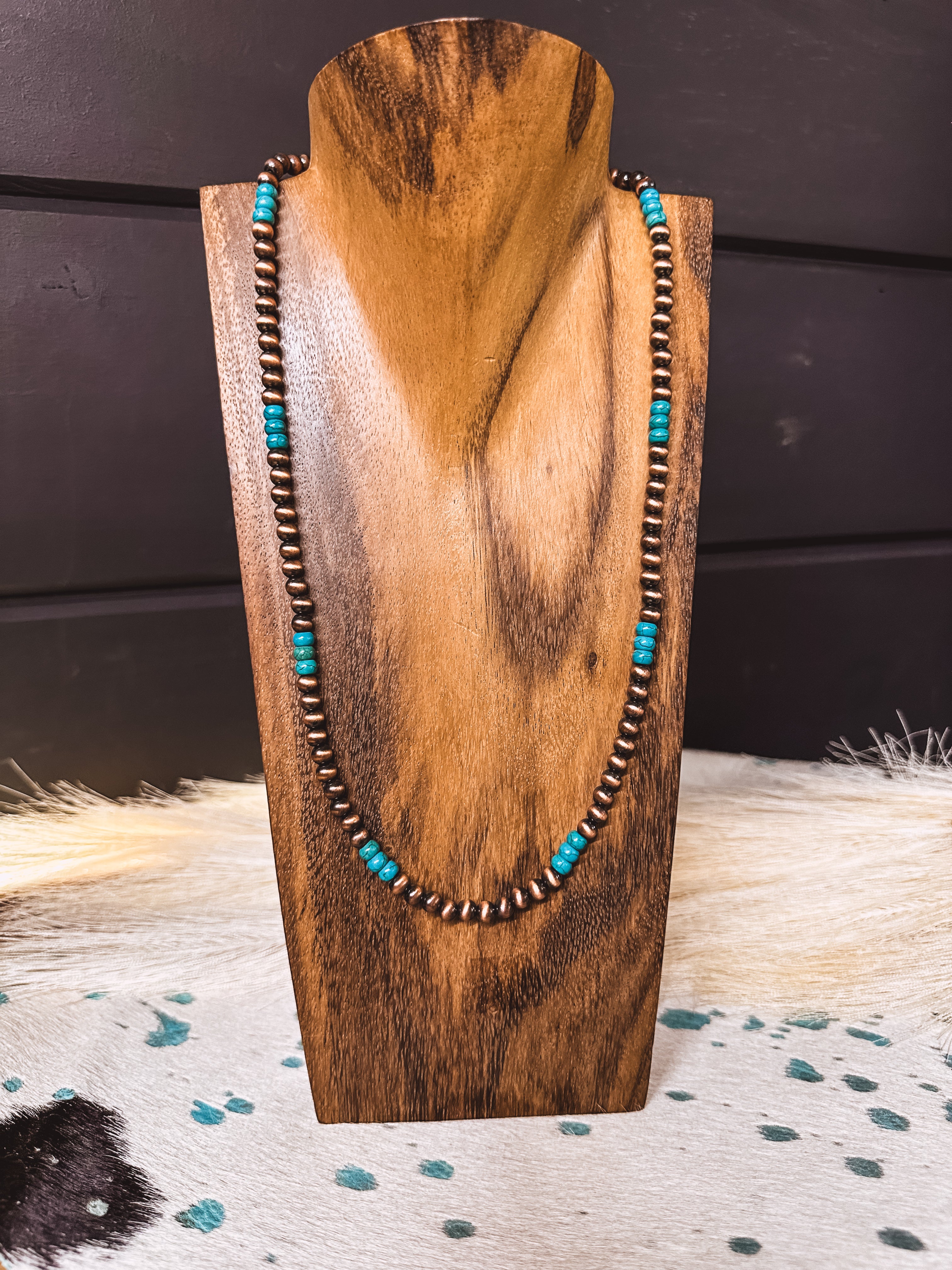 5MM Bronze & Teal 22" Faux Sterling Silver Necklace