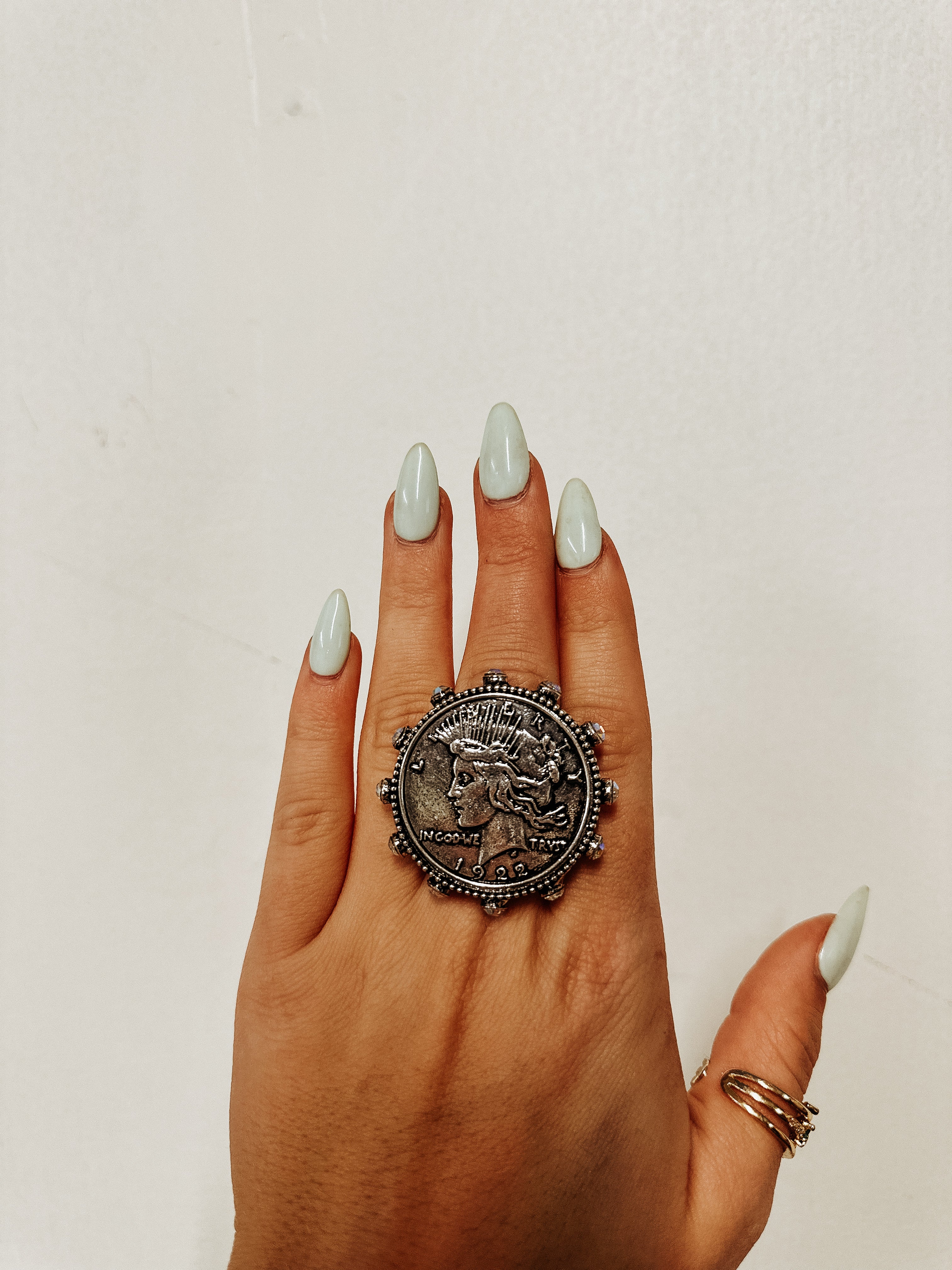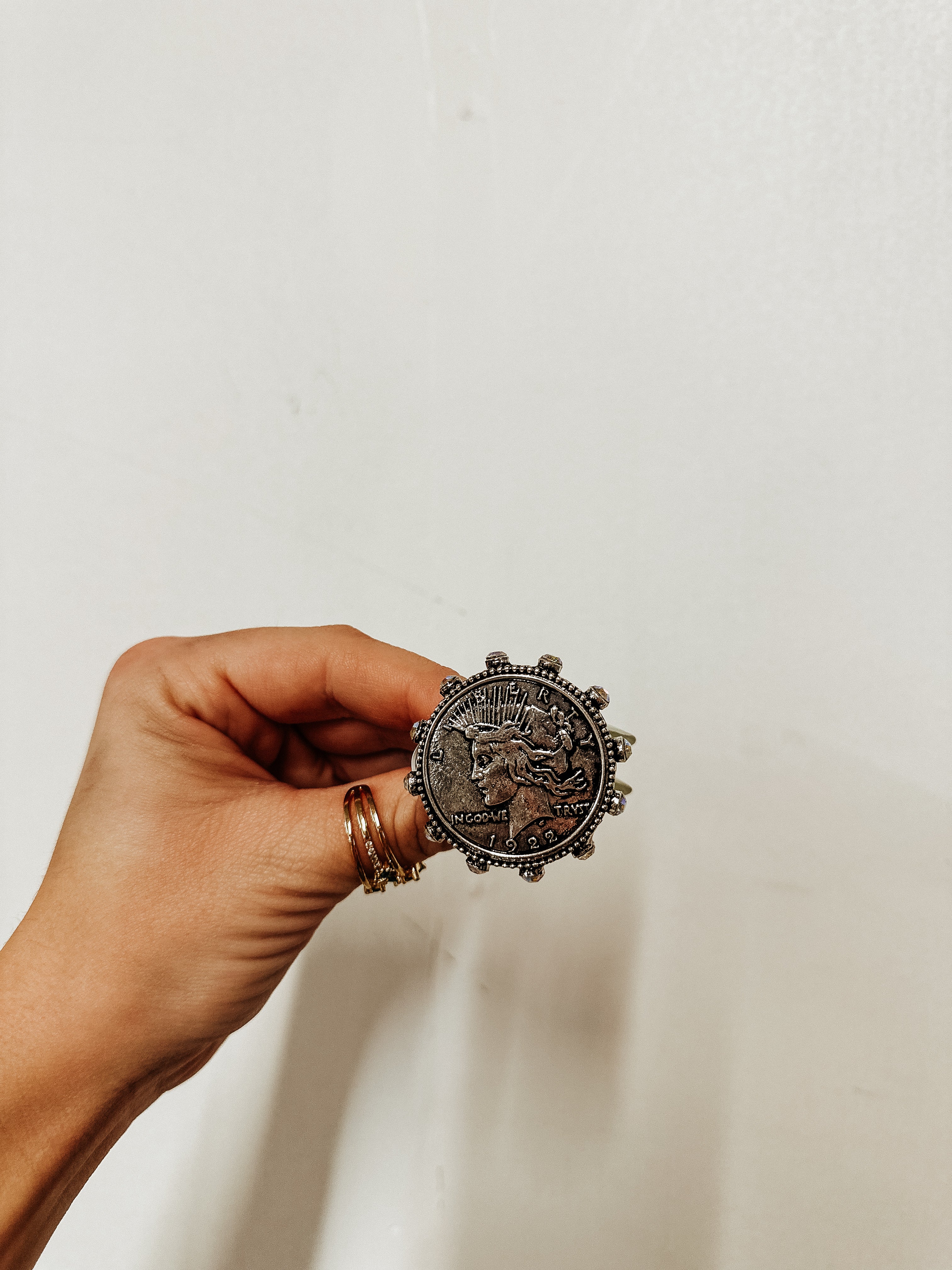 Make your style shine with the Liberty Bling Ring, an oversized piece that truly stands out. Inspired by the iconic liberty coin design, this ring adds a bold, playful touch to any outfit. Perfect for those who love statement jewelry, it effortlessly blends classic charm with modern sparkle. Whether you’re dressing up for a night out or adding flair to everyday wear, this ring is your go-to accessory for turning heads and sparking compliments. Embrace the fun of bold bling and let your personality dazzle!