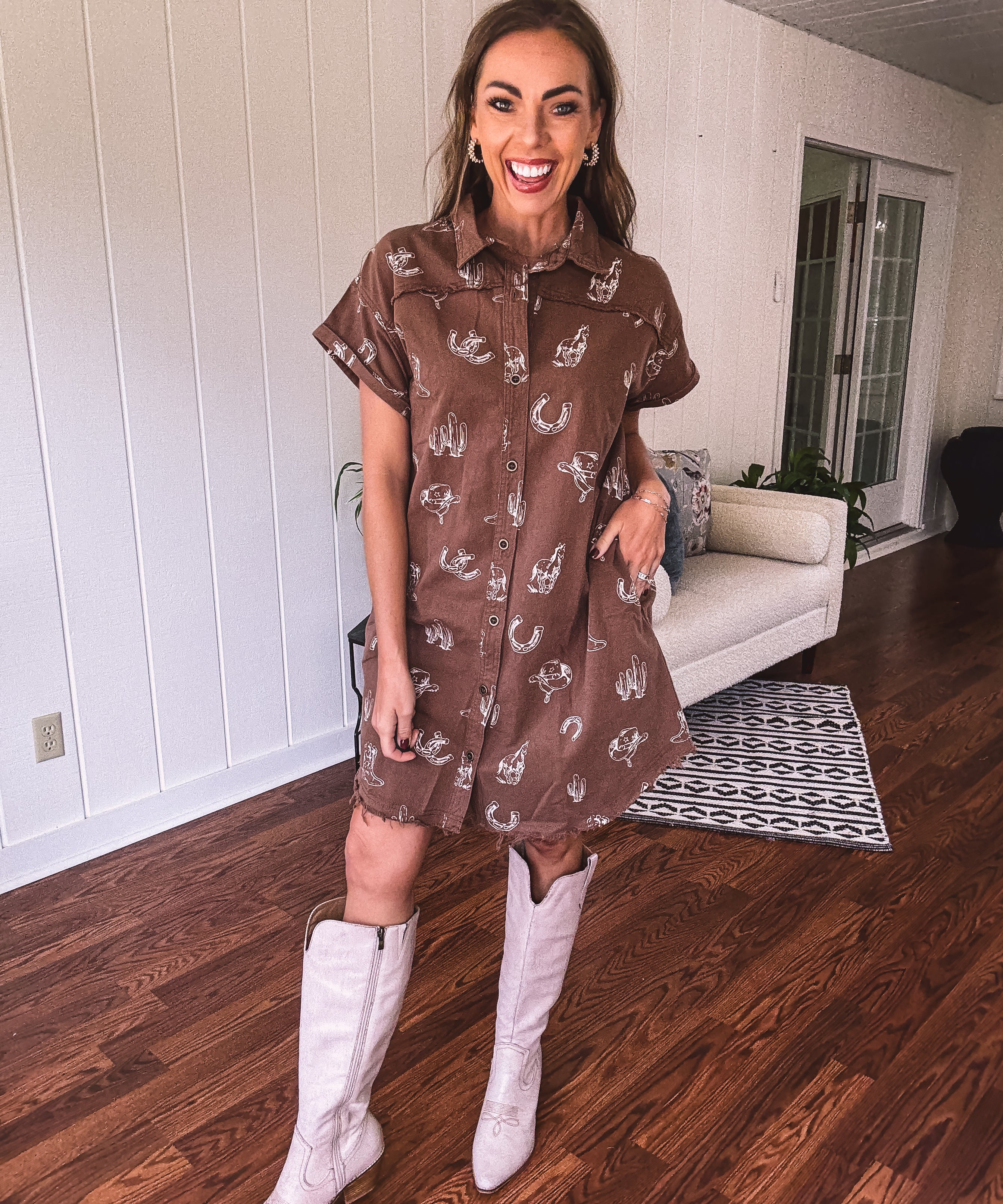 Cowboy Coffee Western Print Dress