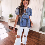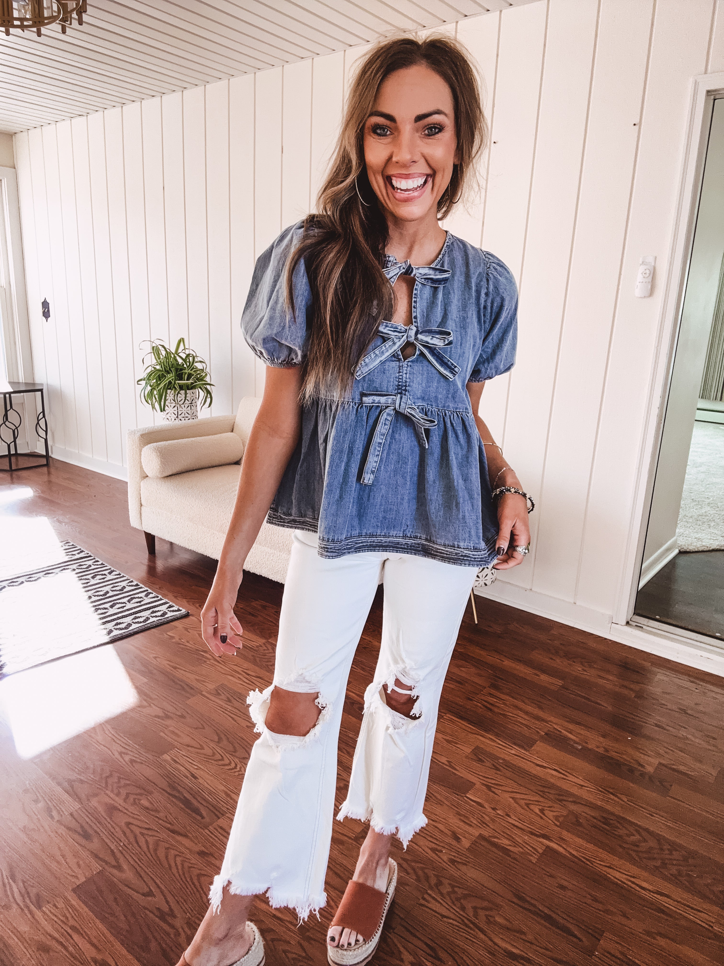 This pair of cream-colored denim features a high rise and straight leg, with just the right amount of stretch for comfort. The raw hem and distressed knees add a trendy touch, while the contrast stitching adds the perfect finishing touch to your spring and summer outfits.
