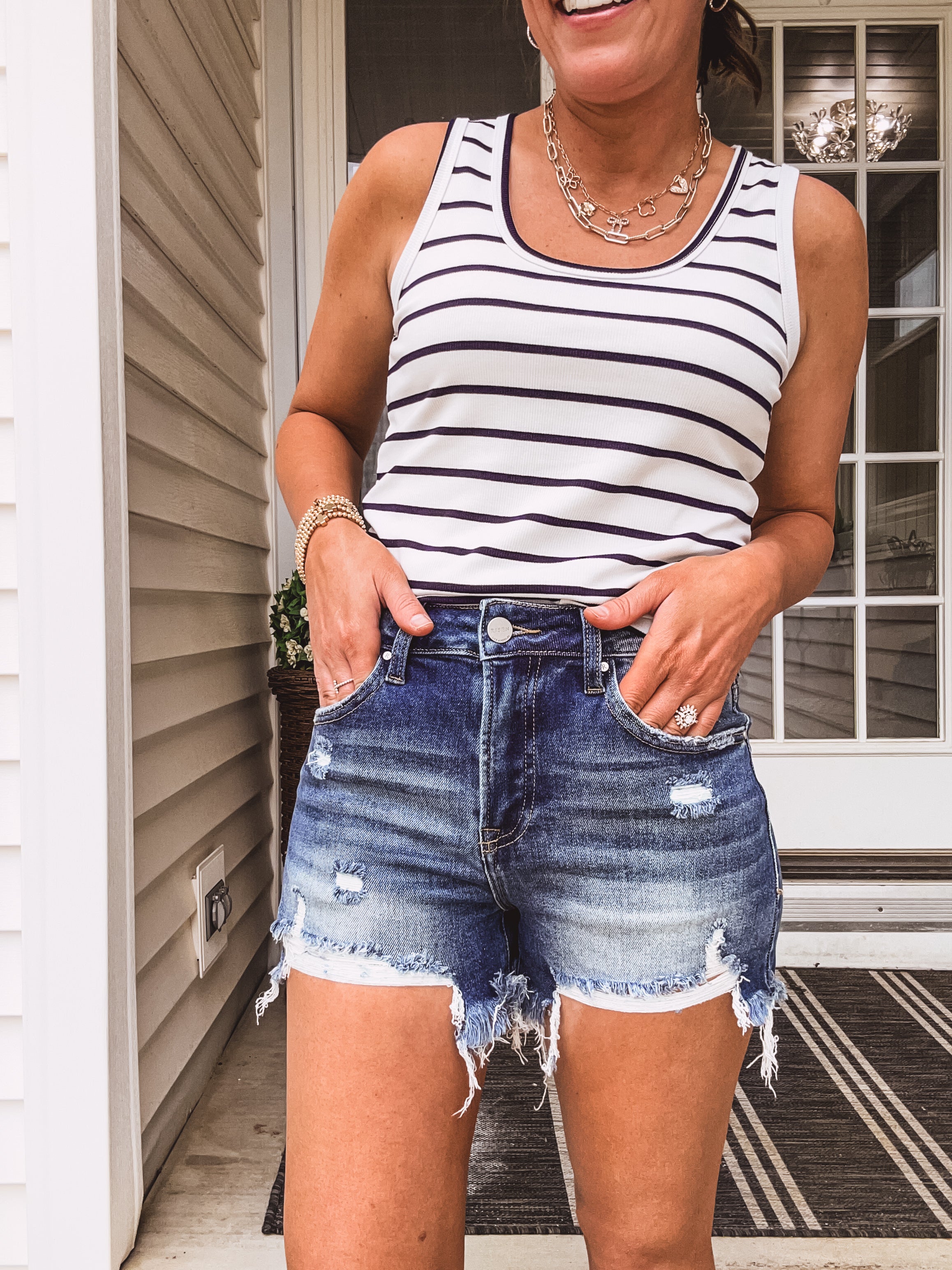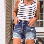 Medium Wash High Rise Distressed Shorts