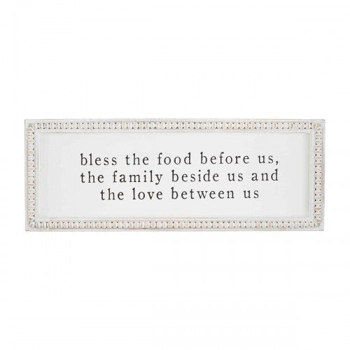 White-washed mango wood plaque with beaded frame. Sawtooth hardware.