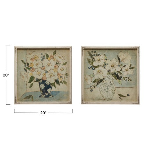 20" Square Wood Framed Wall Decor w/ Floral Print