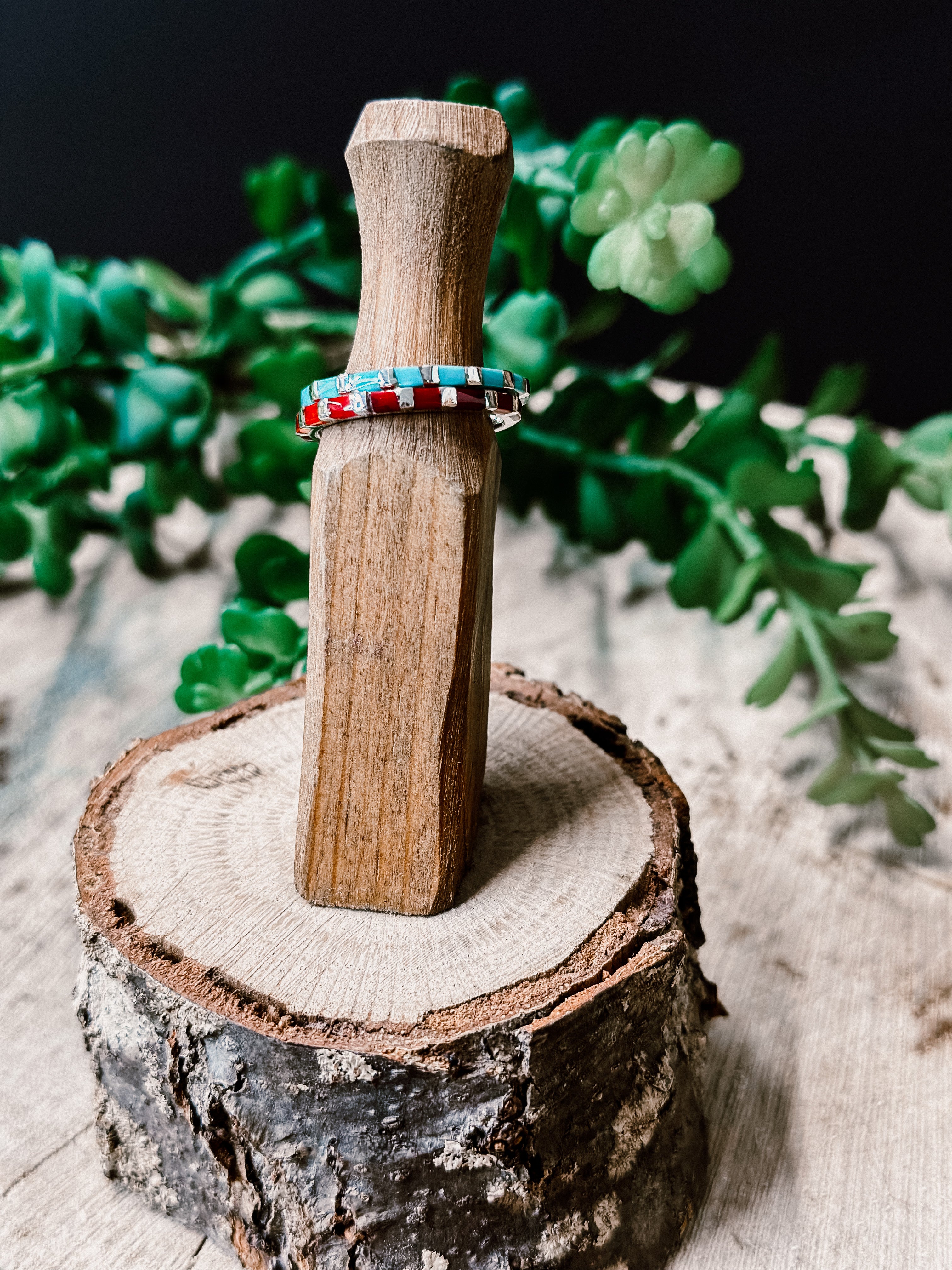 Stack It Up With These Sterling Silver Square Inlay Stacker Rings in Turquoise or Red Jasper!