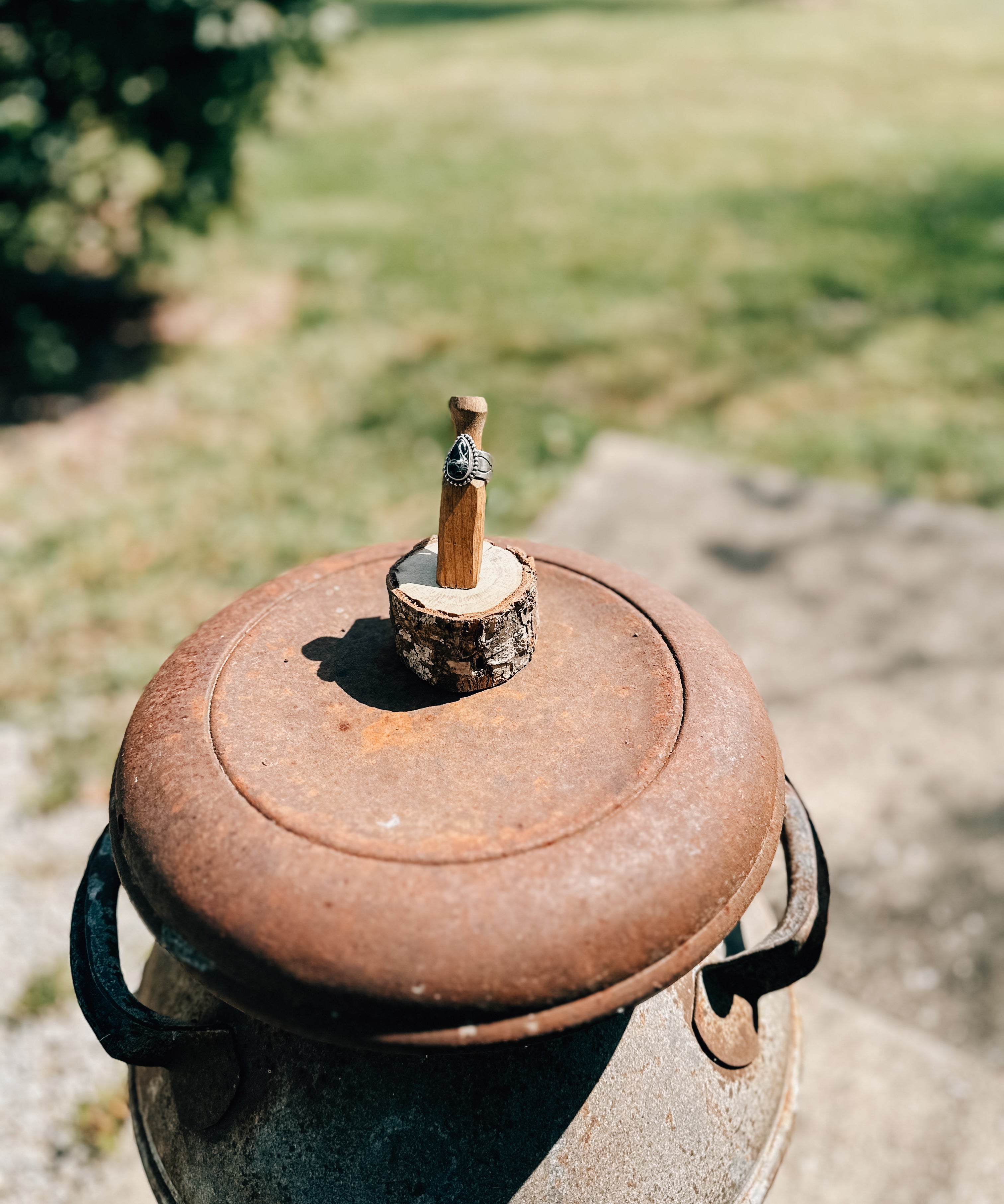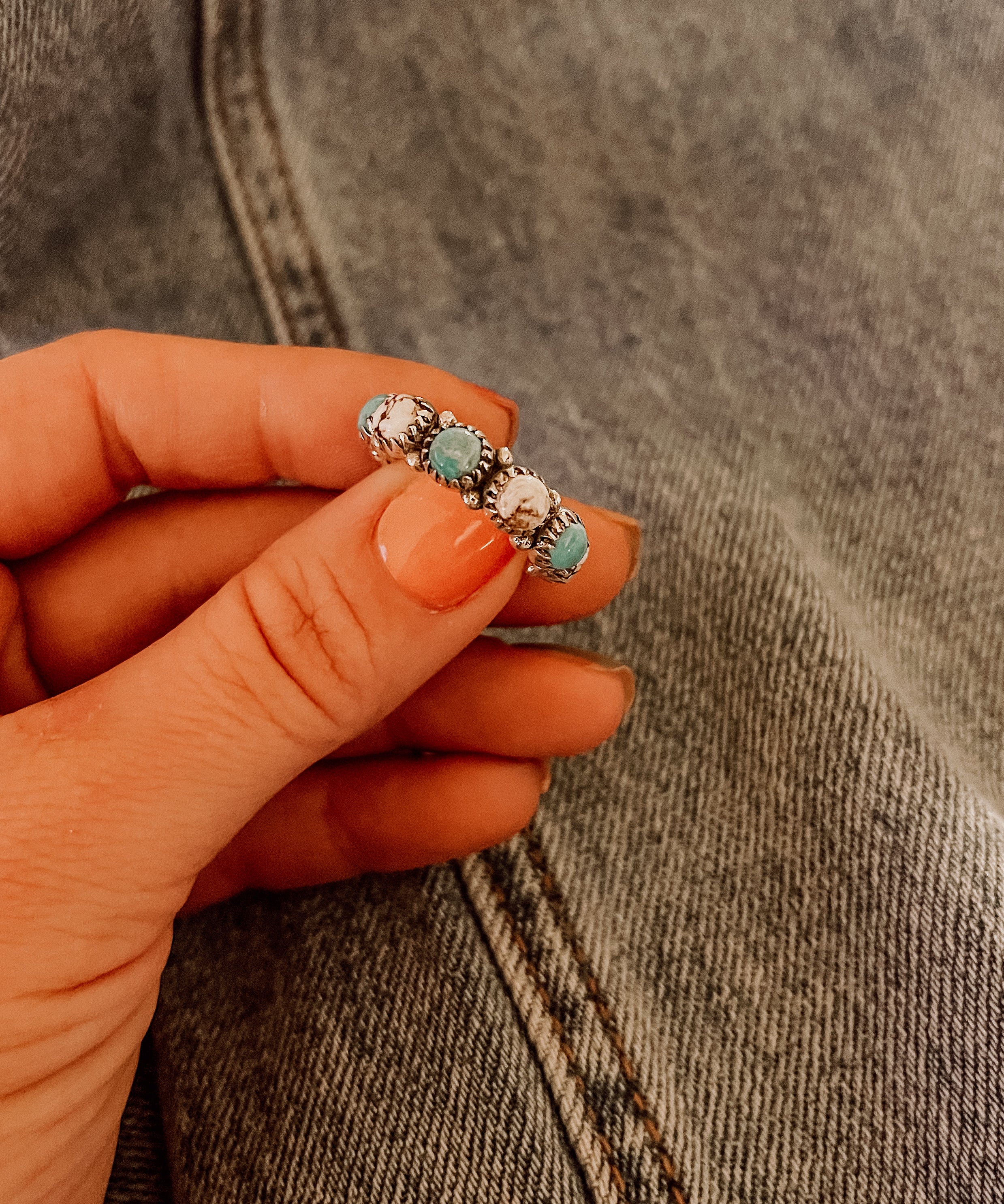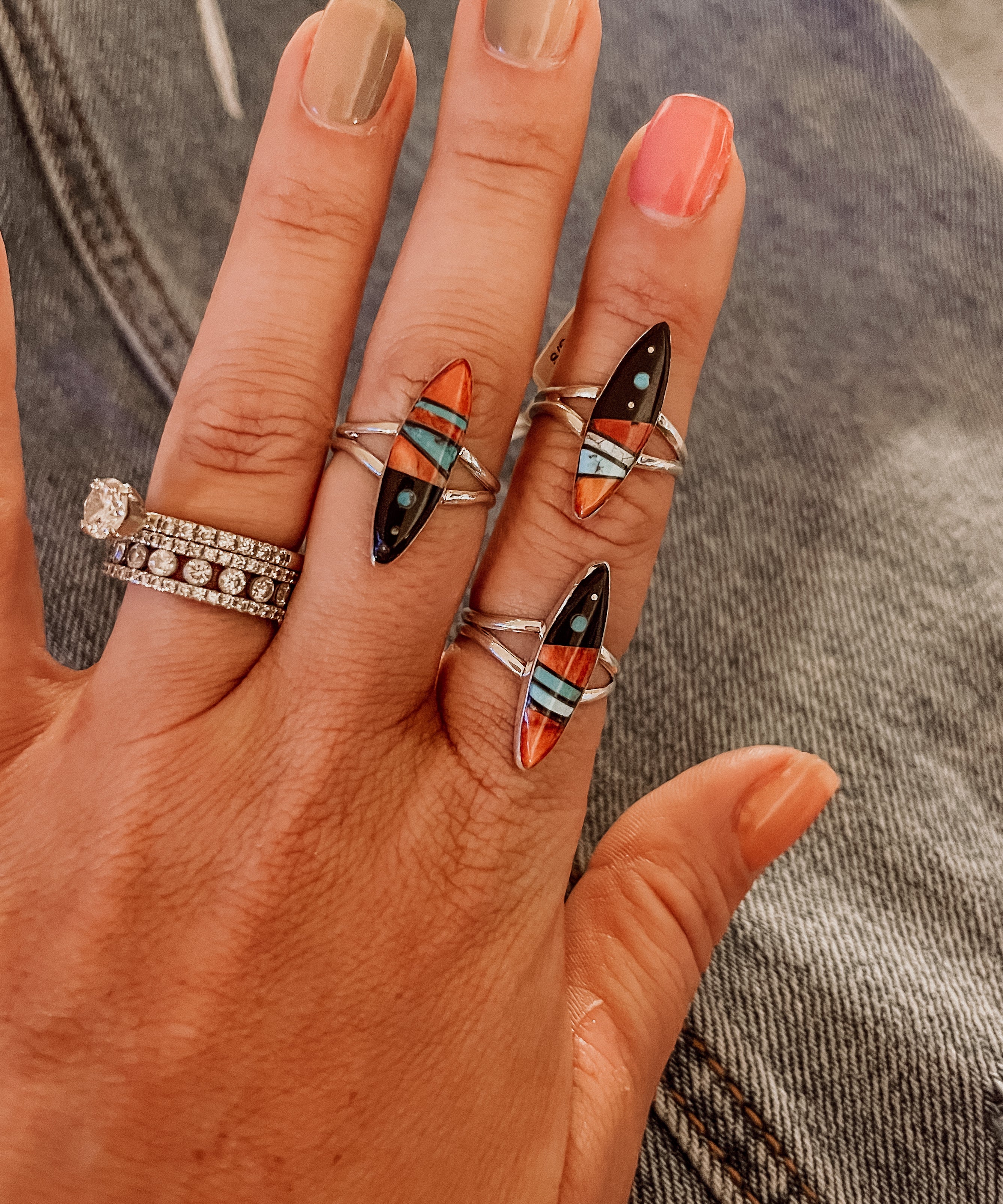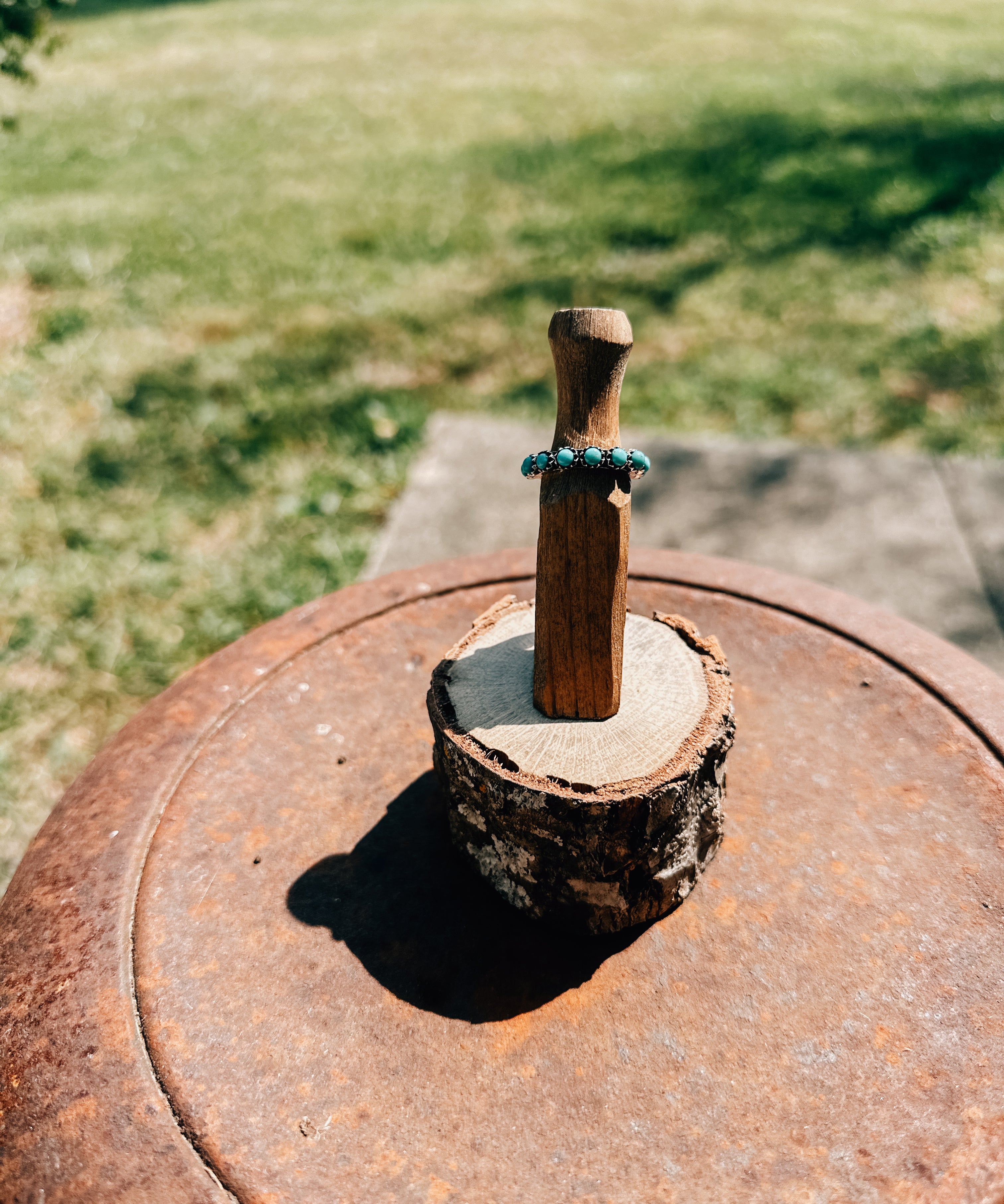 Aztec Stamp Red Jasper SS 5 Row Ring