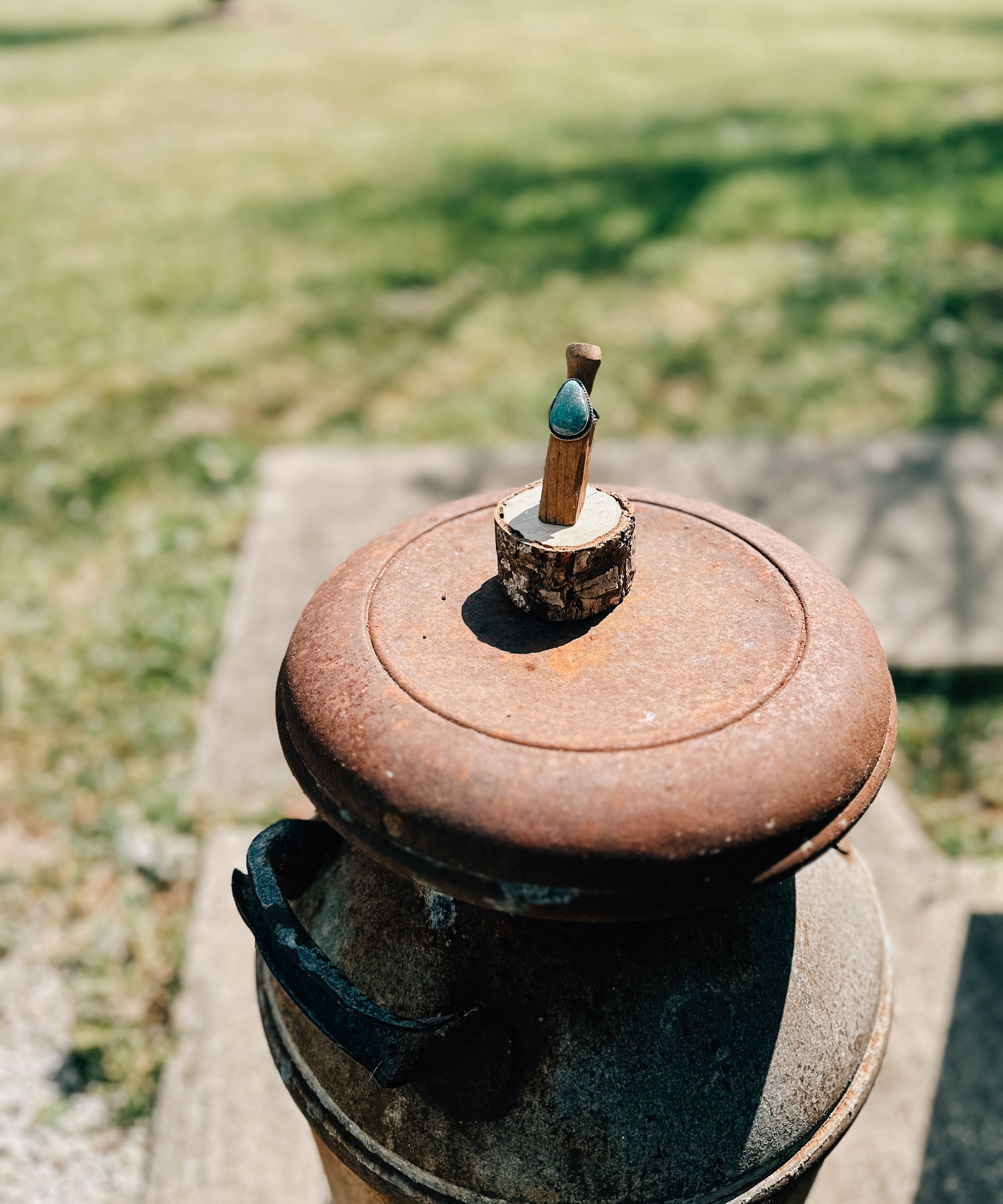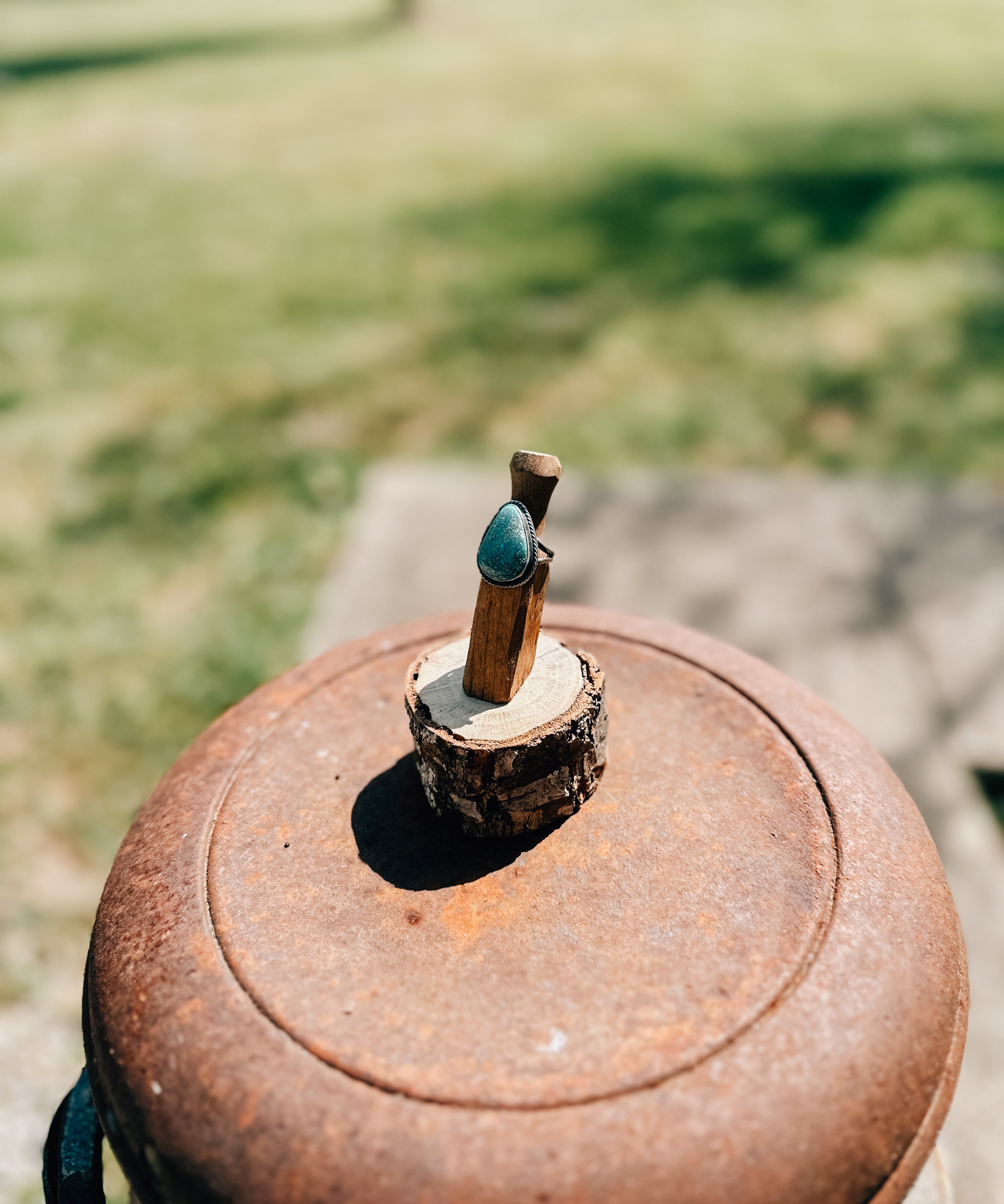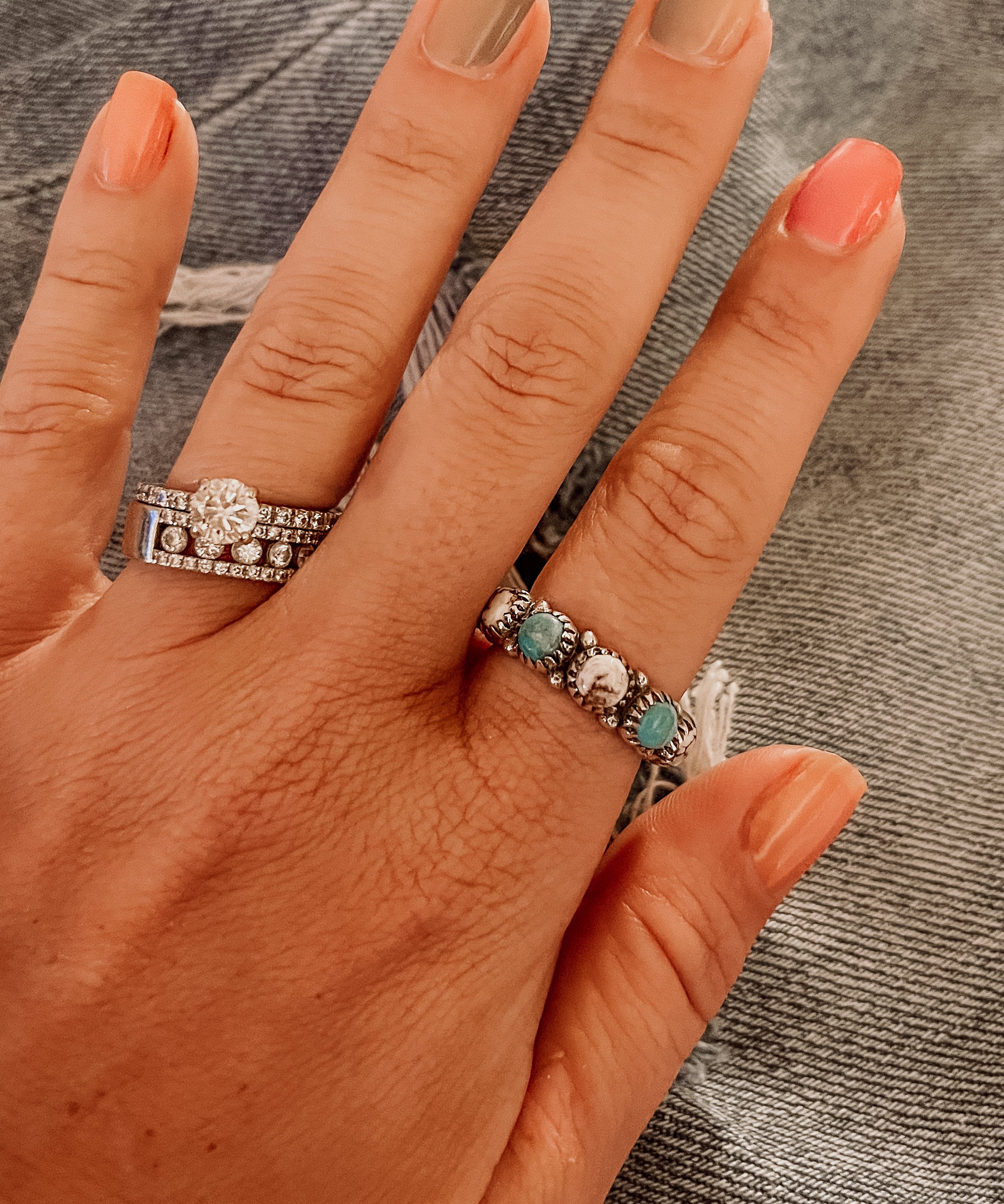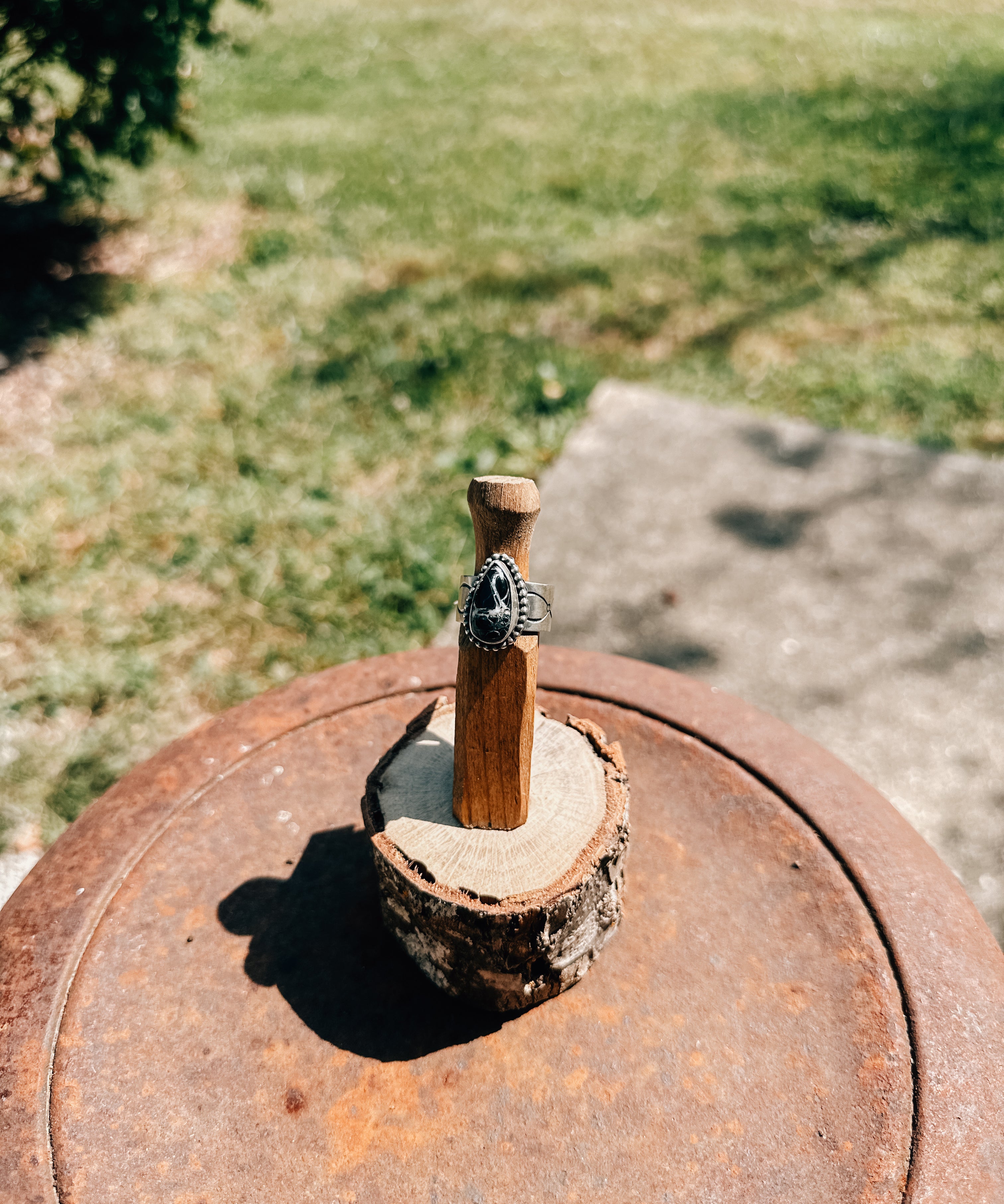 Aztec Stamp Red Jasper SS 5 Row Ring