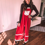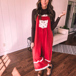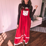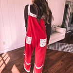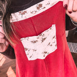 Red Terry Knit Patchwork Overalls