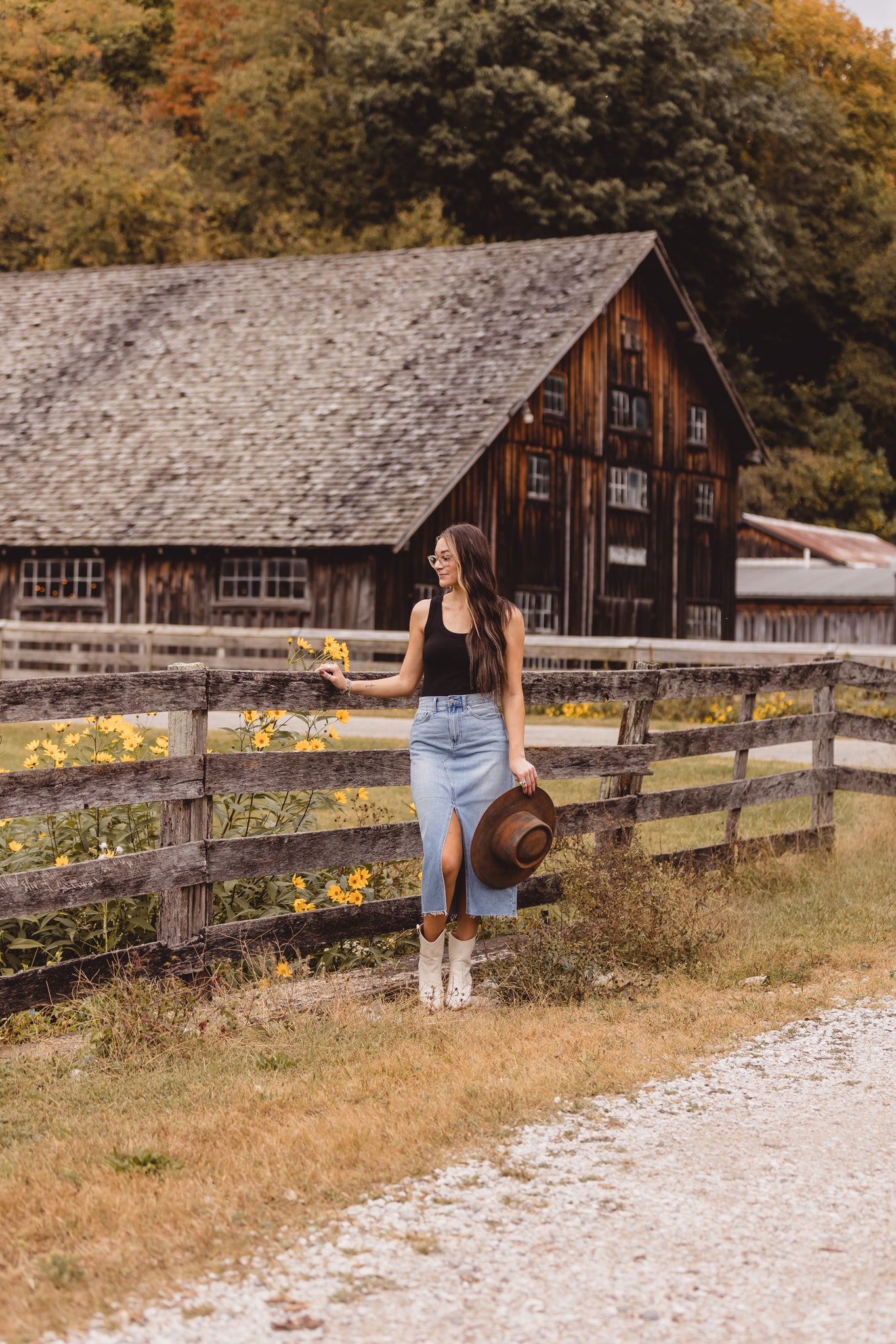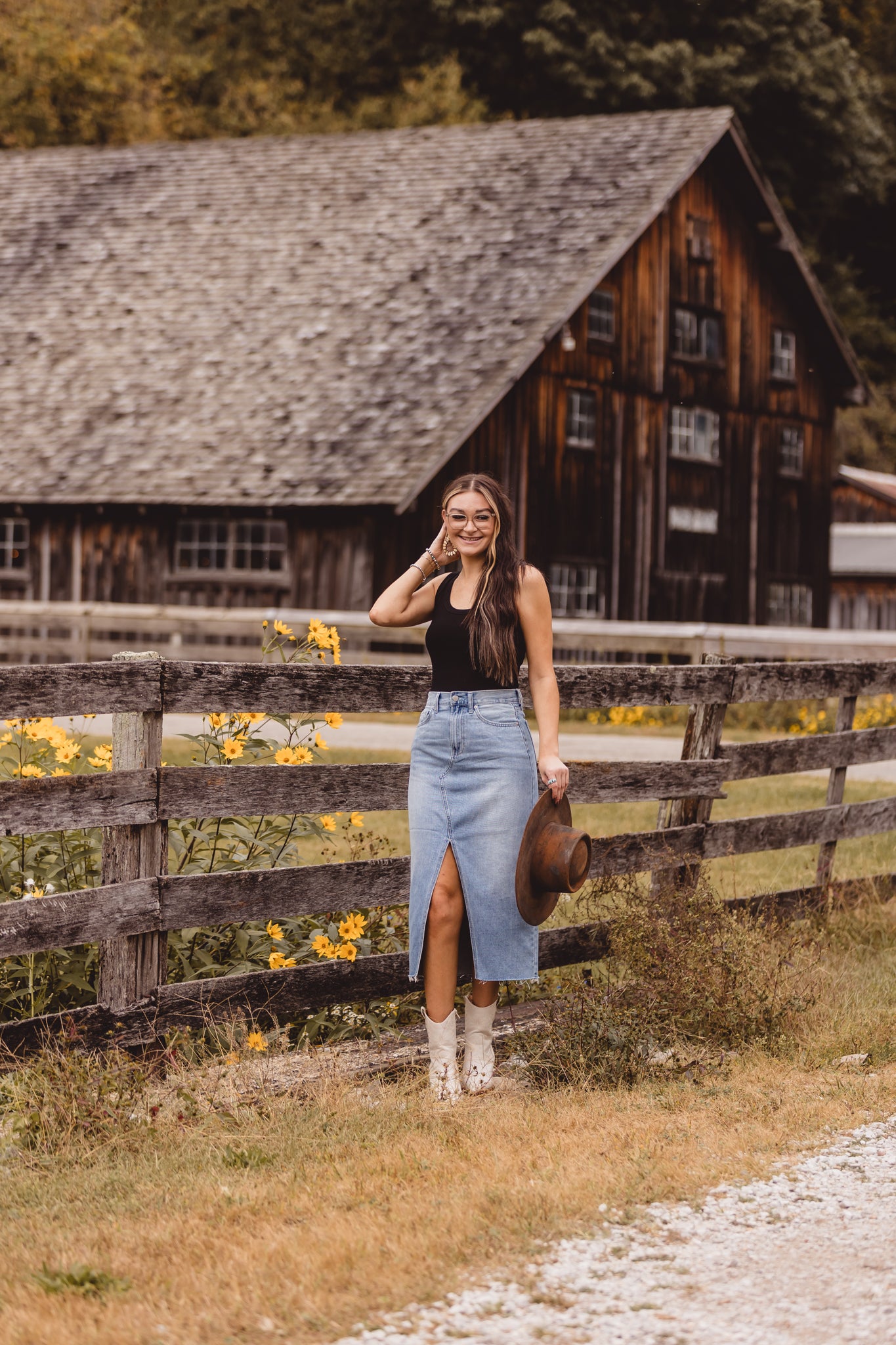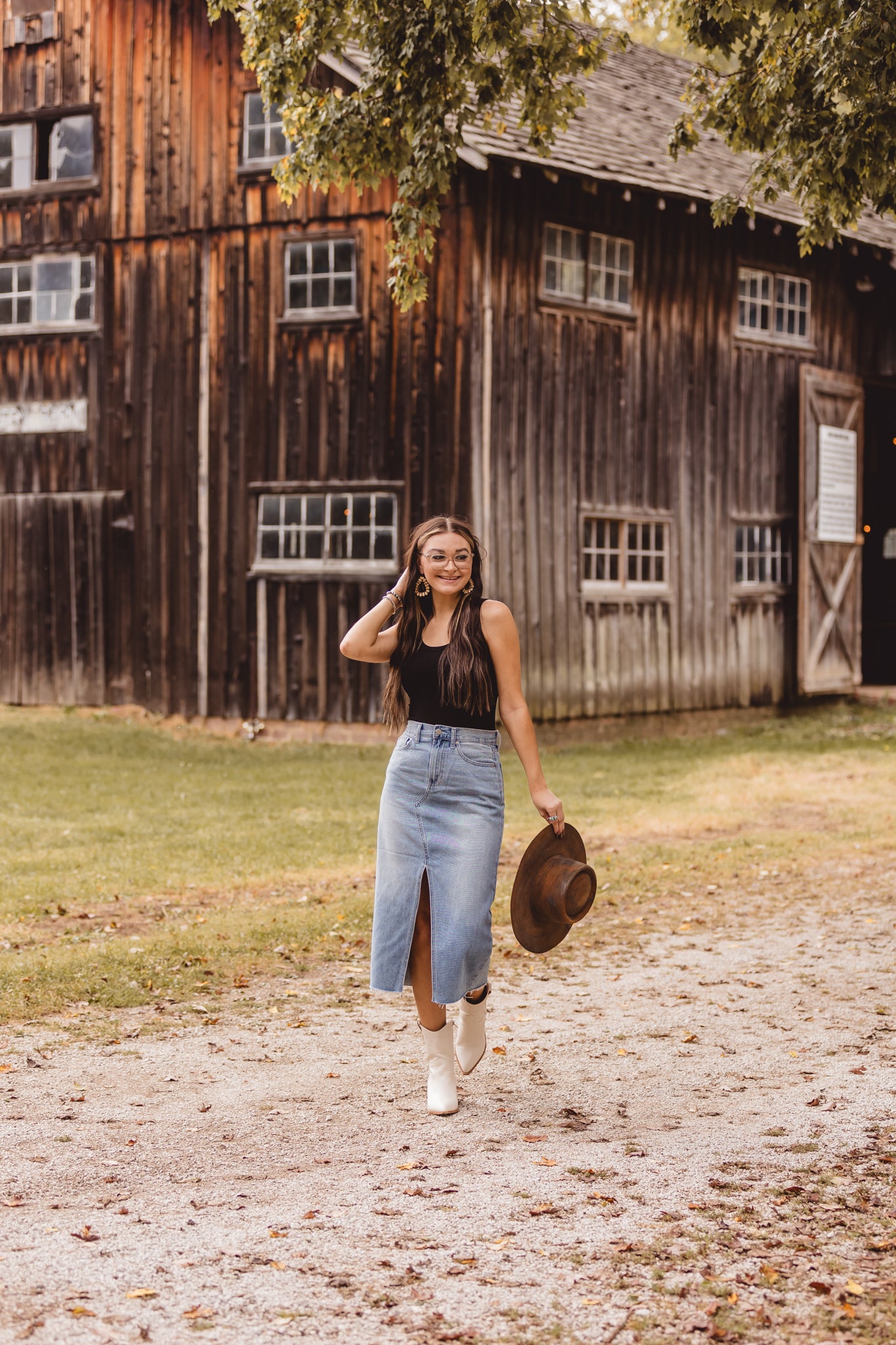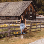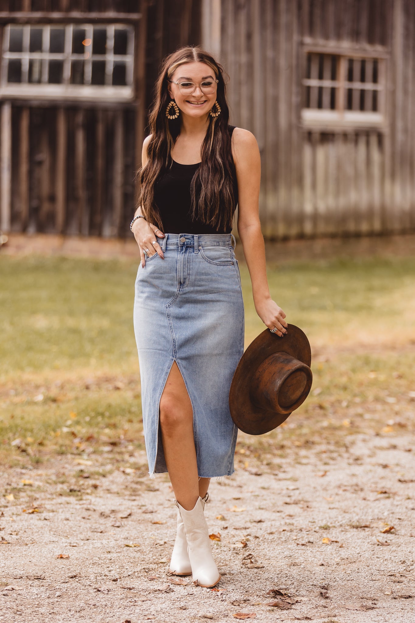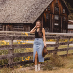 Light Denim Open Slit Midi Skirt