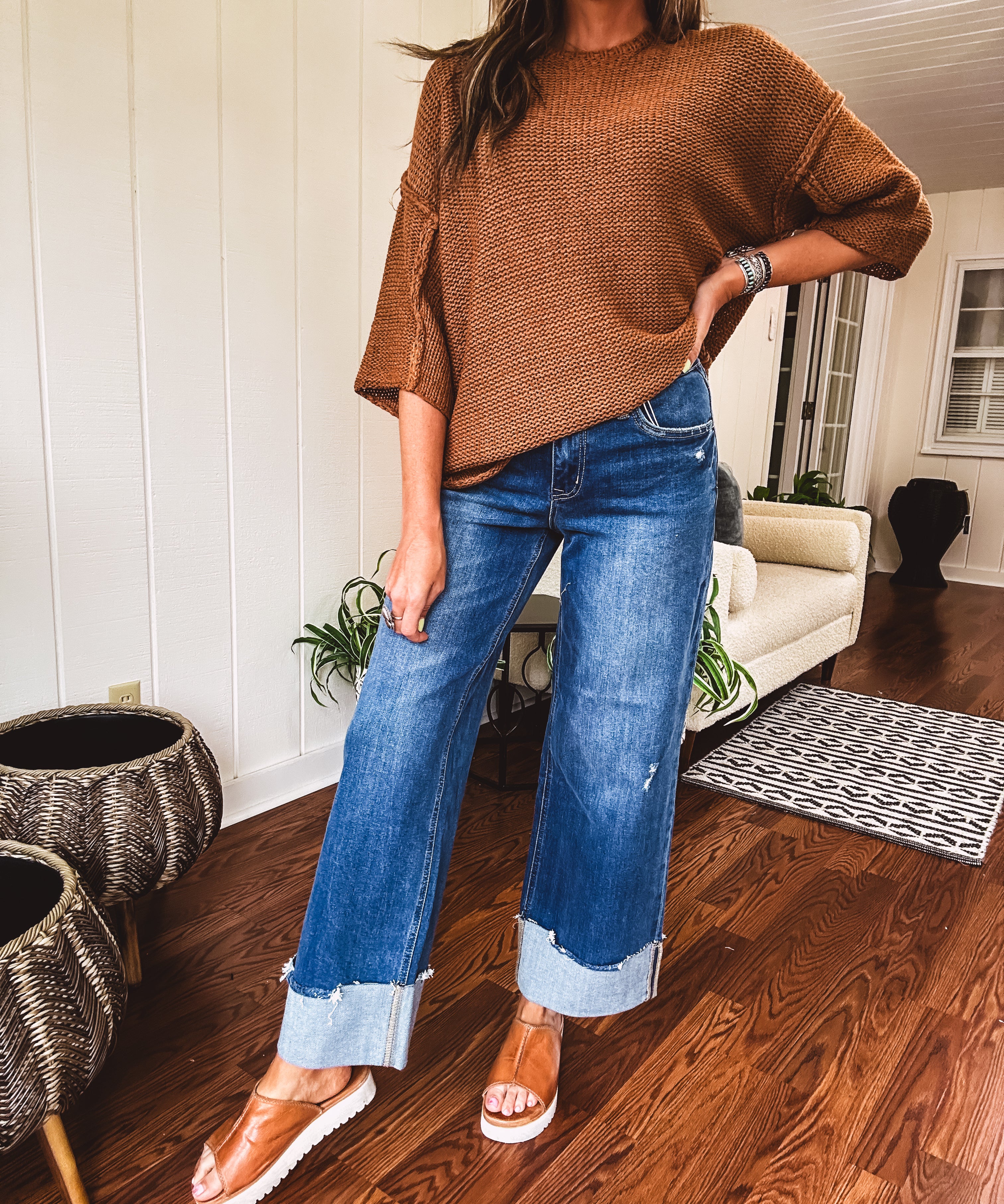 Blue Stream Baggy Wide Cuffed Denim | High Rise