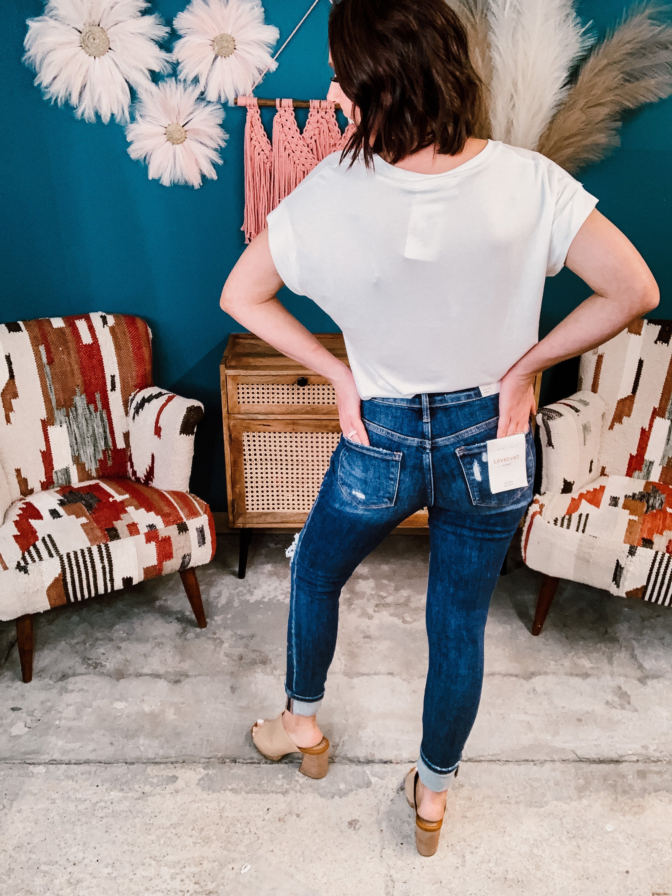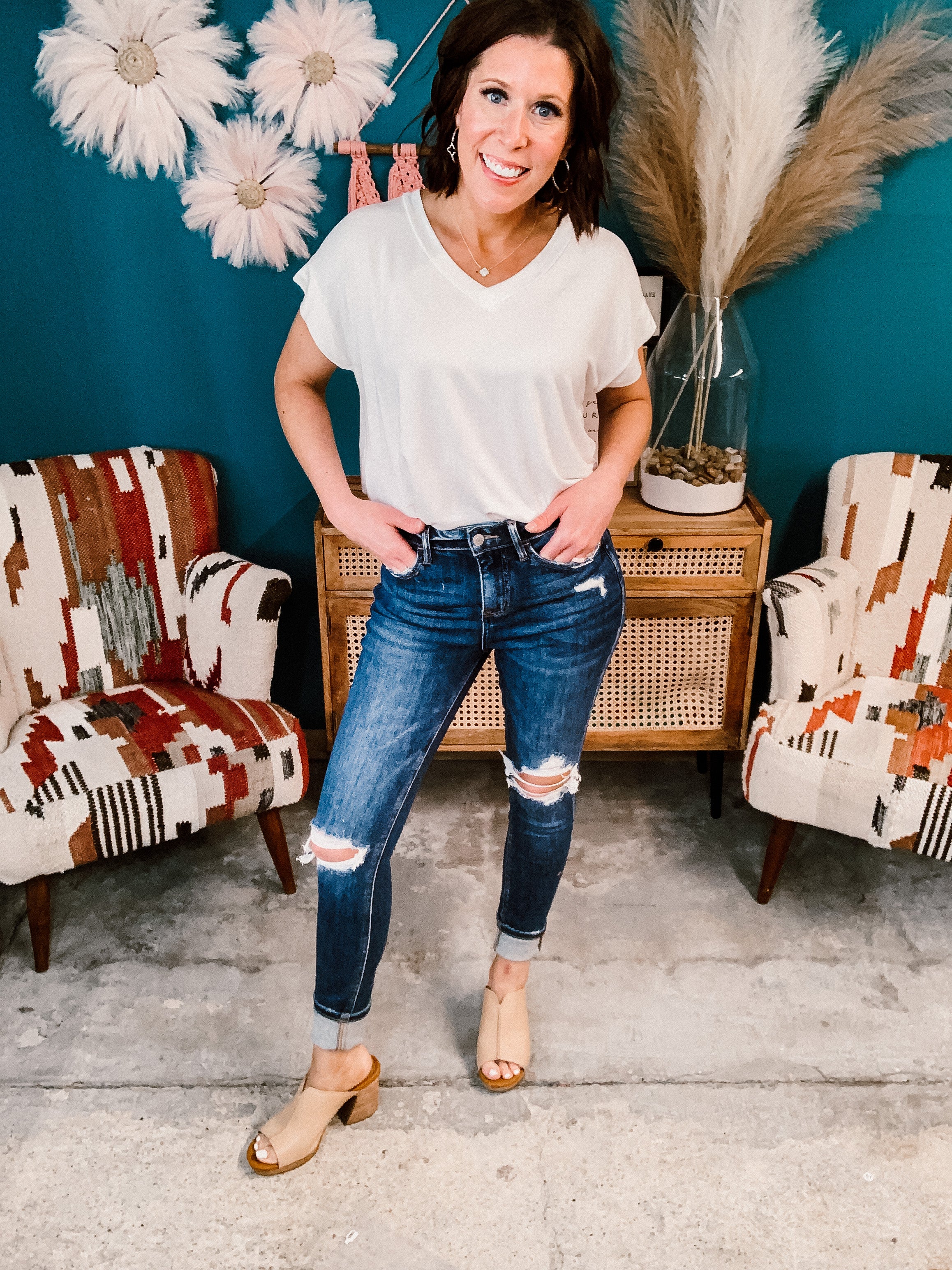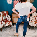 Step out in these fabulous medium wash skinny jeans, complete with playful knee distressing and just enough stretch to hug every curve. Whether you're out shopping with your crew or enjoying a night on the town, these jeans are your new favorite blend of comfort and style.