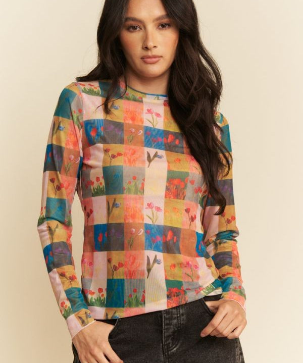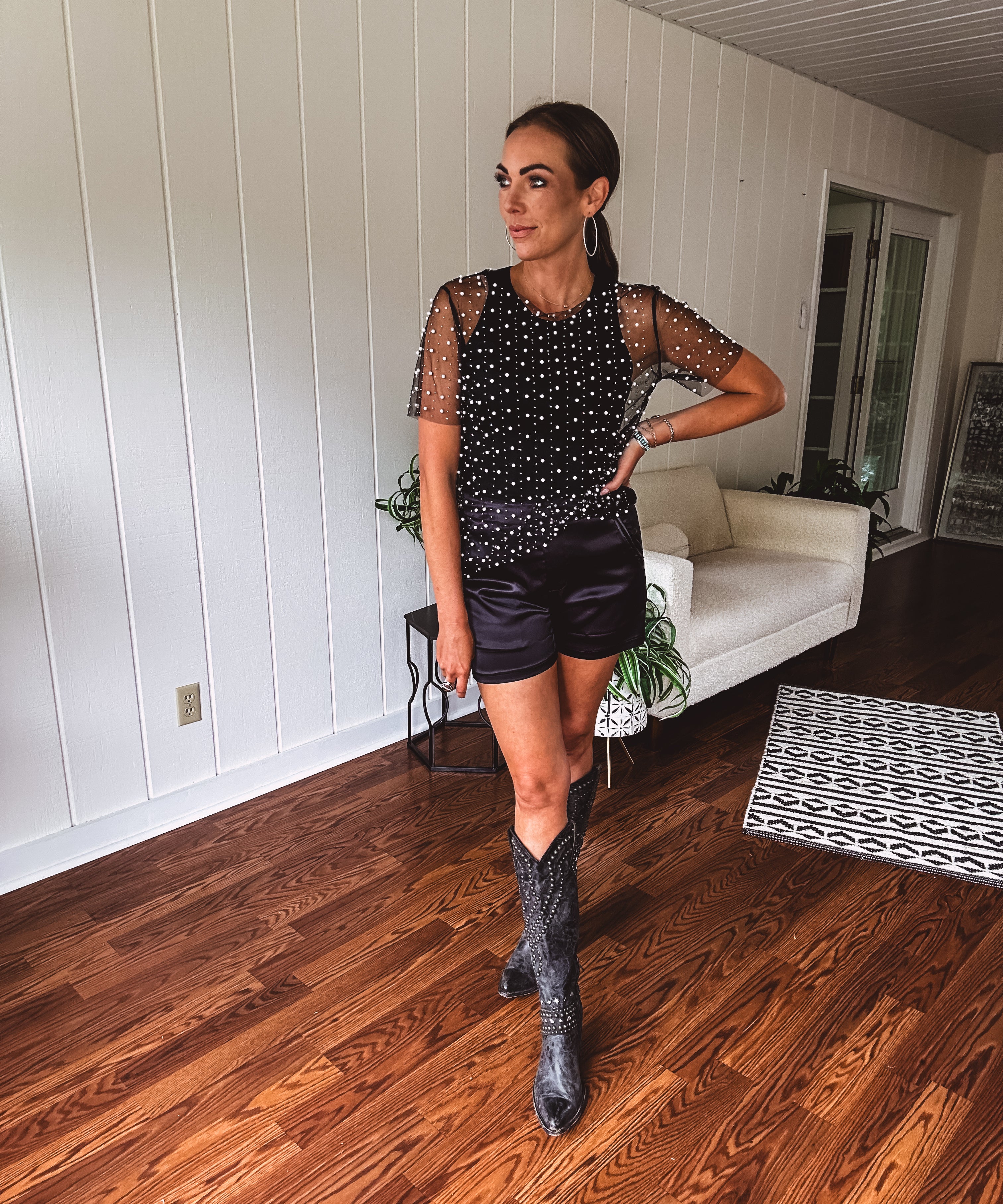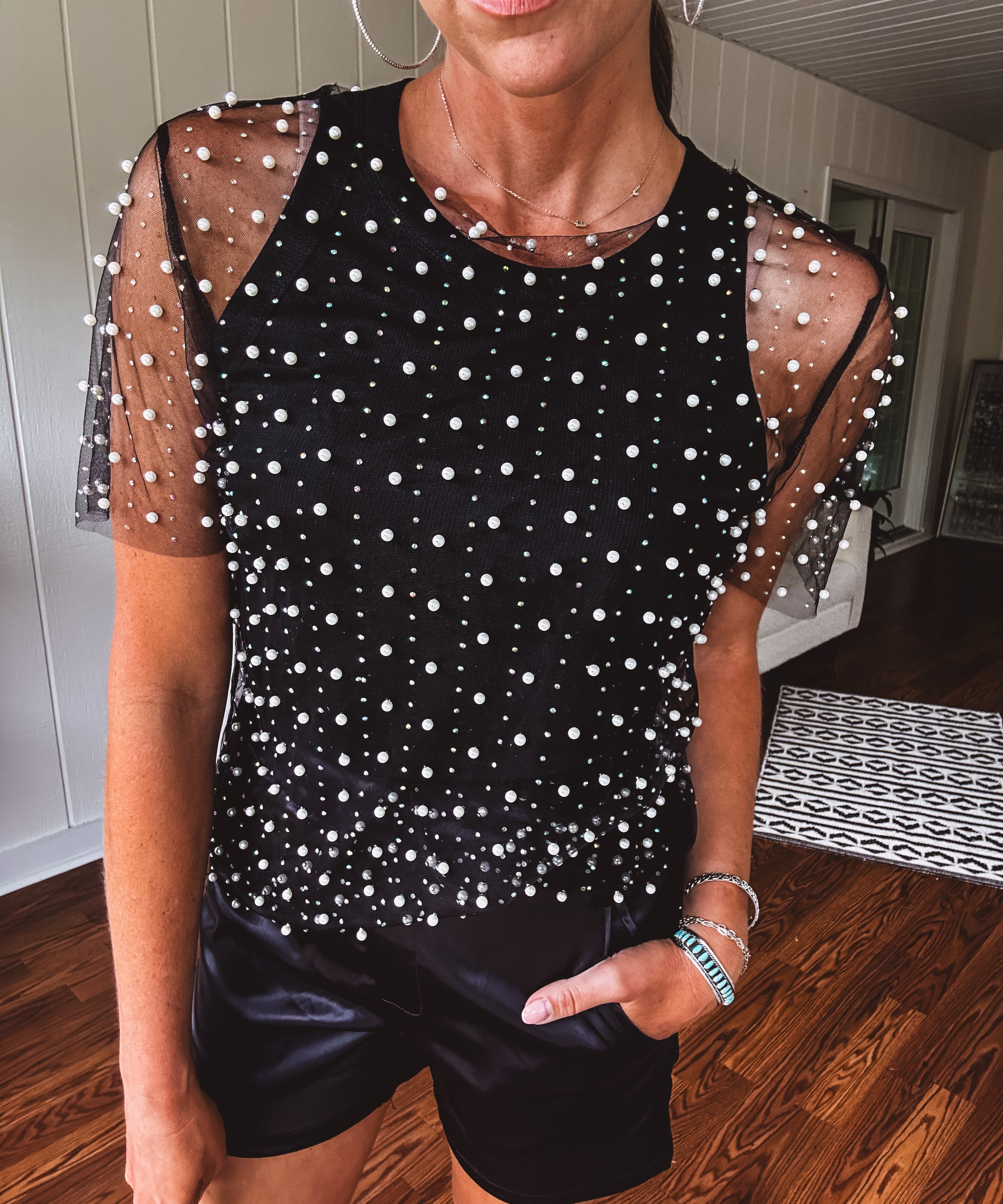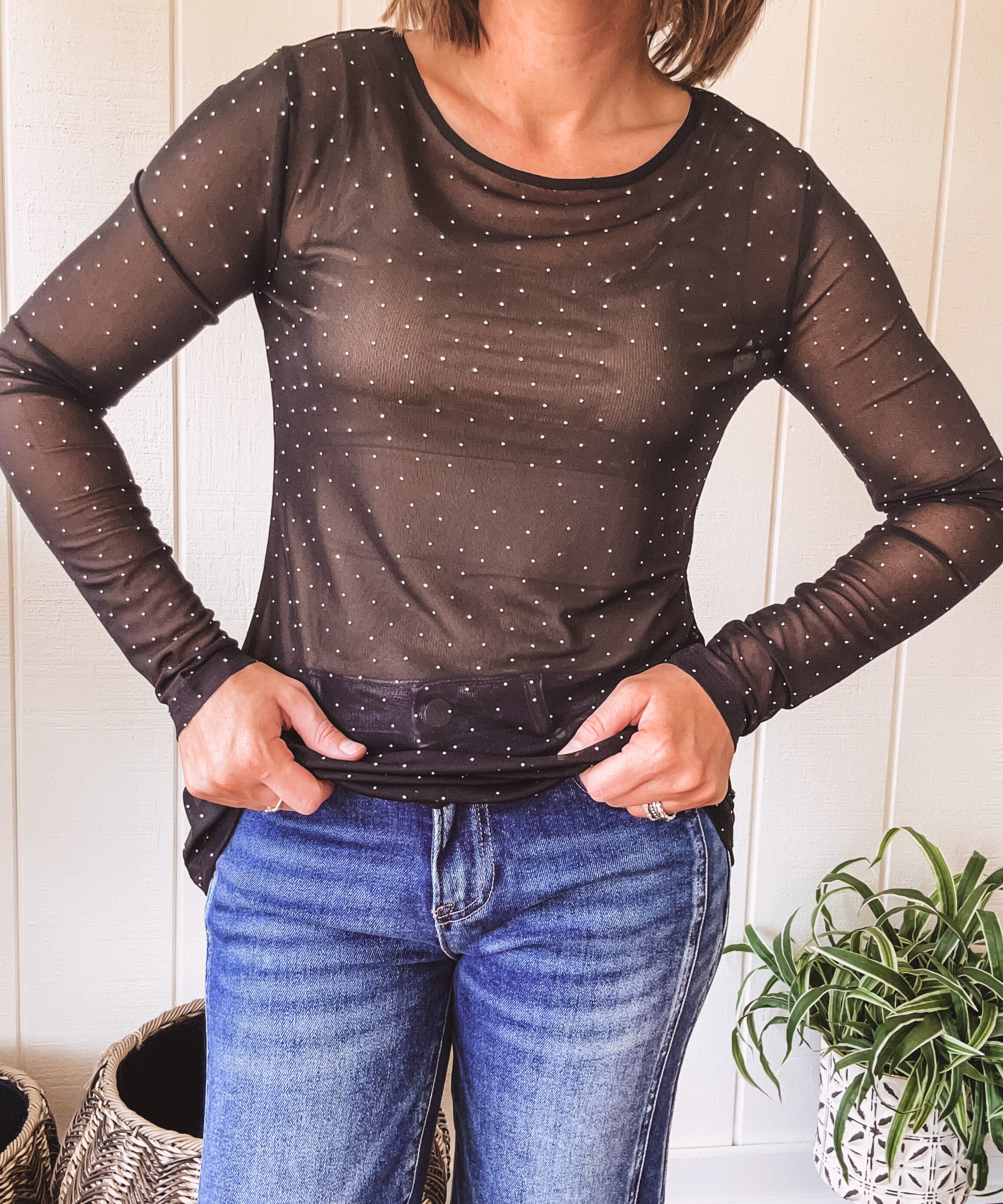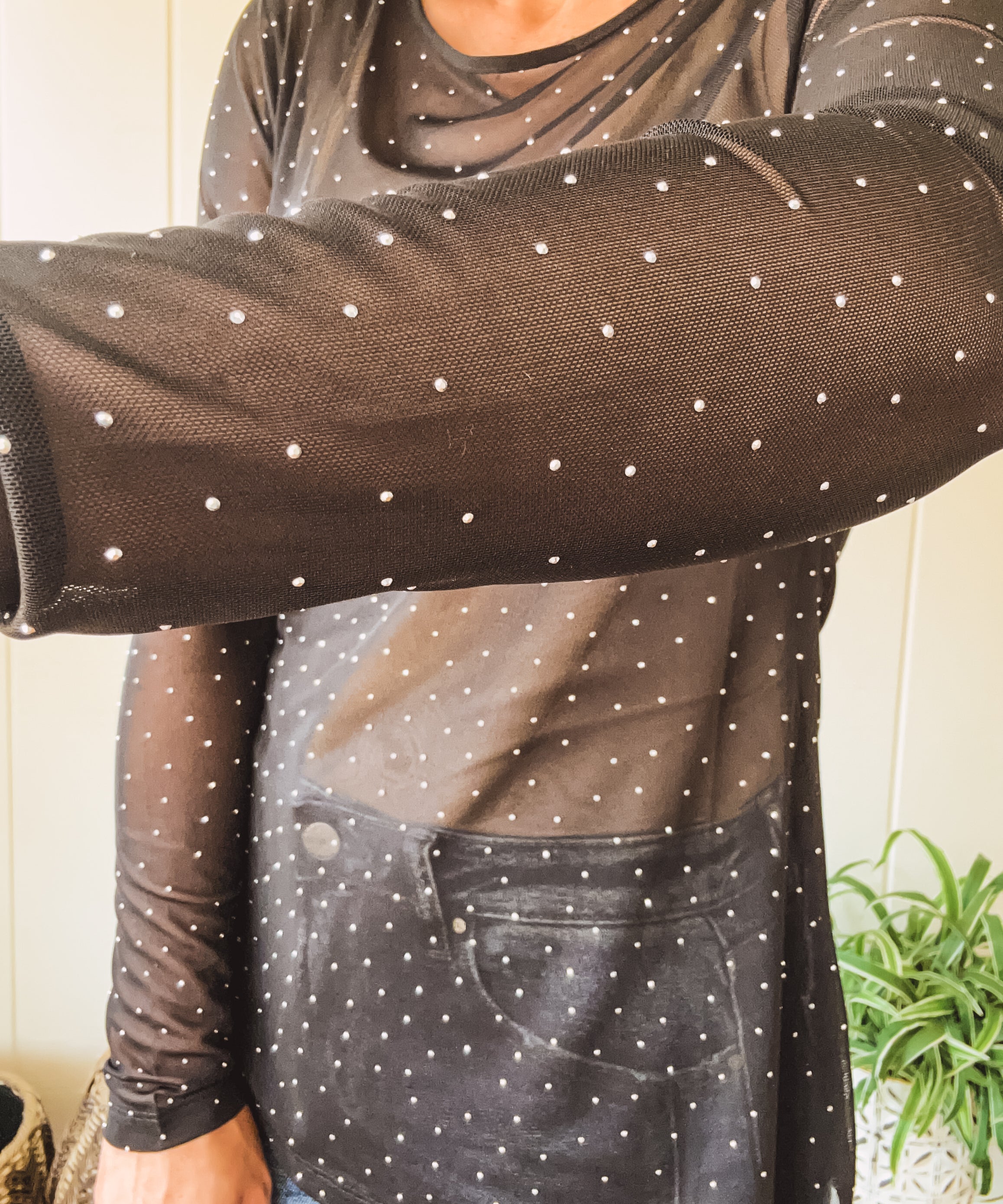 Black Long Sleeve Mesh Top With Sparkle Detail