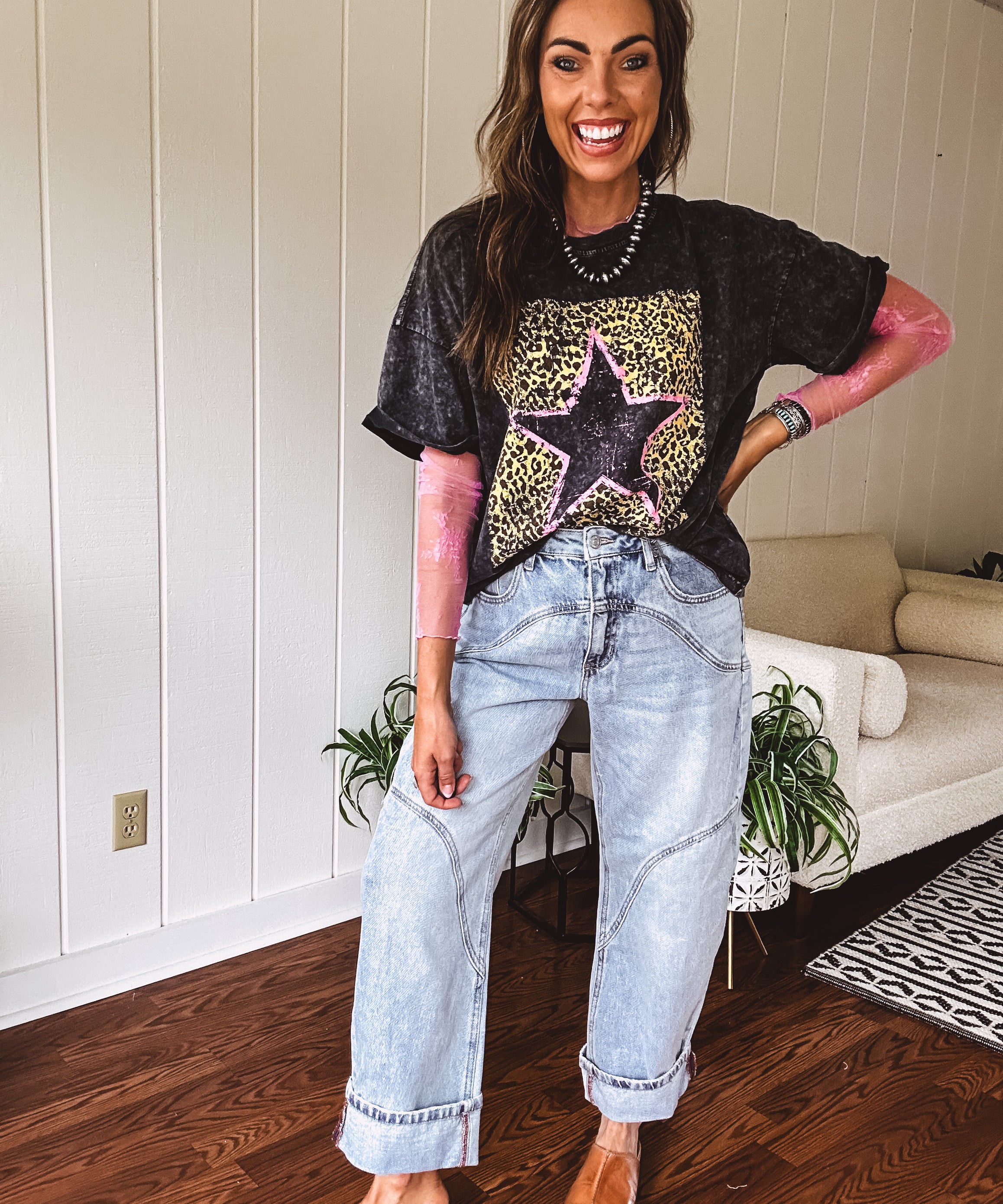 Blue Stream Baggy Wide Cuffed Denim | High Rise