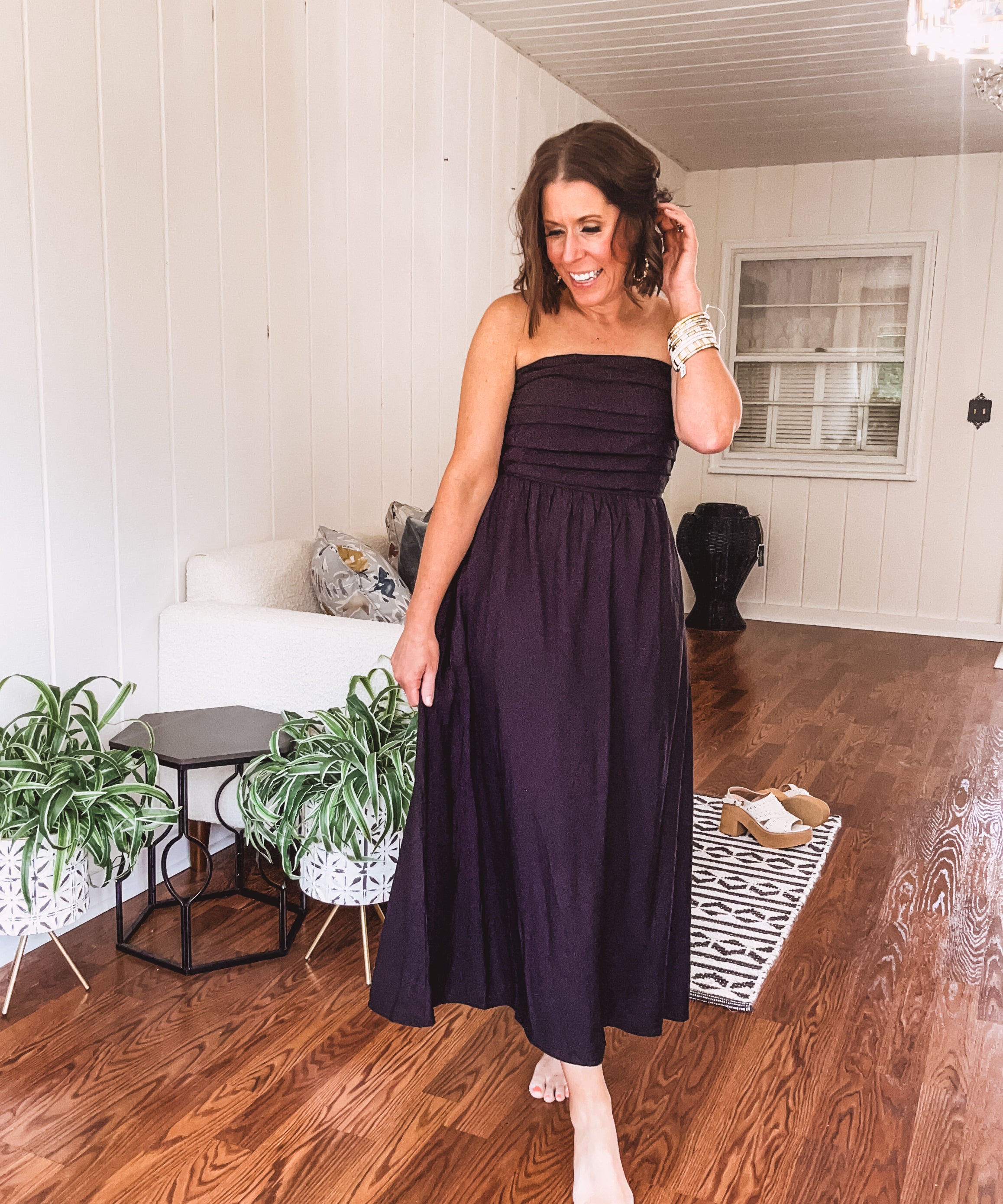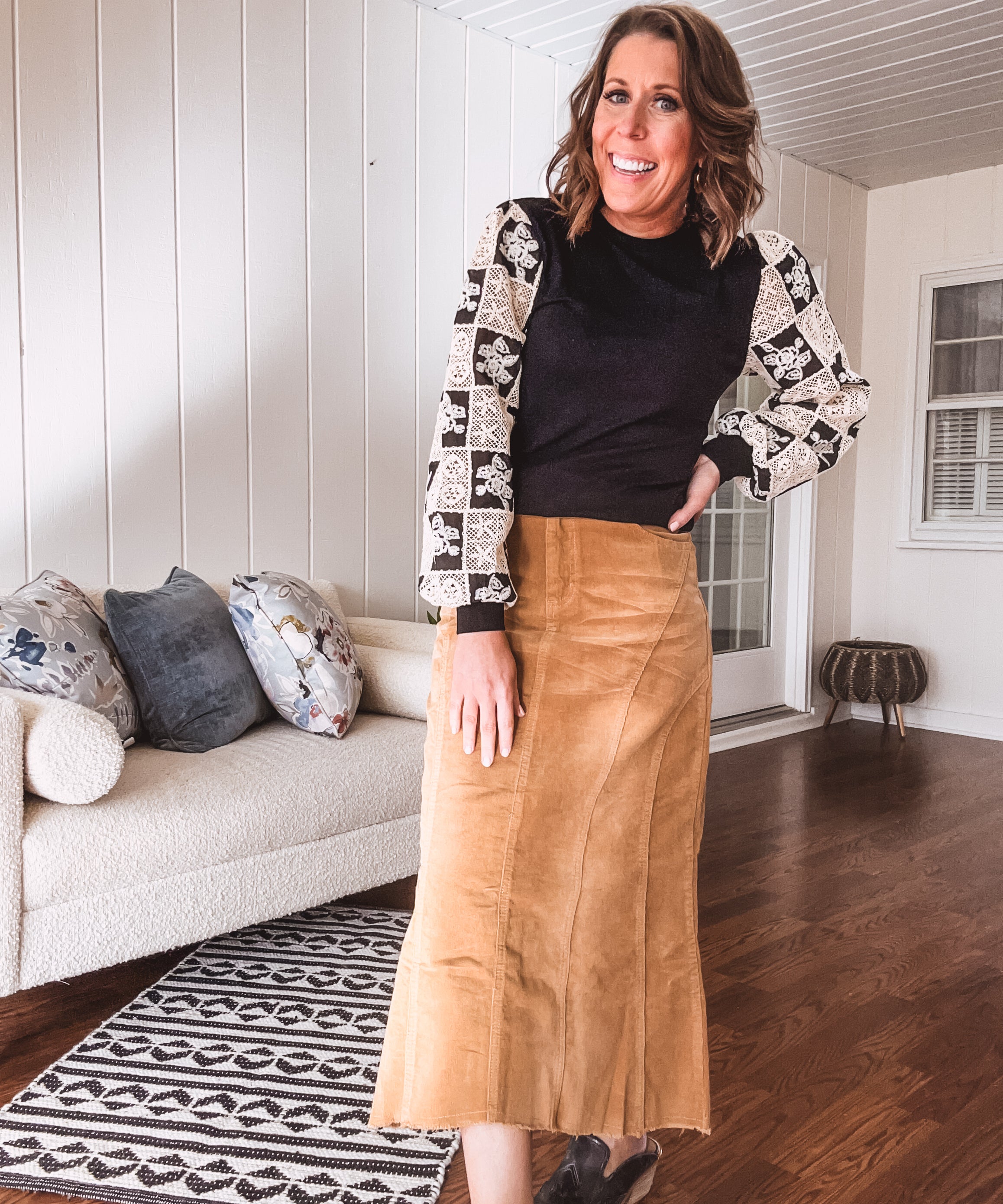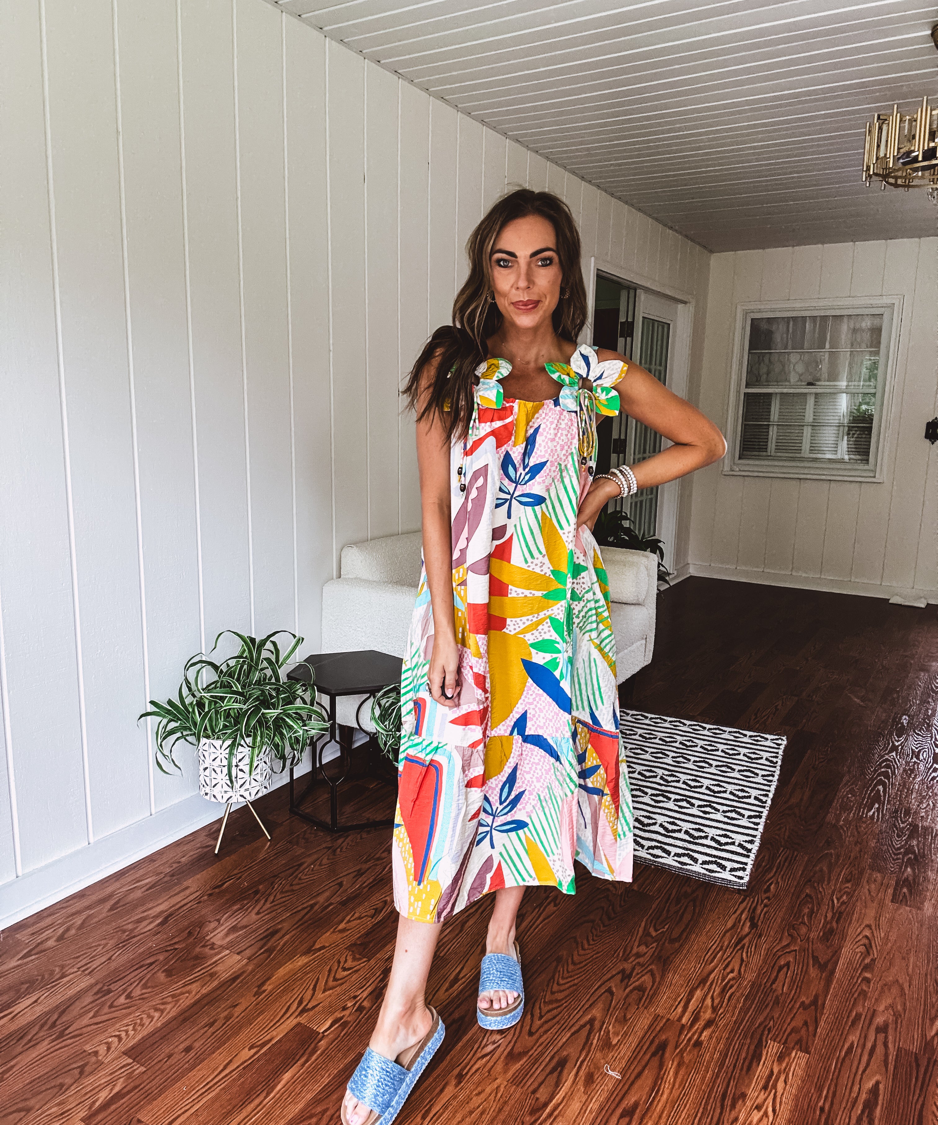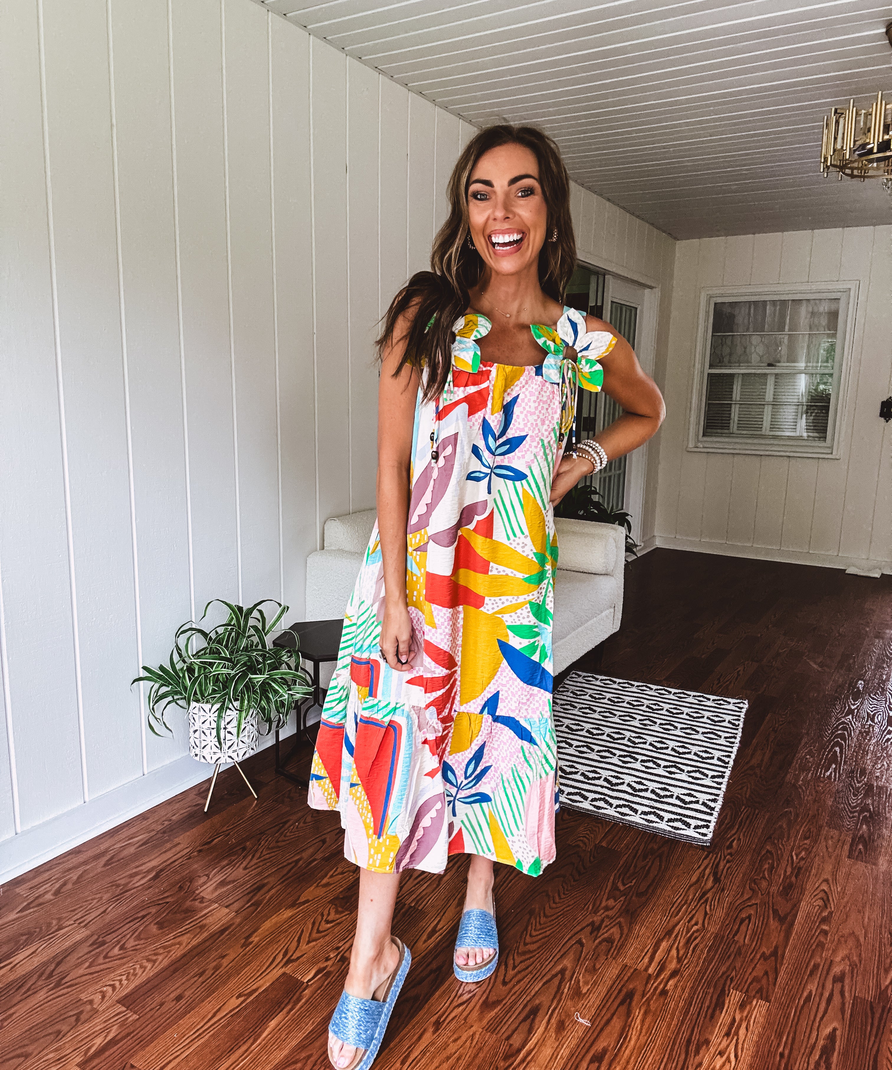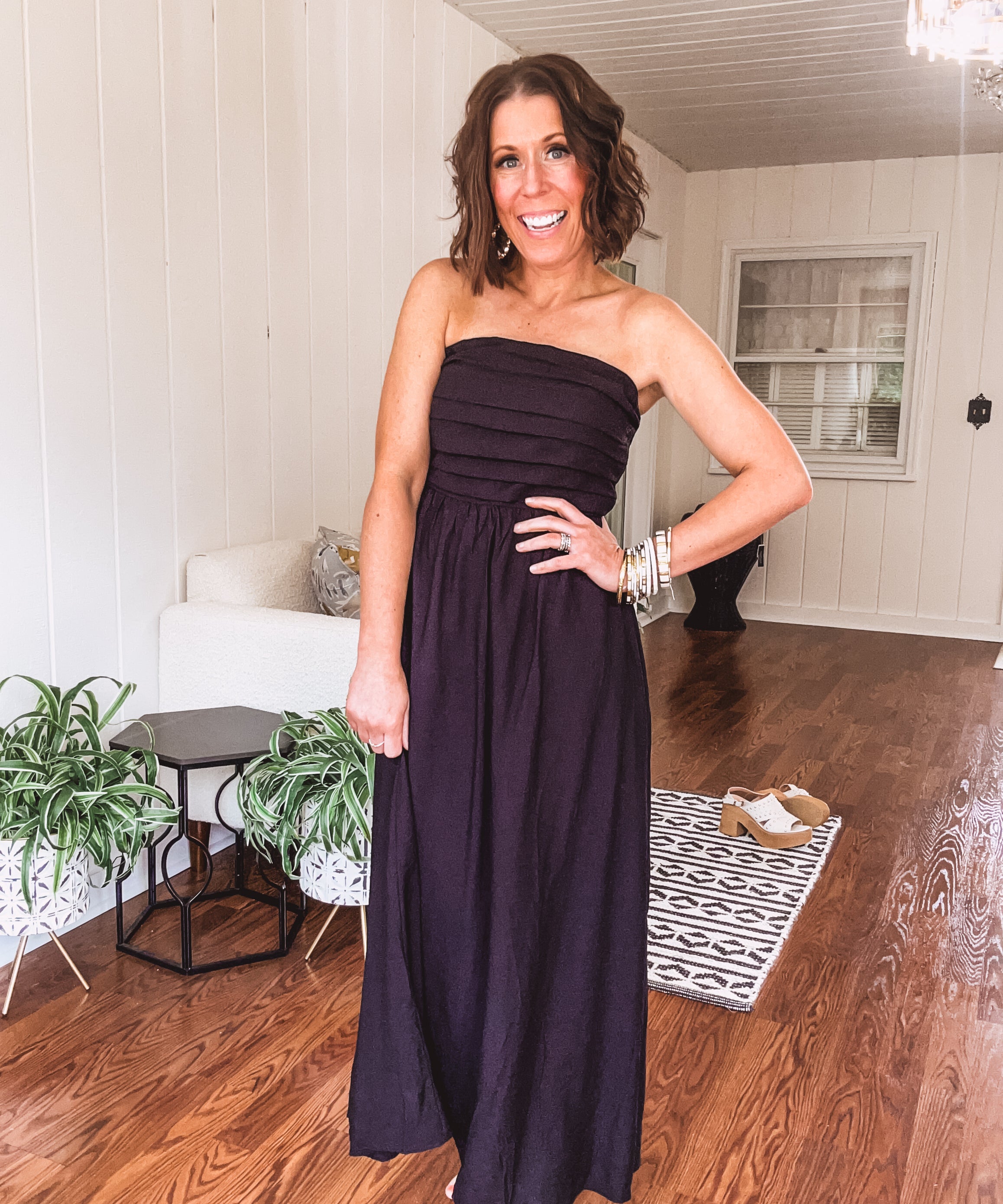 Black Gingko Leaf Printed Chiffon Dress with Smock Yoke