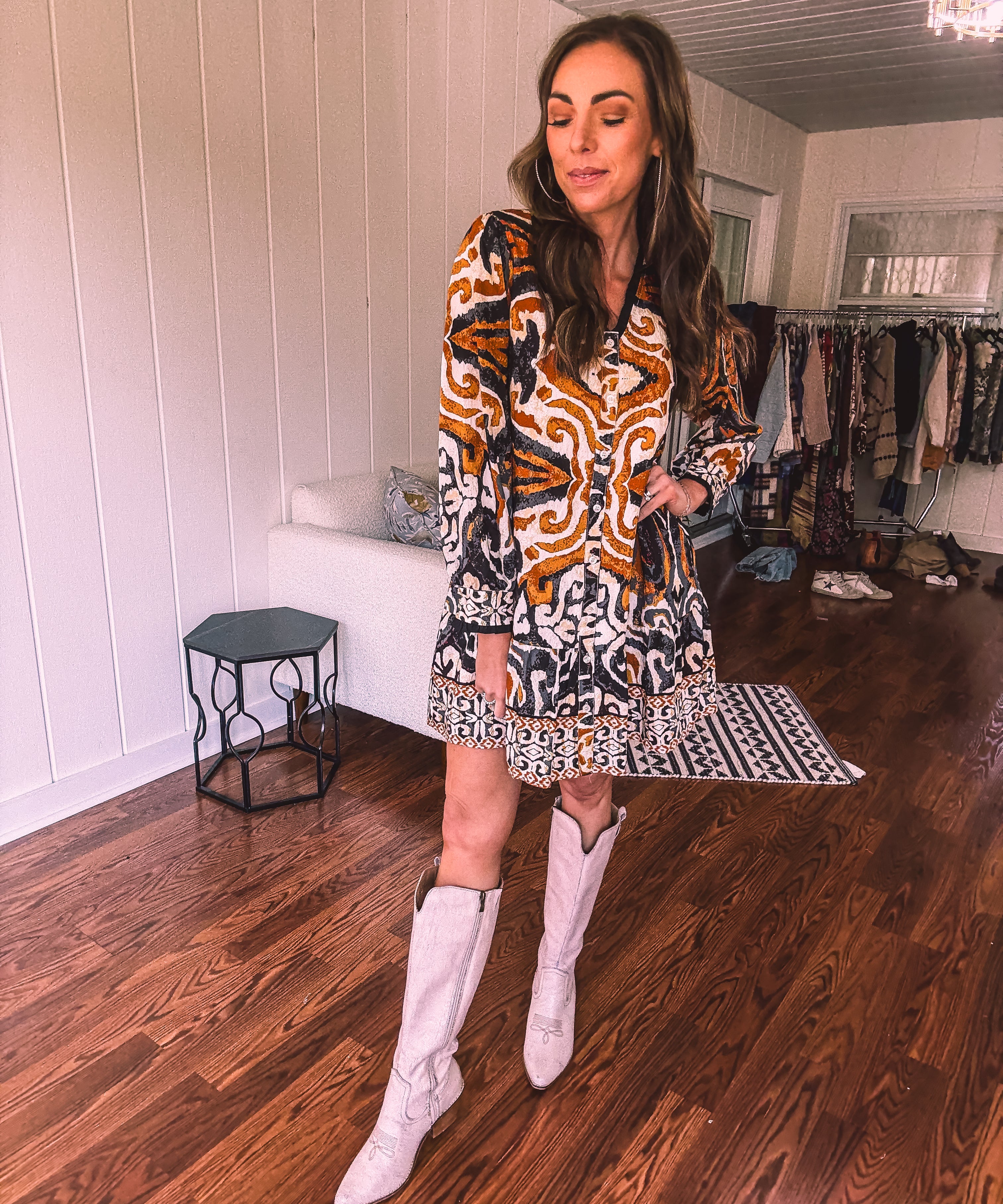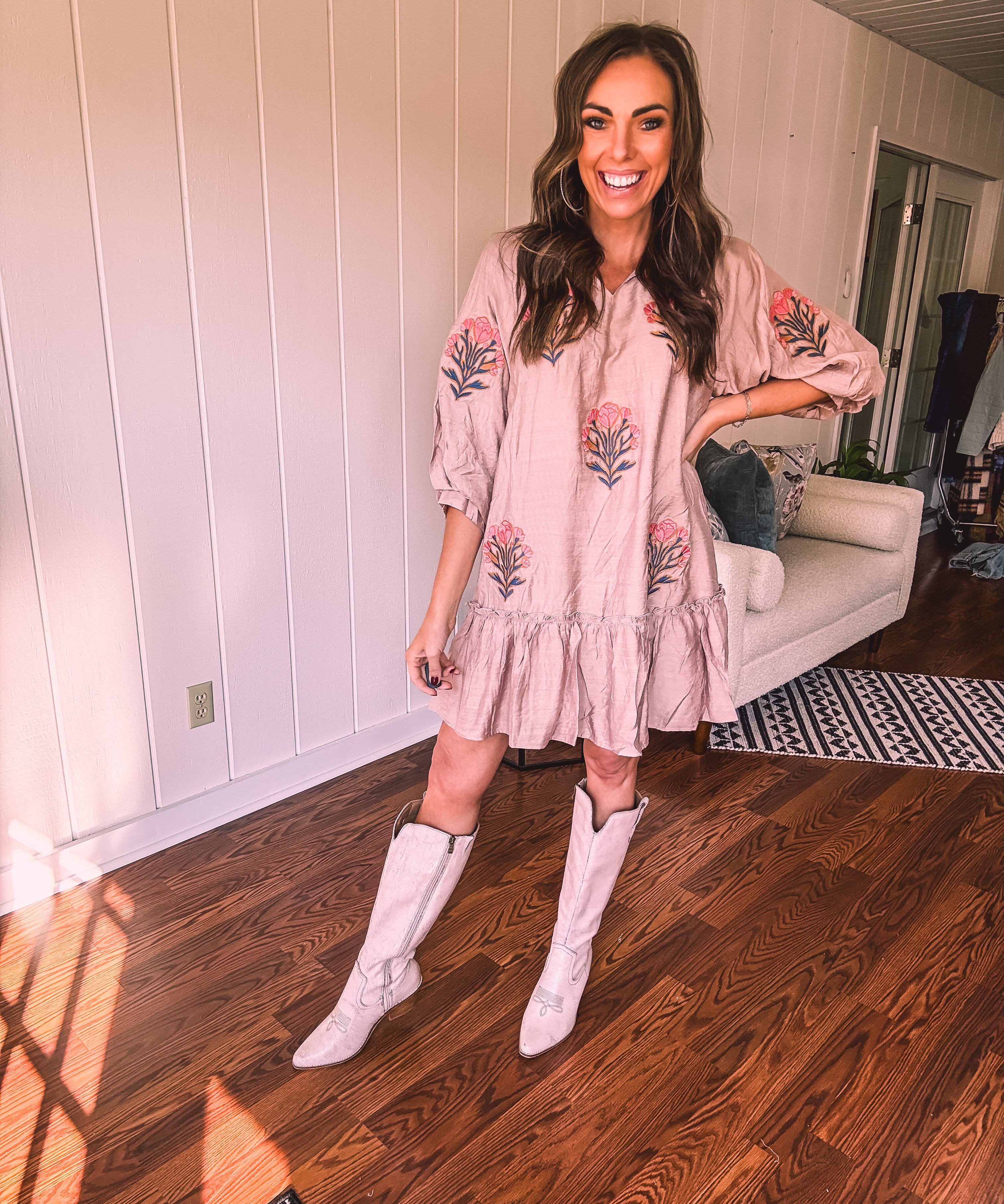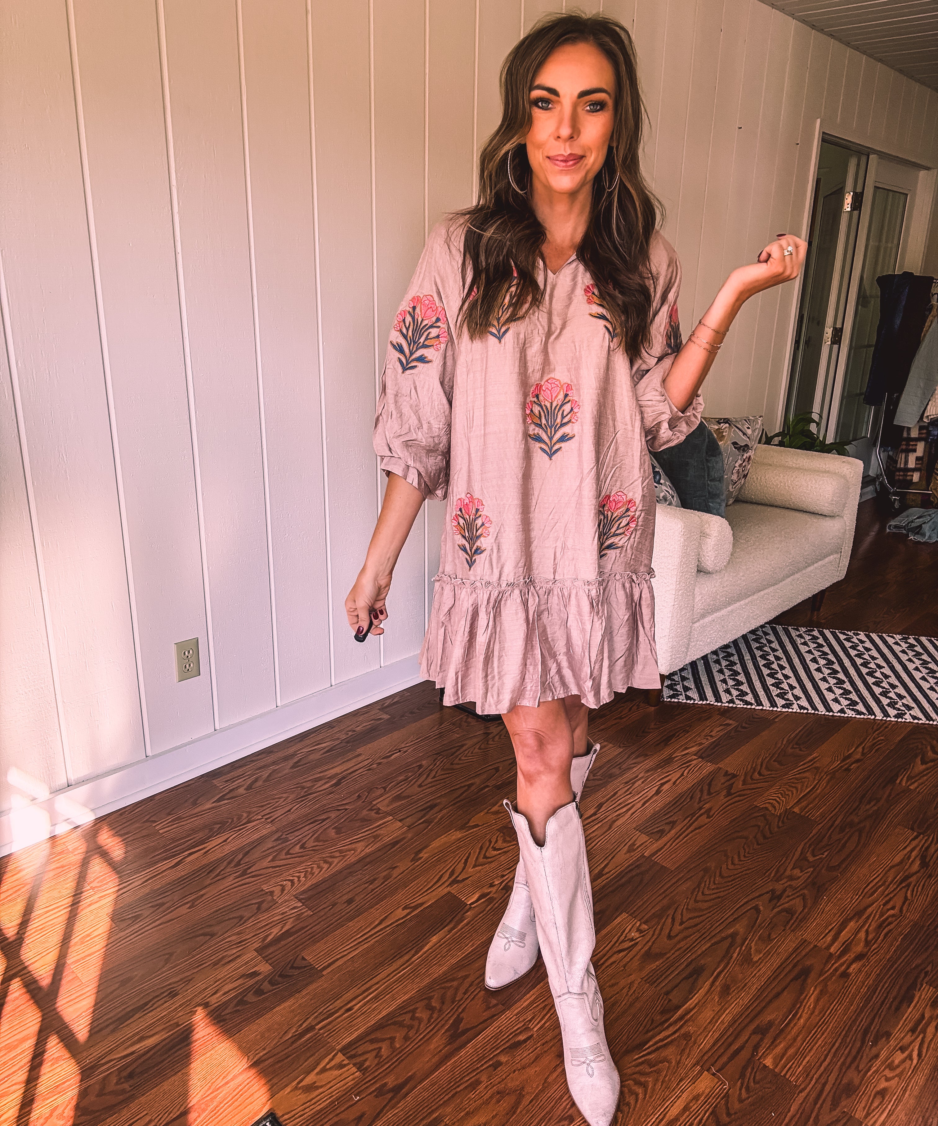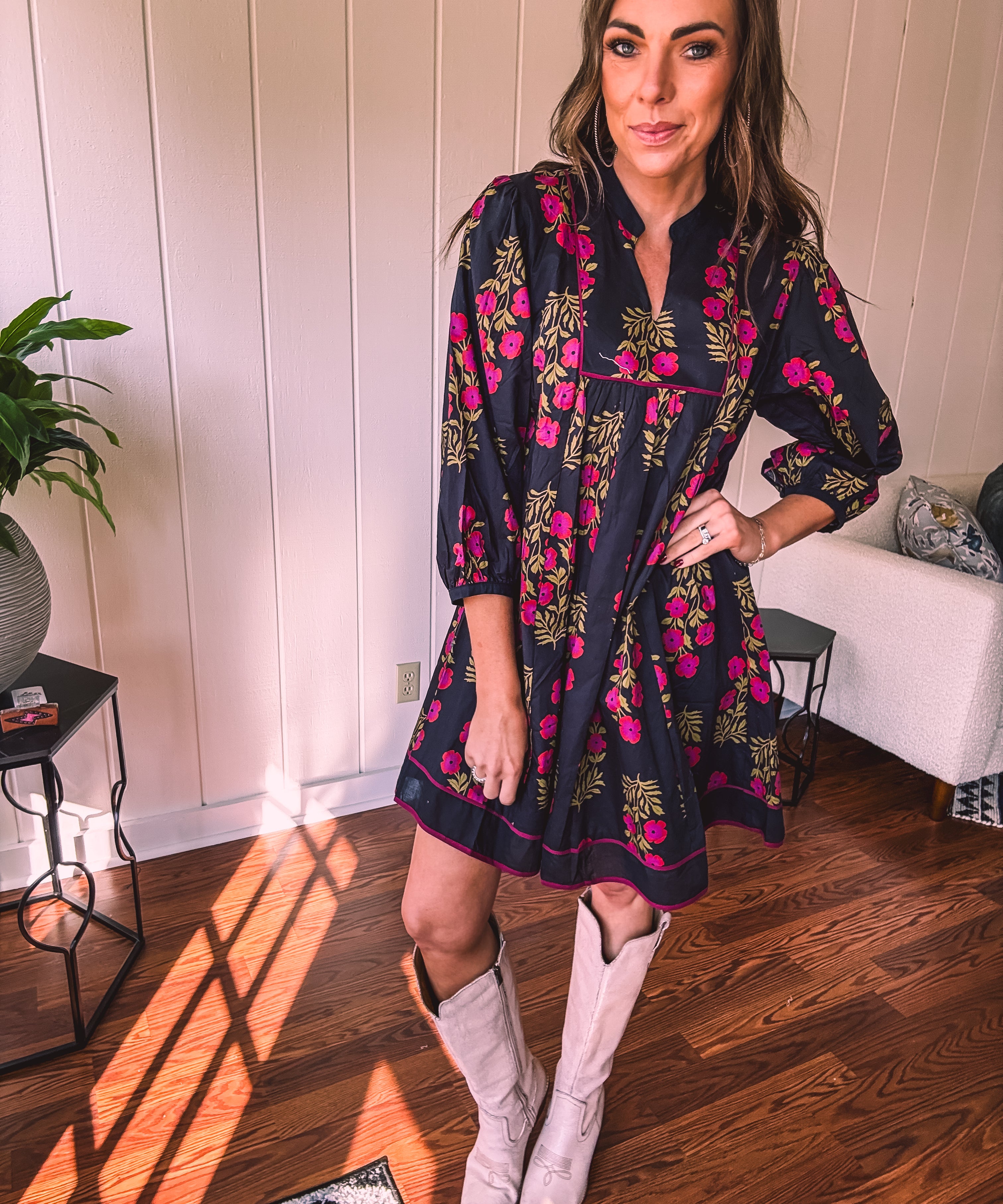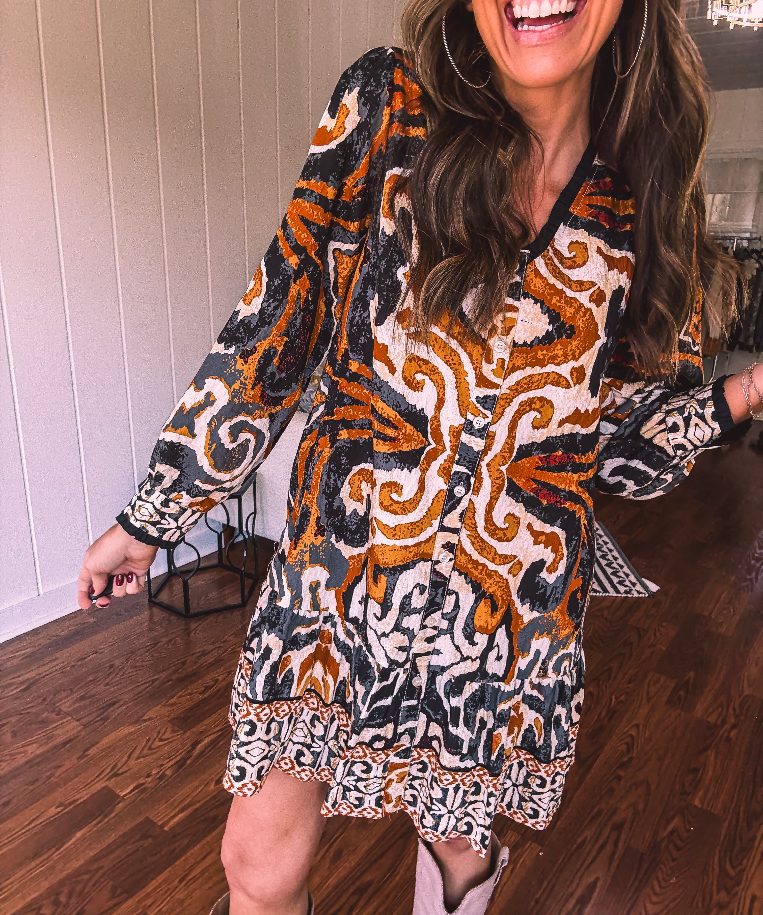 Mocha Bloom Floral Button Flutter Sleeve Dress