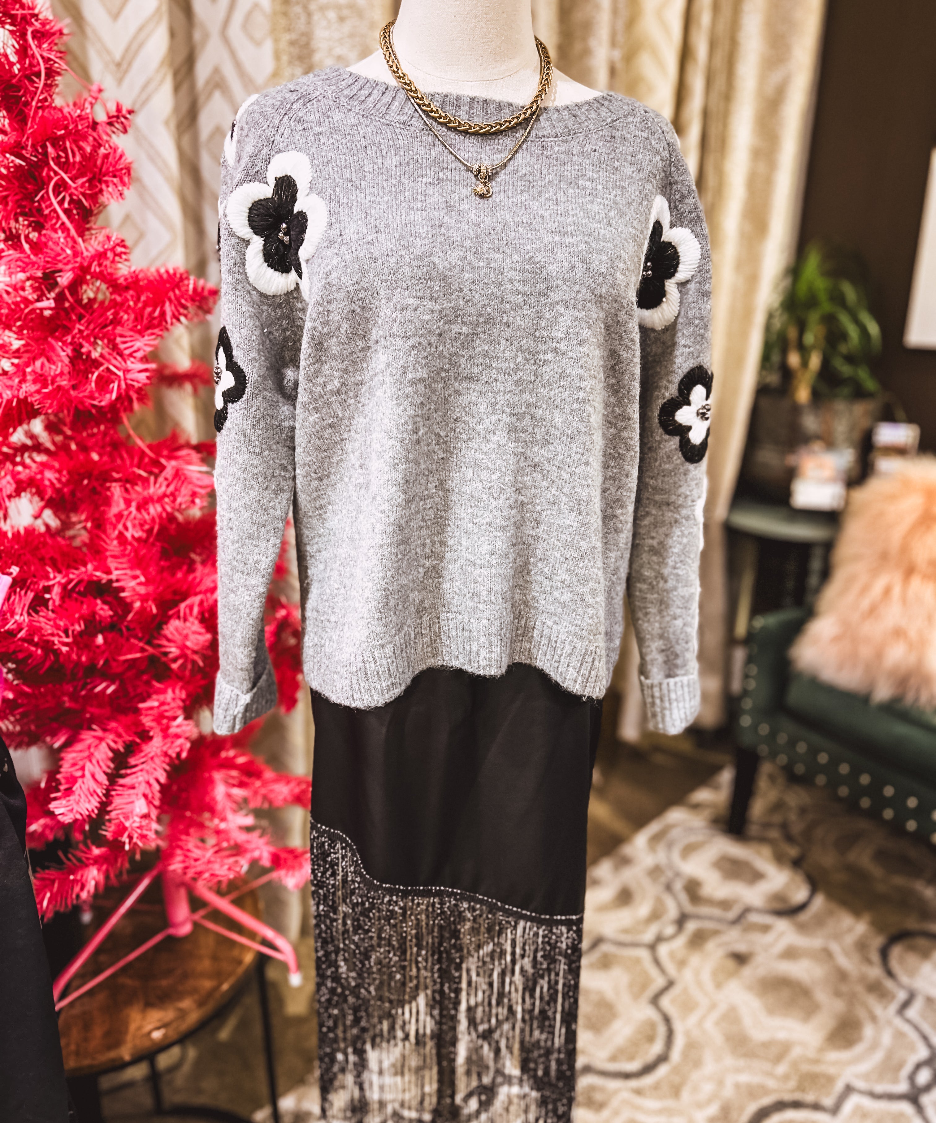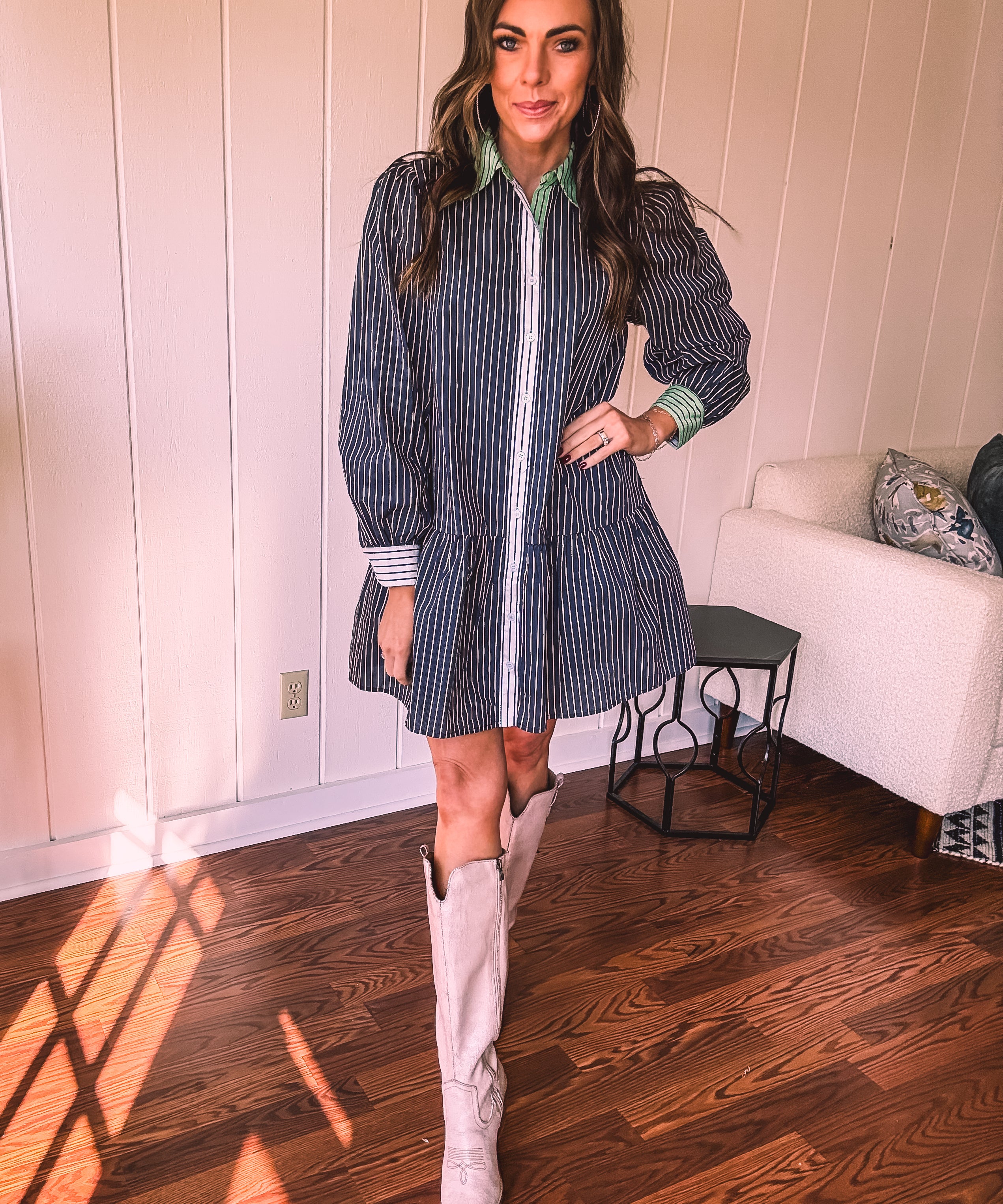 Dusty Floral Stripe Trim Flutter Hem Dress