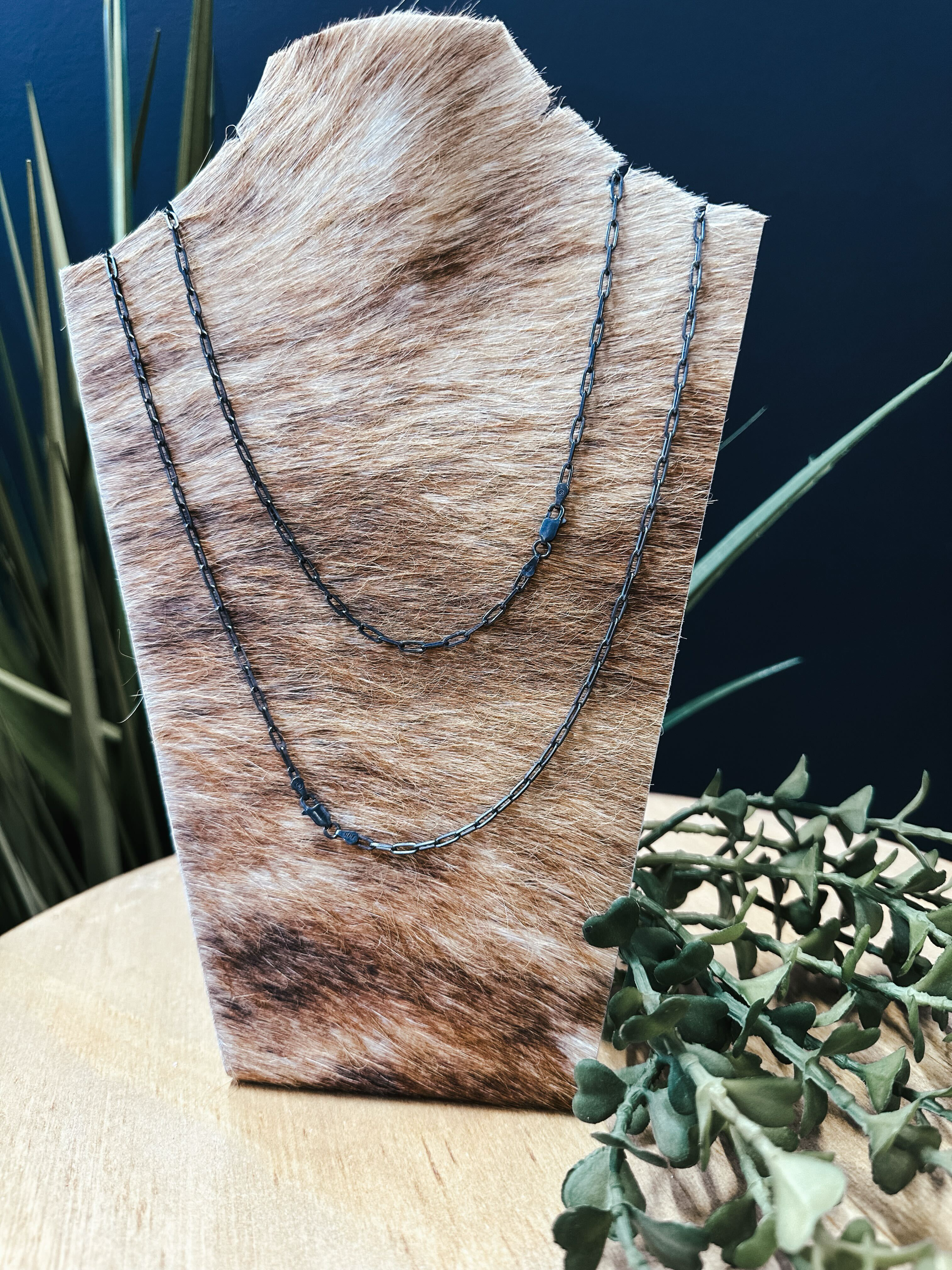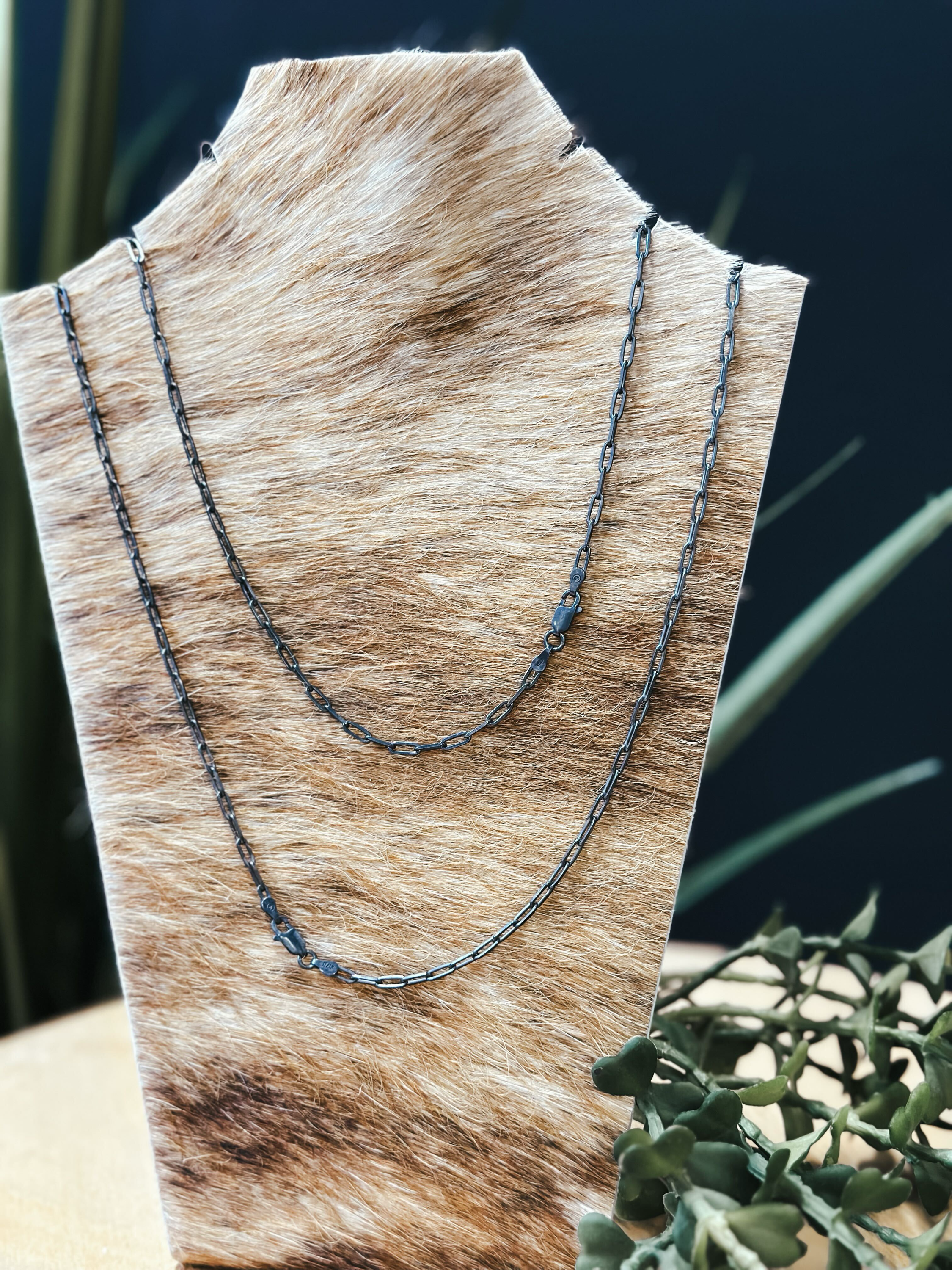 This charming 30" mini paperclip chain necklace is made from genuine oxidized Sterling Silver and secured with a lobster claw clasp, making it the perfect size for playful layering.