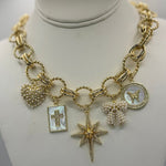Make a dazzling statement with the Girls Dream Luxe Charm Necklace, a playful mix of charm and elegance. This faux gold rope chain link necklace features chunky gold and mother of pearl charms—delights like butterflies, bows, hearts, and crosses—that add a whimsical touch to any outfit. Perfect for those who love to stand out, it effortlessly blends drama with sophistication, making every day feel special. Whether dressing up or adding sparkle to casual looks, this necklace turns heads and brings a joyful sparkle to your style.