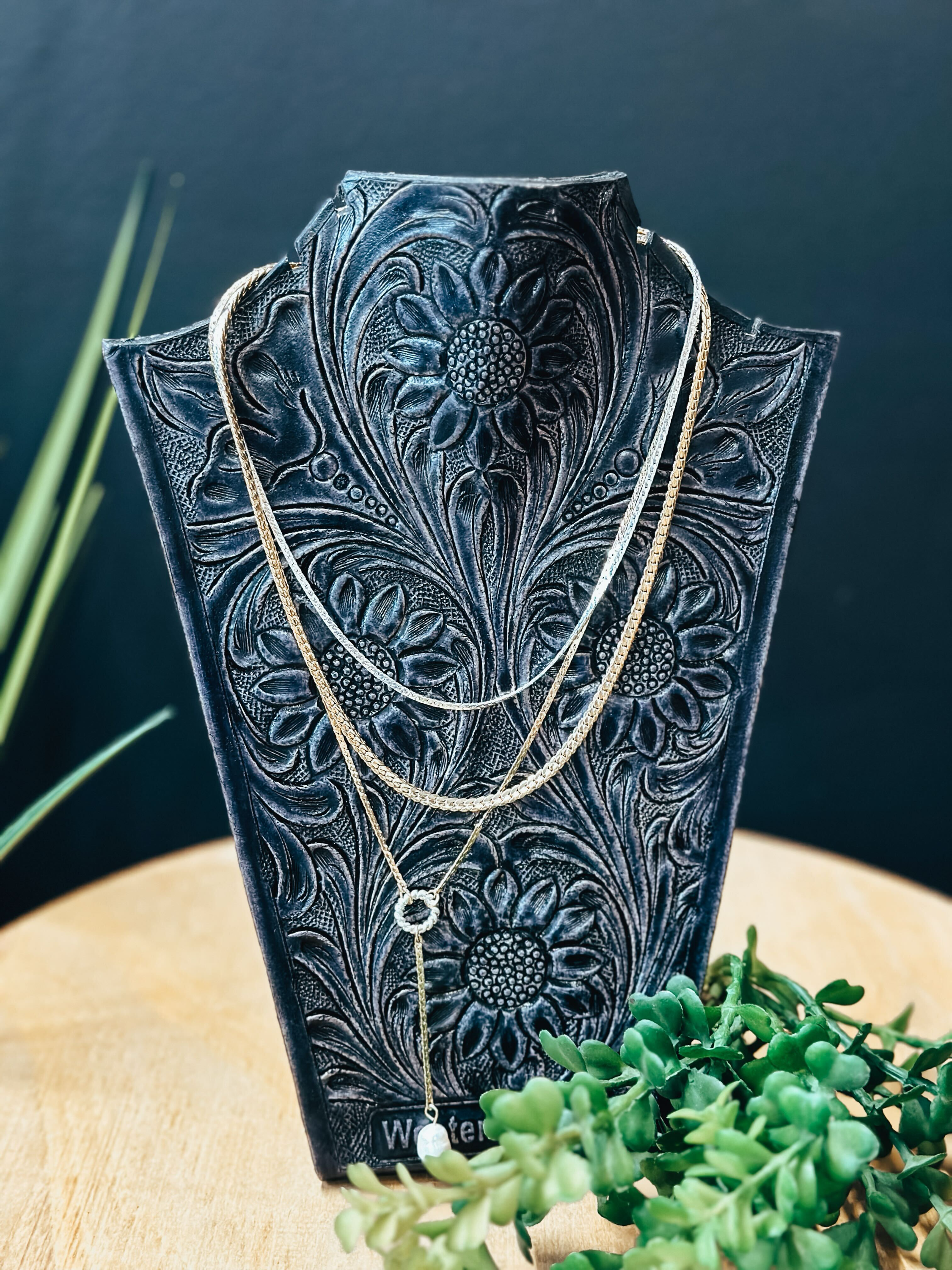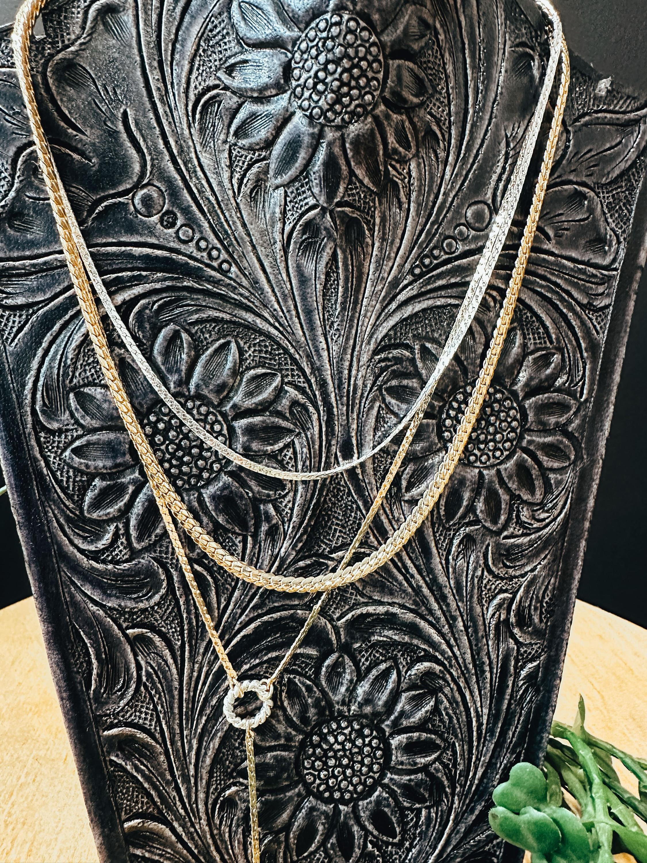Elevate your style game with the All The Chic Things Multi Layer Drop Necklace, a playful mix of faux silver and gold chains that lets you skip the debate between metals. This necklace layers effortlessly with its trendy lariat pendant, adding a touch of fun sophistication to any outfit. Perfect for stacking or wearing solo, it’s the easy way to boost your look with a sparkle of contrast and a splash of charm. Whether dressing up for a night out or adding flair to your daywear, this versatile piece ensures you’re ready to shine with layers of chic attitude.