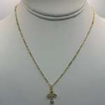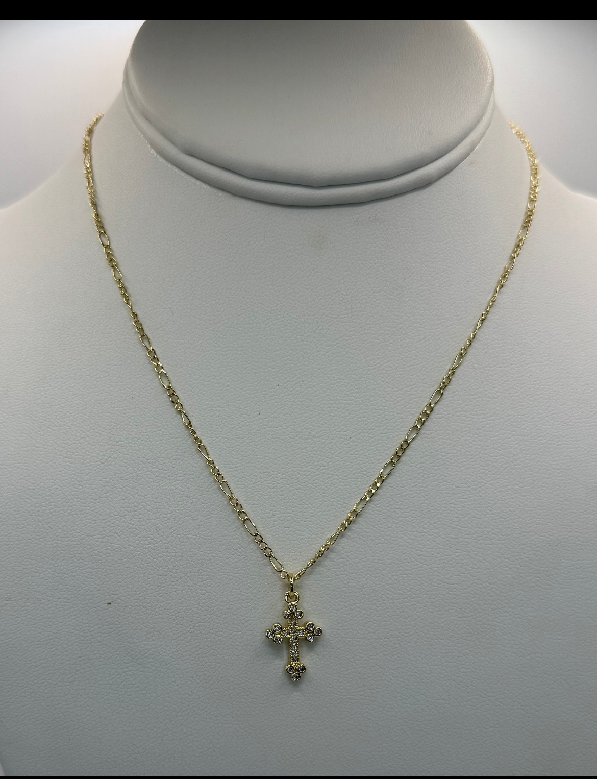 Elevate your everyday style with this charming Cluster Cross Inlay Necklace. Featuring a dainty faux gold figaro chain, it’s lightweight and comfortable for all-day wear. At its center, a small pave inlay cluster cross adds just the right touch of sparkle, catching the light with every move. This delicate design effortlessly blends subtle elegance with a hint of playful shine, making it perfect for layering or wearing solo. Whether dressing up or keeping it casual, this necklace brings a fun and feminine flair to any outfit.