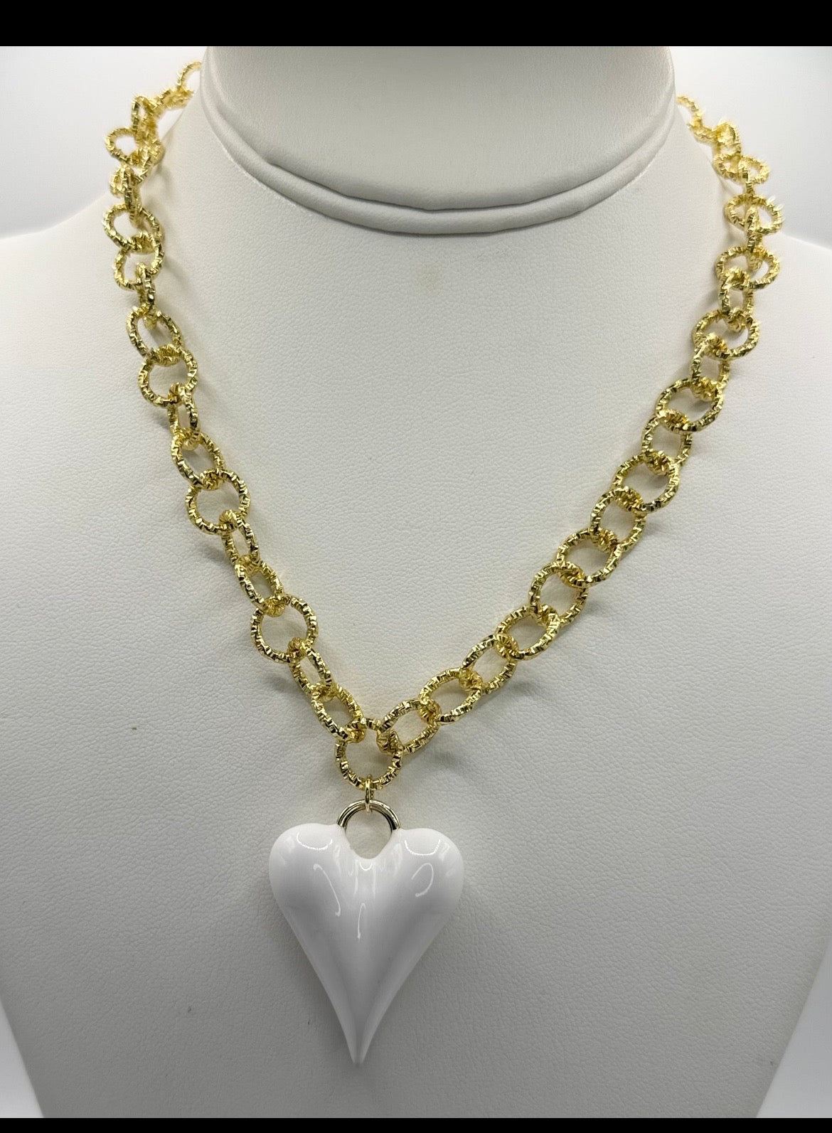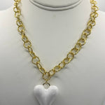 Add a playful pop to your look with the Dean White Puff Heart Necklace. This eye-catching faux gold textured cable chain holds a bright, puffy white heart charm that’s both sweet and a little dramatic. Perfect for layering or wearing solo, it brings a fun, feminine vibe to any outfit. Whether dressing up a casual tee or adding a quirky touch to your date-night ensemble, this necklace is a charming conversation starter that’s as unique as you are.