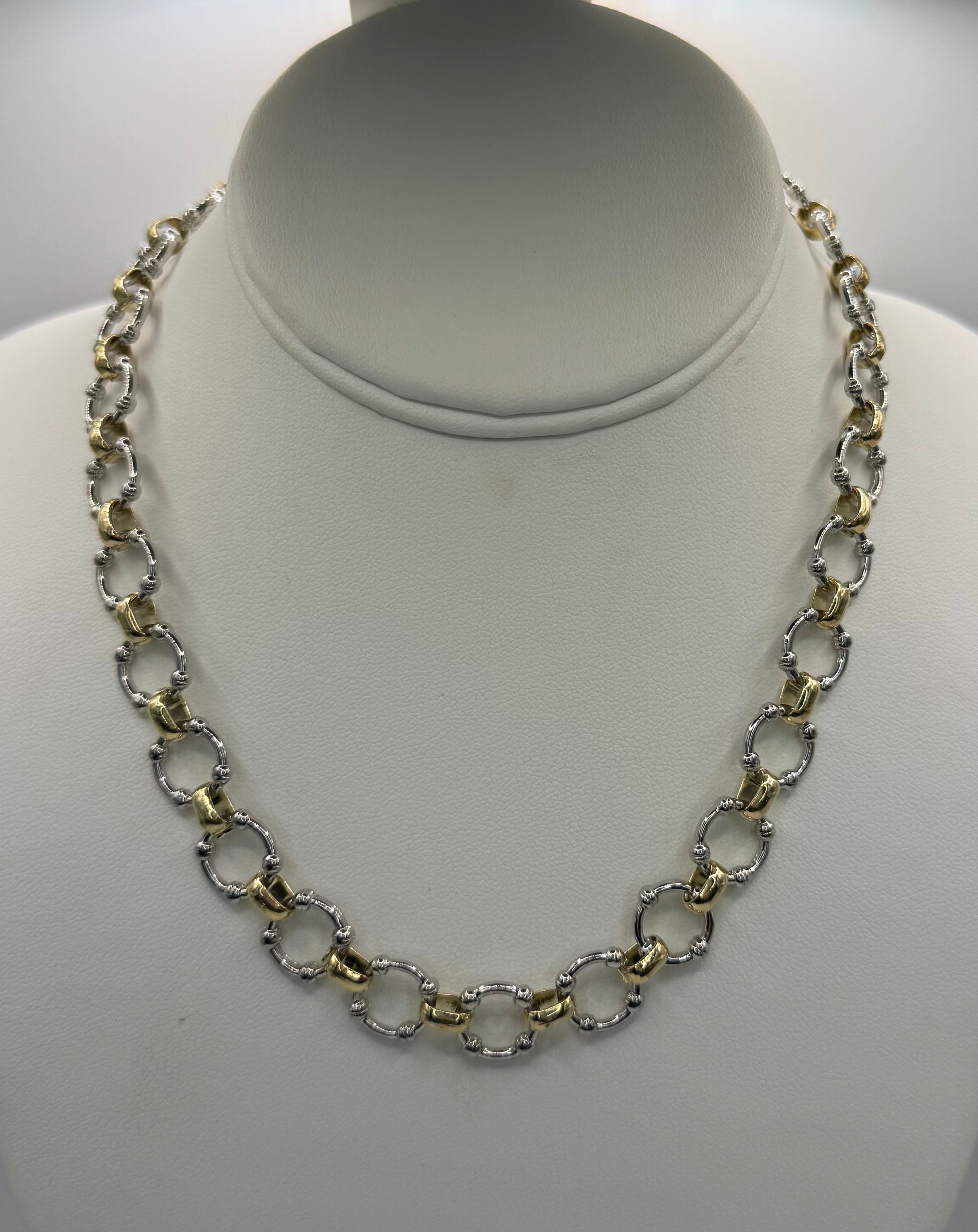 The Dinah Mix Link Necklace is the perfect answer for those who can’t pick just one metal. Combining shiny gold links with textured hammered silver links, this playful piece brings together the best of both worlds. It’s bold enough to shine on its own, yet versatile enough to layer with your favorite necklaces for a fun, mix-and-match look. Whether you’re dressing up or keeping it casual, this necklace adds a touch of effortless charm and sparkle to any outfit. Get ready to fall for the blend of metals that keeps your style fresh and lively!