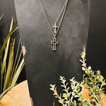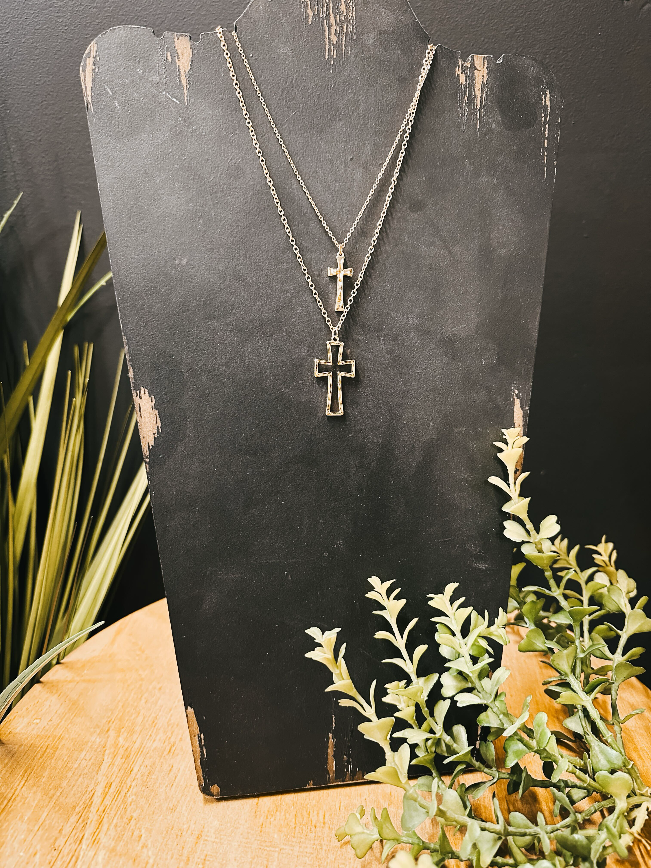 Elevate your style with this playful Gold Metal Double Layered Cross necklace. Featuring two delicate gold-plated chains, one showcases a shimmering small cross while the other displays a larger cutout cross, adding a bold, edgy twist. This versatile piece layers effortlessly for a look that's both dainty and dramatic—perfect for making a statement whether you’re dressing up or keeping it casual. Add a touch of sparkle and attitude to your everyday outfits with this fun, eye-catching design.