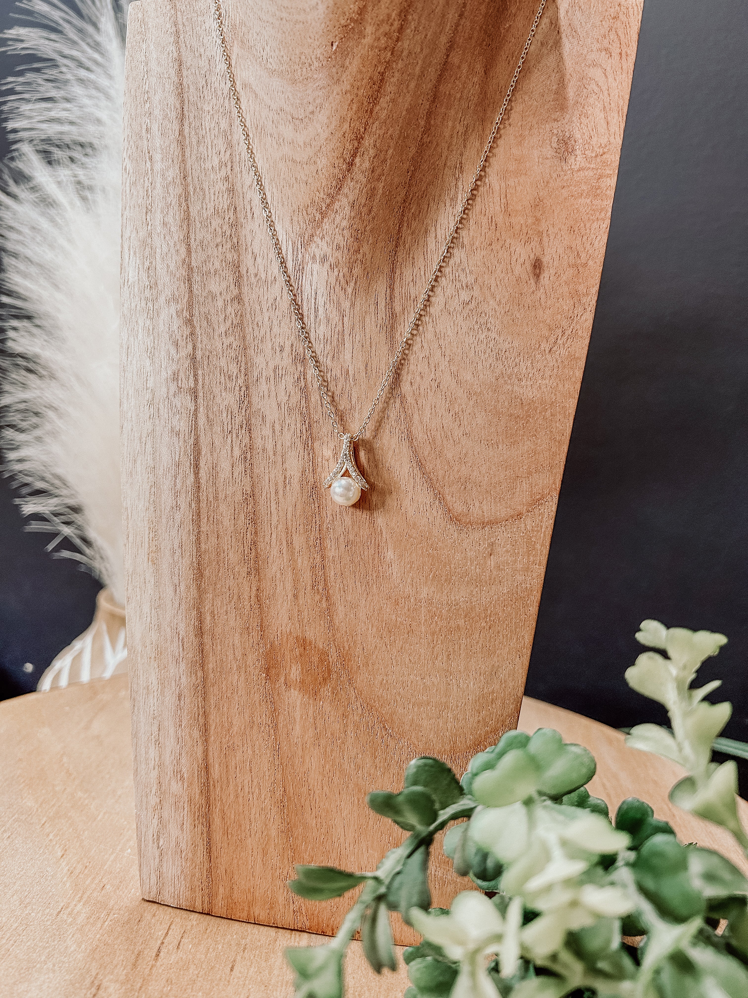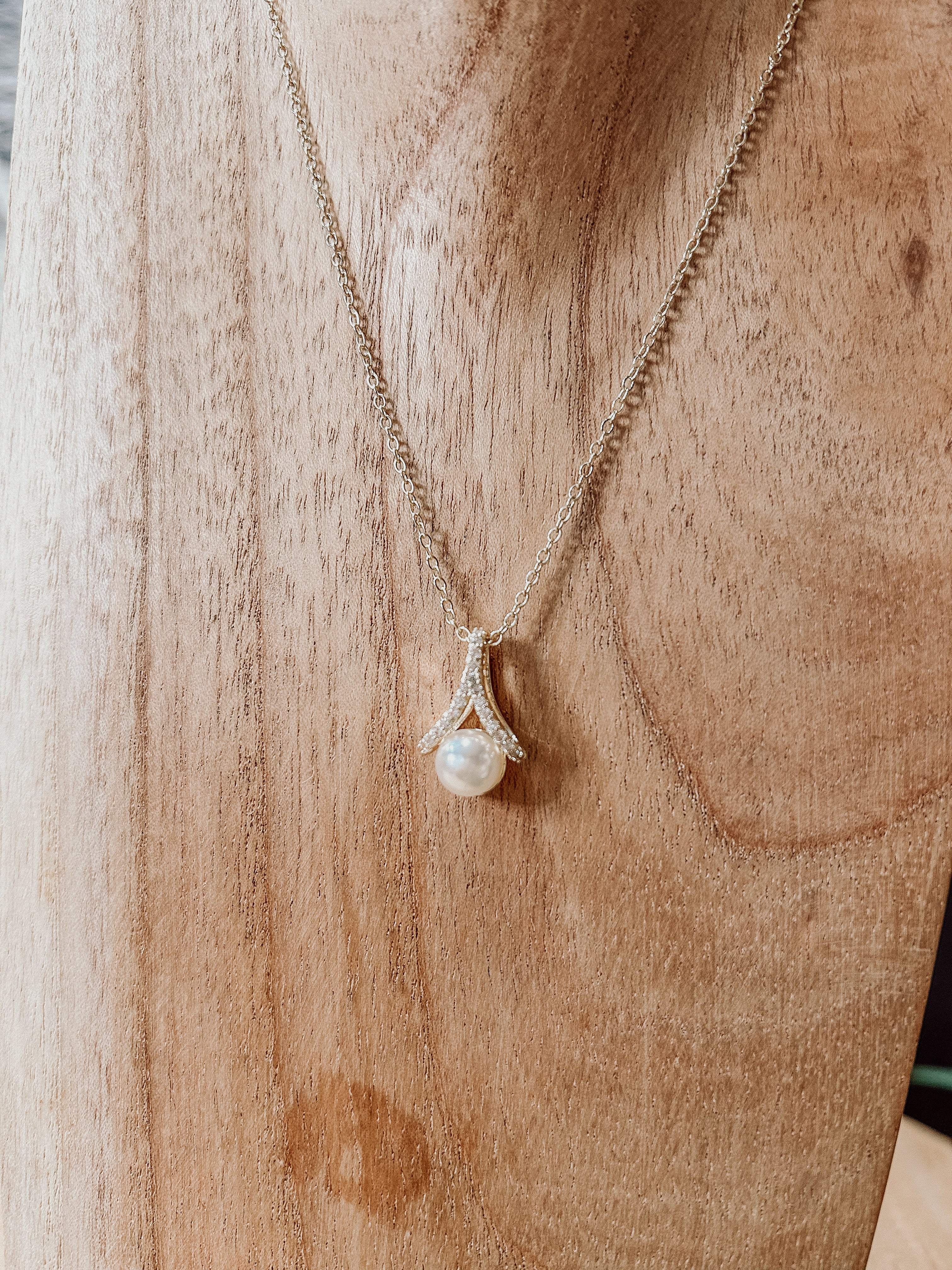PAVE AND PEARL DROP NECKLACE