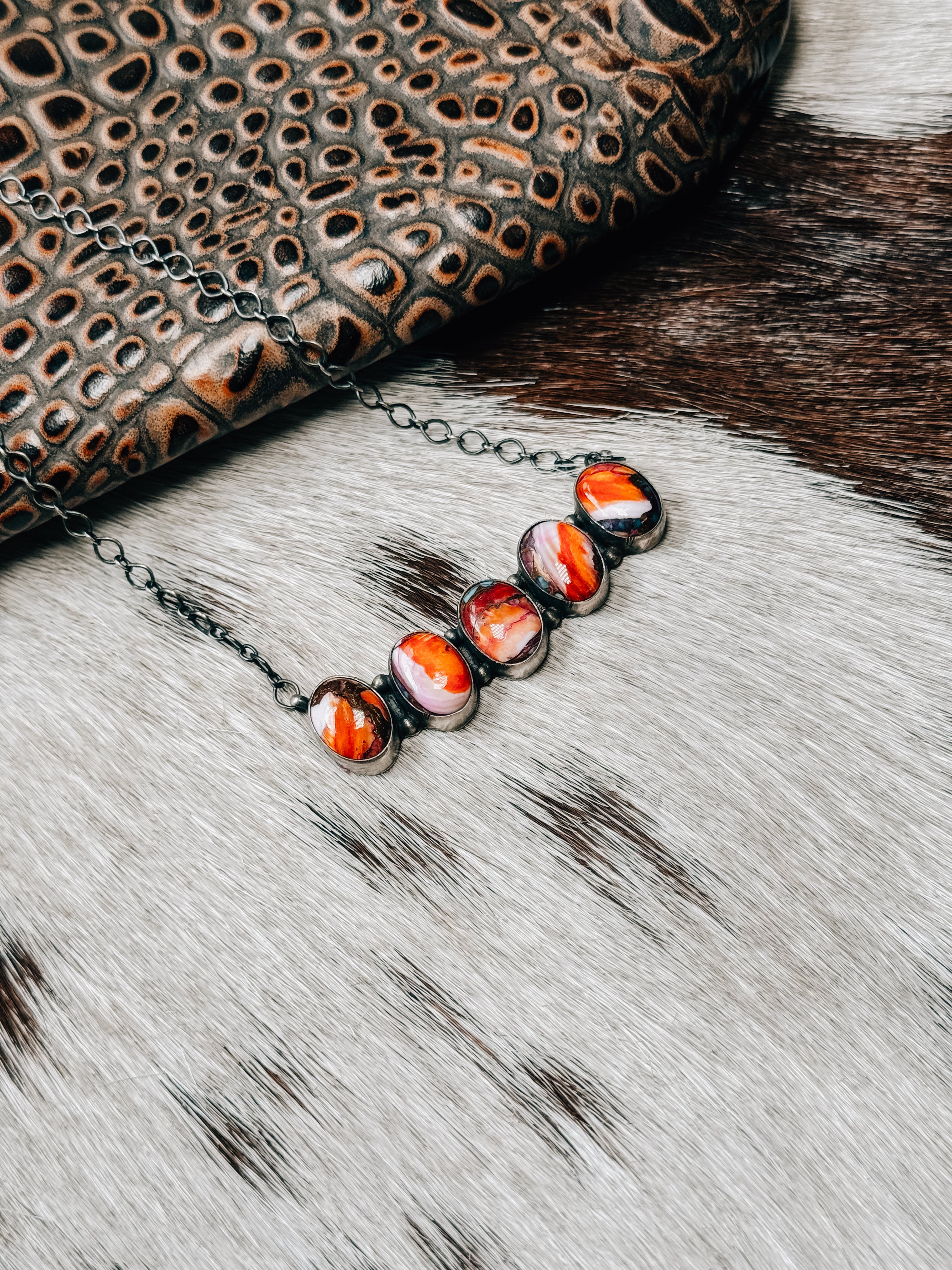 Give Us All The Spiny Oyster! Purple & Orange Spiny Oyster 5 Stone Necklace