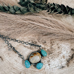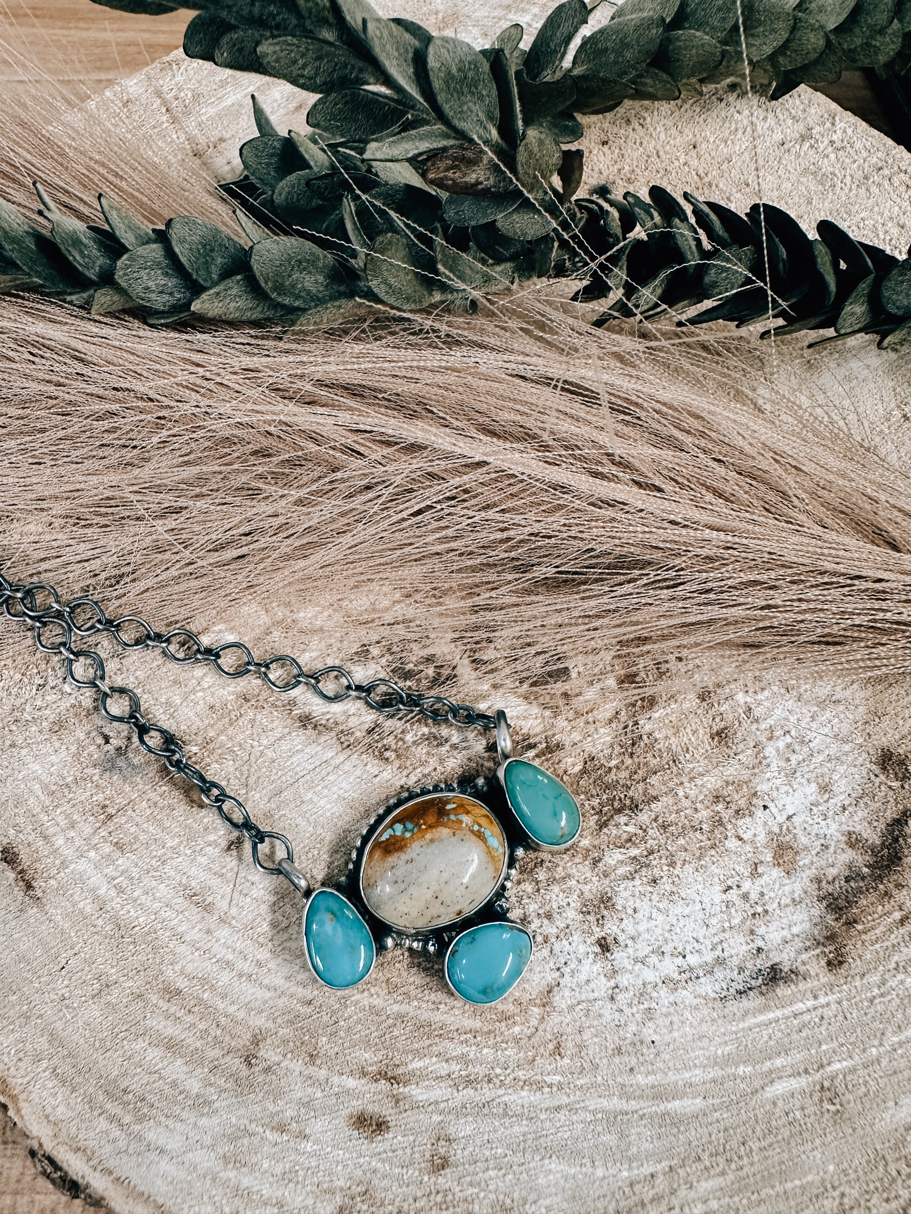 The Statement Piece of All Statement Pieces: One of a Kind Authentic Royston Turquoise and Sterling Silver 4 Stone Ornate Necklace