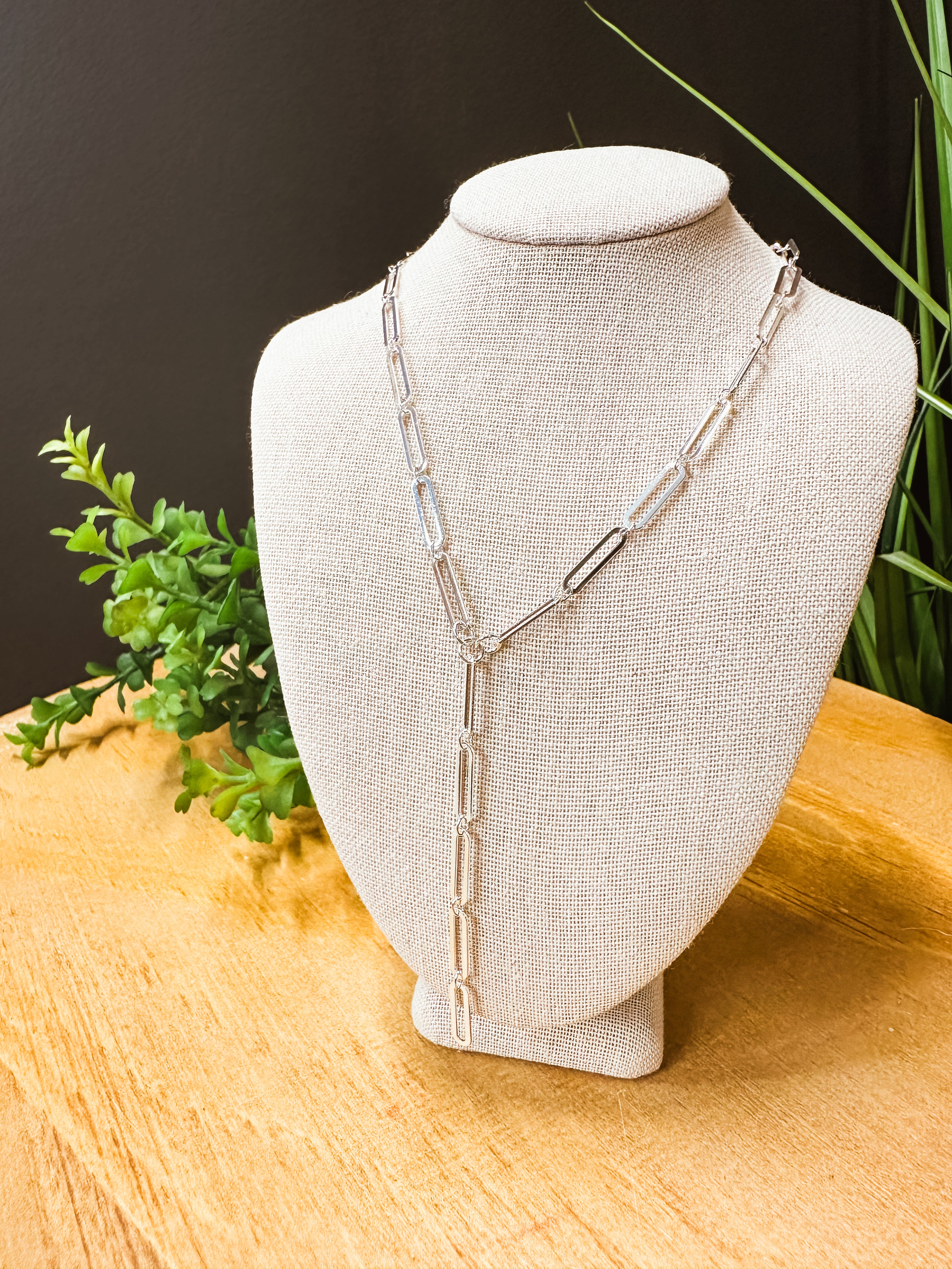 Silver Paperclip Chain Y Necklace