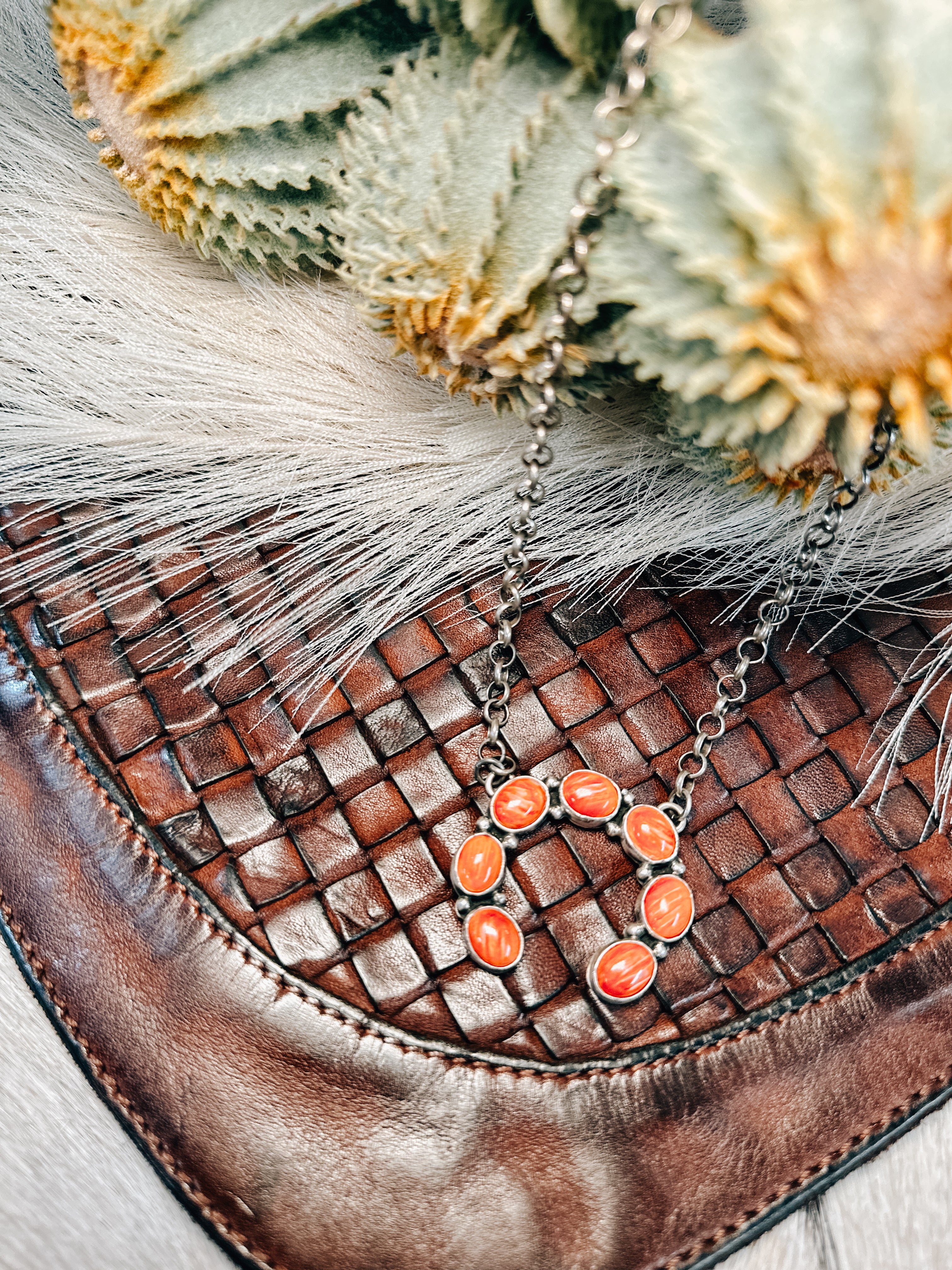 Get ready to make a statement with this stunning necklace made of seven oval-shaped spiny oyster beads delicately set in a Sterling Silver mount. The chain link design adds versatility, allowing you to adjust the necklace to your personal style. Each spiny oyster bead showcases its unique and vibrant colors, making this necklace a true statement piece. Pair it with Navajo Pearls, Kingman Turquoise, or Howlite for a truly eye-catching look.