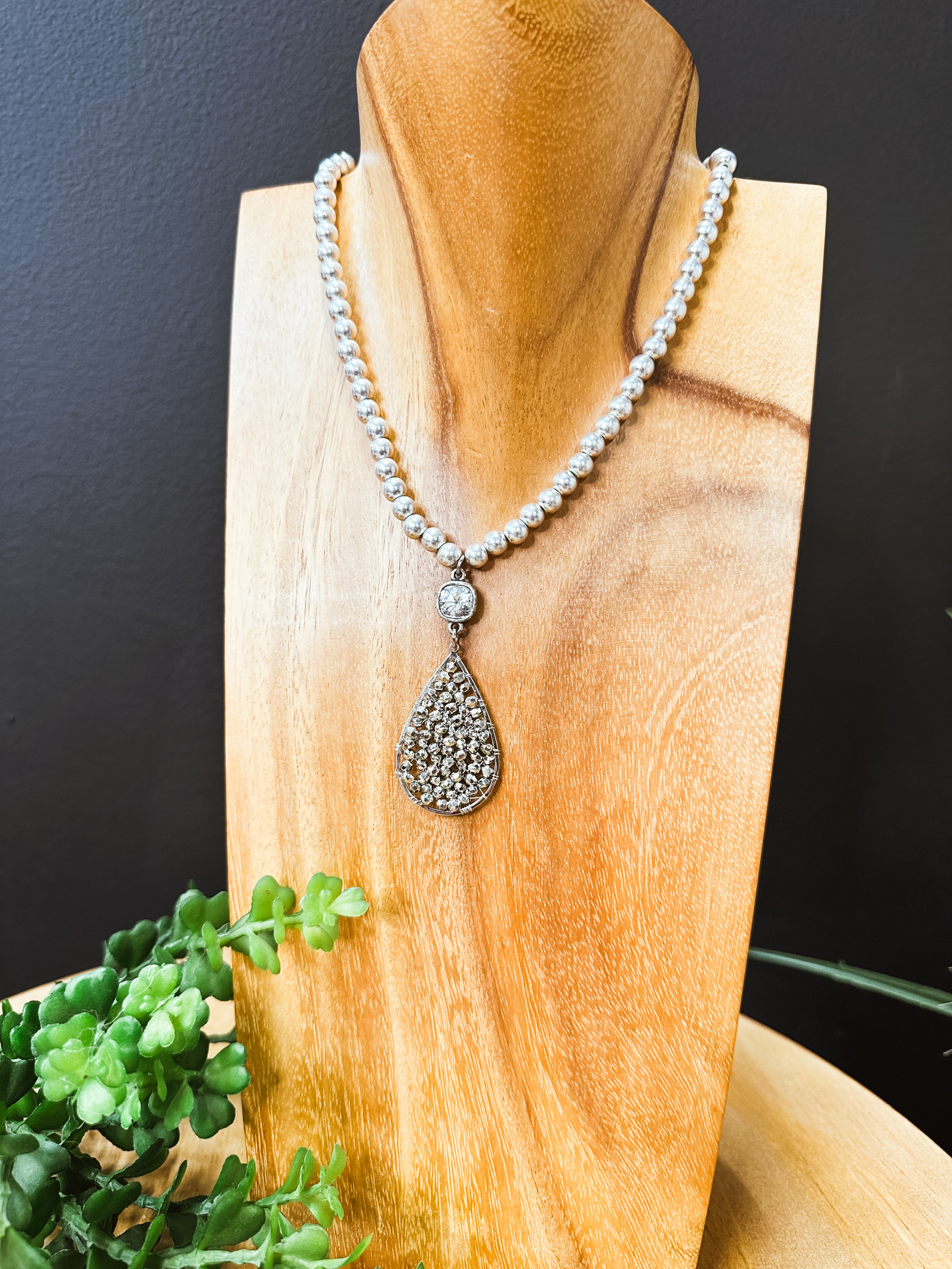 Add a dash of sparkle to your look with this playful Teardrop Woven Bead Necklace. Featuring a faux silver pearl chain that gracefully leads to a dazzling teardrop pendant, it catches the light with an iridescent crystal that shimmers with every move. Whether you're dancing the night away at prom, heading out for a chic evening, or just feeling fancy, this necklace brings a fun yet elegant touch to any outfit. Let it be your go-to statement piece when you want to turn heads and sparkle with confidence.