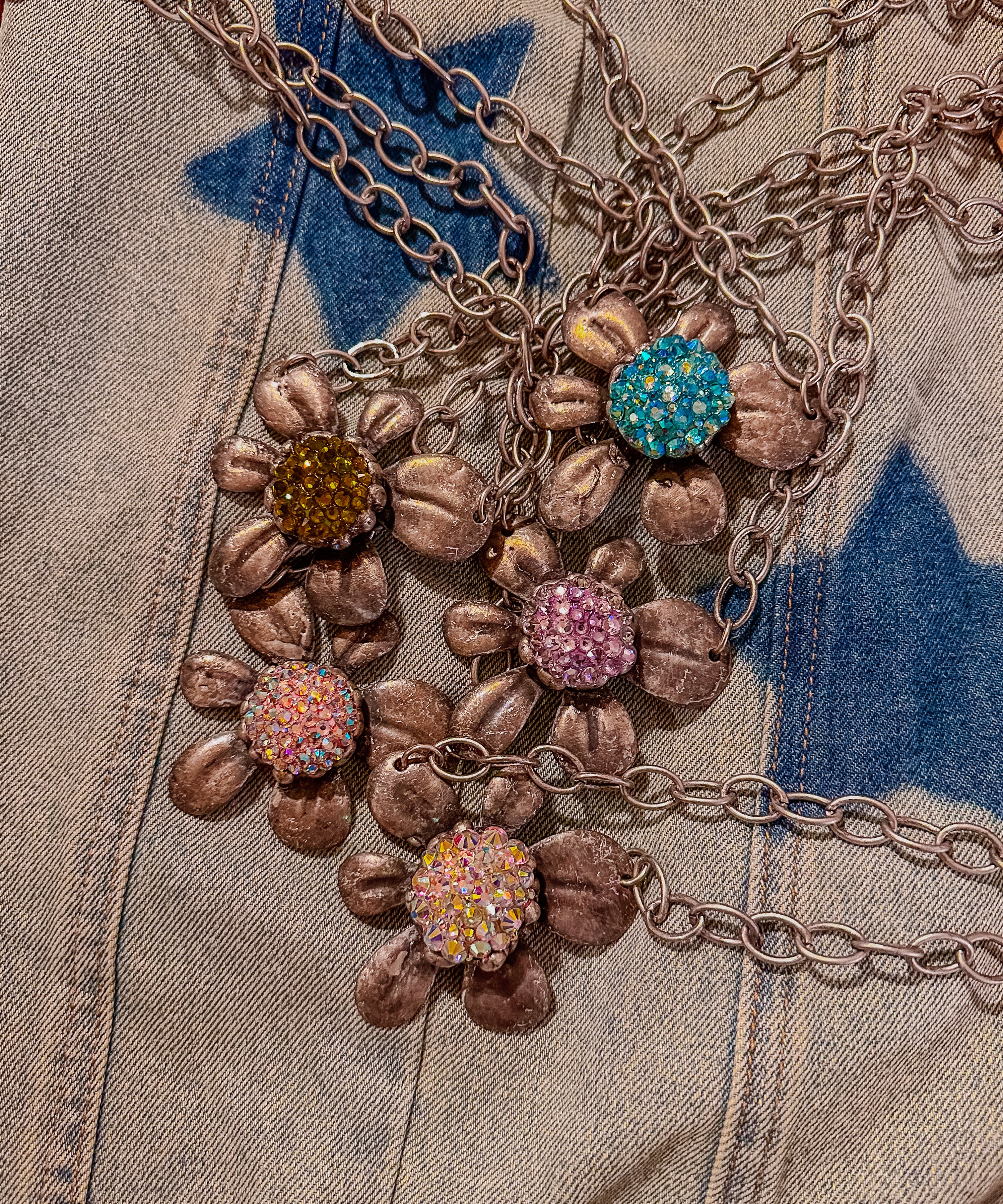 Retro Glitz Flower Necklace